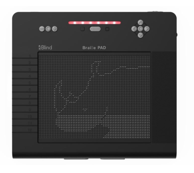 Планшет - Braille PAD адаптирован для чтения изображений, для текста по Брайлю. Устройство имеет 8-ми дюймовый дисплей содержит 2000 тактильных пикселей и может передавать изображение в самых точных деталях. Интуитивно понятный кнопочный интерфейс с нескользящими рельефными кнопками позволяет уверенно и безошибочно вести навигацию по графическим объектам. Braille PAD может работать как самостоятельное решение с флэш- или SD-картой с файлами. Braille PAD работает на базе операционной системы Linux, включает в себя интеллектуальную программу ContourTrace, позволяющую переводить стандартные графические изображения в контурные тактильные изображения. Подключается к компьютеру через USB, Bluetooth, в качестве второго монитора через порт HDMI. Для слабовидящих предусмотрена сигнальная подсветка