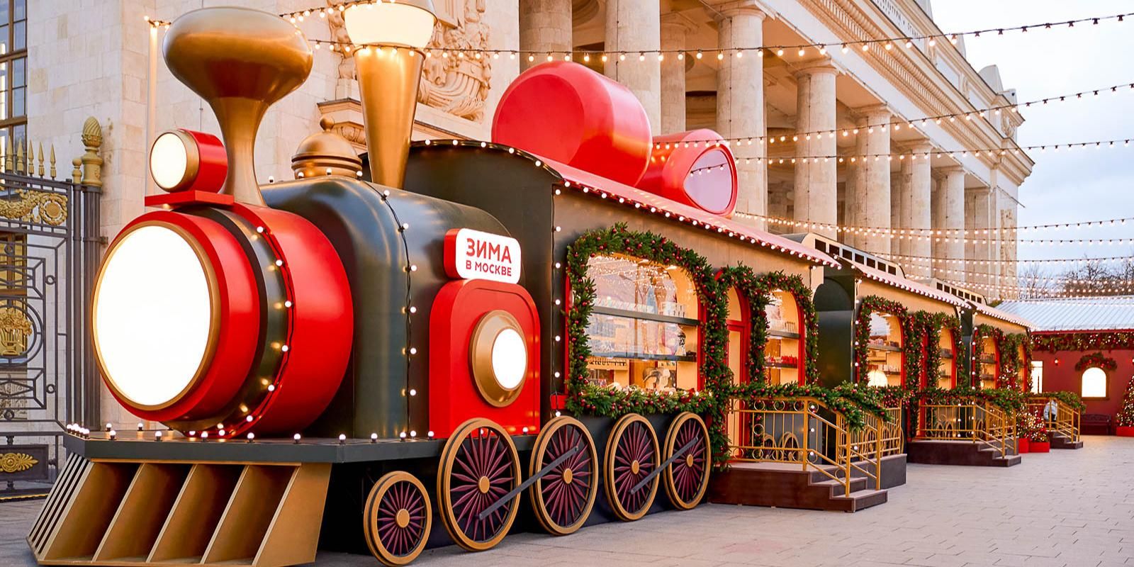 У главного входа в Парк Горького разместился не менее креативный арт-объект — волшебный поезд. В нем тоже можно купить подарки, елочные игрушки, косметику для ухода за кожей в зимний сезон и создания макияжа. А еще здесь предлагают приобрести теплые аксессуары для катания на коньках и прогулок по парку.