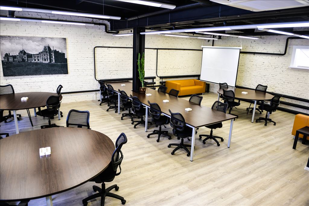 Грамотная концепция пространства, удобное рабочее место, высокоскоростной WI-FI способствуют продуктивному решению поставленных задач. В распоряжении гостей – рабочая зона на 55 мест, 2 изолированные стеклянные переговорные на 6 – 10 мест. Предусмотрена посадка слушателей вокруг стола и лекционный вариант с расстановкой стульев. Коворкинг находится в 5 минутах от метро и 10 минутах от центра, возле ТТК.