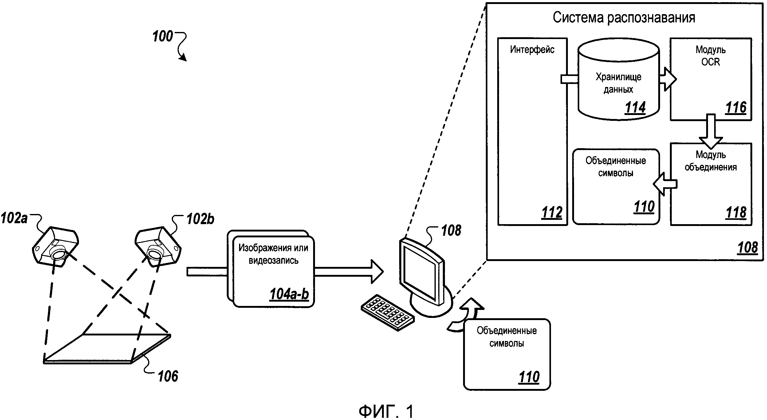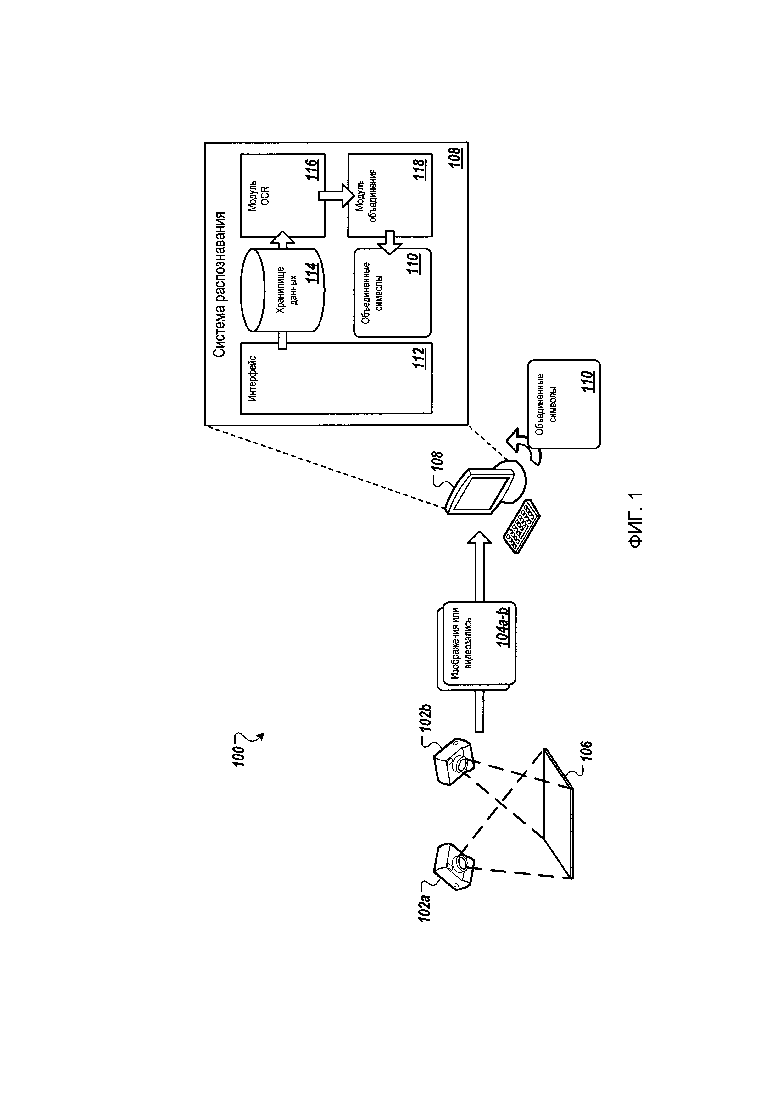Система распознавания 108 может объединять два набора распознанных символов, сохраняя относительное положение символов в наборах распознанных символов.