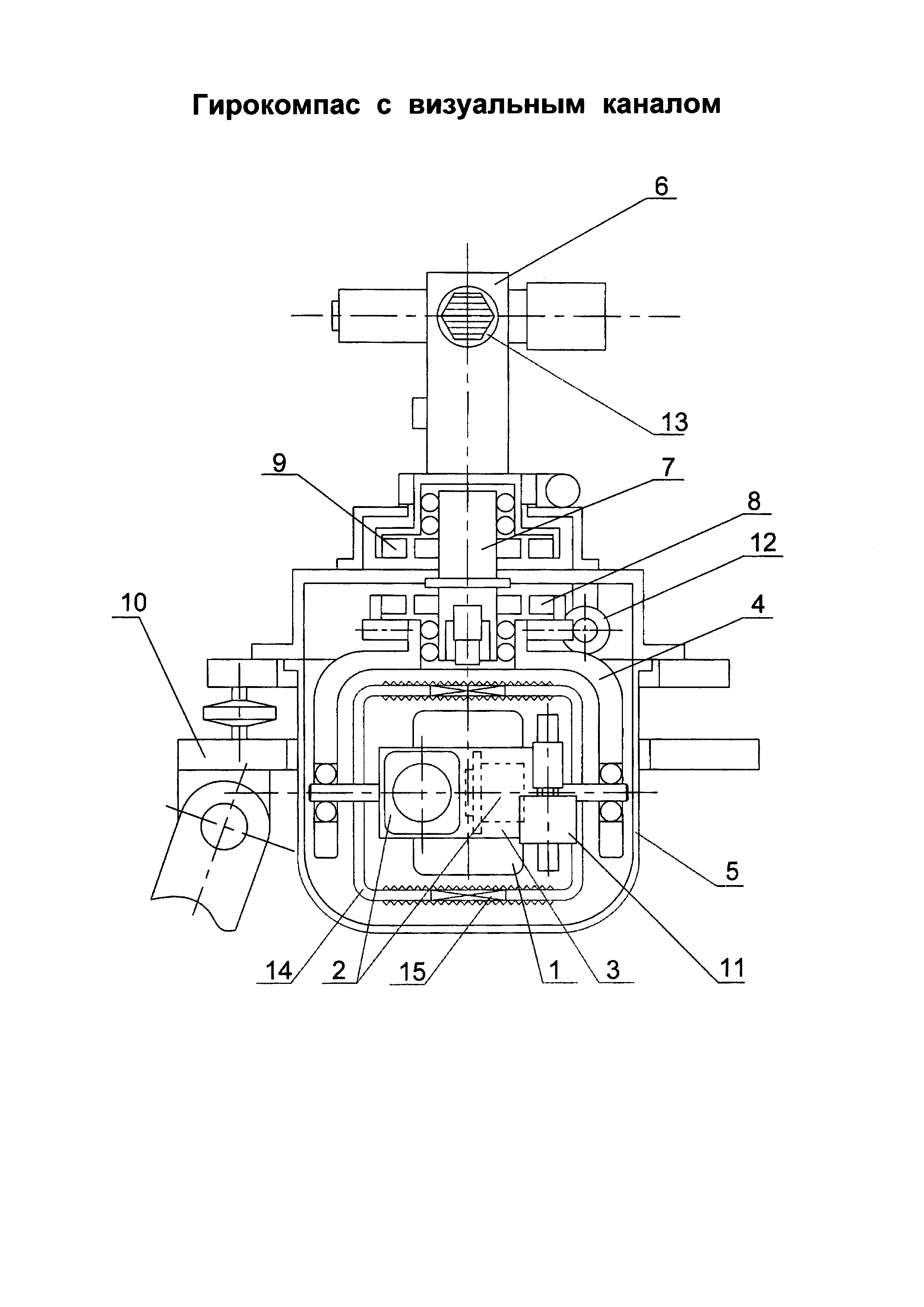 1. Гирокомпас с визуальным каналом, содержащий связанные между собой посредством соединительных электрических кабелей компьютер, блок электронных приборов и гироскопическую часть в виде герметичного корпуса, содержащего датчик угла (ДУ), карданов подвес (КП), приводы КП, термостат, в котором установлены гироблок и наклономеры, отличающийся тем, что введен теодолит, содержащий ручной привод и сервоприводы, два наклономера, расположенных на визирной трубе теодолита, и два датчика угла, теодолит расположен на штанге так, что наружная ось теодолита лежит на одной линии с продольной осью штанги, при этом на другом конце штанги установлена гироскопическая часть таким образом, что наружная ось КП жестко закреплена на штанге на одной линии с ее продольной осью с возможностью вращения рамы КП вокруг продольной оси штанги, на которой установлены первый ДУ теодолита и ДУ гироскопической части, обеспечивающие, соответственно, фиксацию углов поворота зрительной трубы теодолита и рамы КП вокруг продольной оси штанги, второй ДУ теодолита осуществляет отсчет углов наклона трубы к плоскости, перпендикулярной наружной оси теодолита, опорное устройство выполнено с возможностью установки продольной оси штанги в вертикальное положение; термостат установлен на внутренней оси КП, при этом на нем симметрично, относительно центра гироблока, встроены нагревательные элементы и термоэлектрические модули на элементах Пельтье; в блок электронных приборов введен блок теодолита, выполненный с возможностью приема сигнала с теодолита и передачи цифрового сигнала в компьютер. 2. Гирокомпас с визуальным каналом по п. 1, отличающийся тем, что блок электронных приборов размещен в герметичном корпусе с термостатированием. 3. Гирокомпас с визуальным каналом по п. 1, отличающийся тем, что на торце внутренней оси теодолита установлен оптический отражатель.