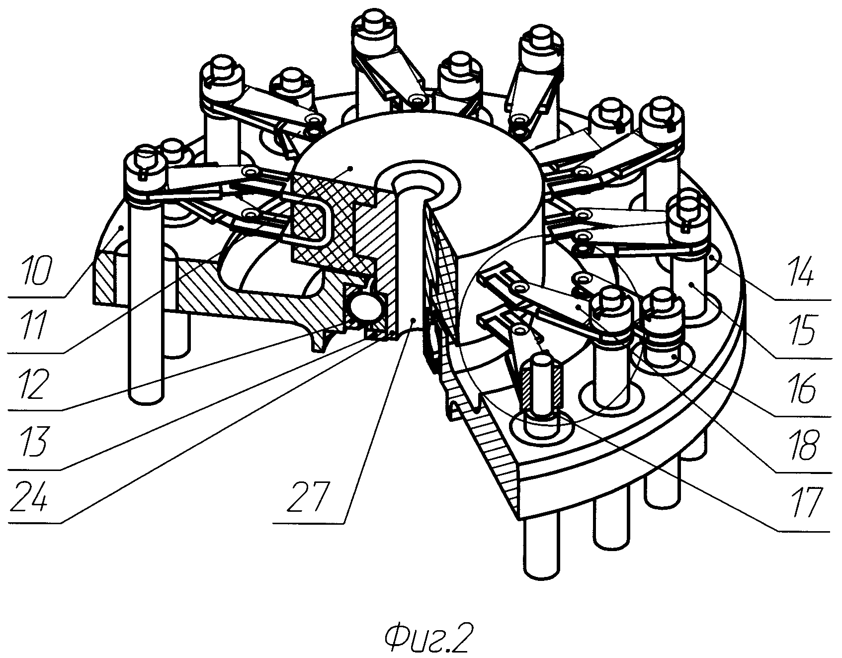 Изобретение относится к исполнительным коммутирующим устройствам датчиков требуемого физического параметра систем автоматики взрывоопасных технических объектов, которые могут подвергаться аварийным воздействиям (ударным воздействиям при падении и(или) воздействиям угловых ускорений). В настоящее время известны различные конструкции исполнительных коммутирующих устройств системы автоматики взрывоопасных технических объектов, которые могут подвергаться аварийным воздействиям, однако они, обладая определенными достоинствами, зачастую не могут обеспечить гарантированную безопасность указанных объектов в аварийных ситуациях. Известно исполнительное коммутирующее устройство «Моторное реле времени ВС-10», предназначенное для коммутации электрических цепей [Г.В. Дружинин «Реле времени» // Библиотека по автоматике. М. - Л., изд-во «Энергия» - 1966 - №200 - С.67, рис.34]. Реле содержит корпус, контактную систему и электромагнитный привод. Реле также содержит дополнительную контактную систему, при подаче электропитания на ее контакты вращение от привода через редуктор и шестерню передается на ось с установленными дисками, на которых размещены упоры, взаимодействующие с кулачками переключения контактов контактных систем. Конструктивное исполнение контактных систем не обеспечивает их стойкость при ударных воздействиях большой интенсивности. Известно исполнительное коммутирующее устройство, предназначенное для коммутации электрических цепей [патент РФ №2367050 C1, H01H 35/14, опубл. 08.07.2008]. Это исполнительное коммутирующее устройство принято за прототип как наиболее близкое по технической сущности к заявляемому устройству. Исполнительное коммутирующее устройство содержит корпус, контактную систему, перемыкатель с токопроводящими секторами, взаимодействующими с расположенными по окружности контактами, электромагнитный привод с ротором и датчик физического параметра, электрически связанный с электромагнитным приводом. Контактная система содержит перемыкатель с токопроводящими секторами, установленными на одной оси с возможностью взаимодействия с контактами основной и дополнительной контактной системы, расположенными по окружности, при этом электромагнитный привод выполнен в виде двухпозиционного поляризованного реле с возвратно-поворотным движением якоря и кинематически связанного с ним храпового механизма с возможностью пошагового однонаправленного поворота оси, на которой жестко закреплен перемыкатель. Данное исполнительное коммутирующее устройство обеспечивает сохранение состояния контактной системы в аварийных ситуациях. Однако выполнение электромагнитного привода в виде двухпозиционного поляризованного реле с возвратно-поворотным движением якоря делает конструкцию уязвимой к многократным ударным воздействиям и воздействию угловых ускорений. Храповой механизм, кинематически связанный с якорем и обеспечивающий пошаговый однонаправленный поворот оси перемыкателя контактной системы, также уязвим к указанным воздействиям. В связи с этим задачей заявляемого изобретения является гарантированное обеспечение сохранения состояния контактной системы исполнительного коммутирующего устройства в условиях широкого спектра аварийных ситуаций, в частности, при многократных ударных воздействиях и 