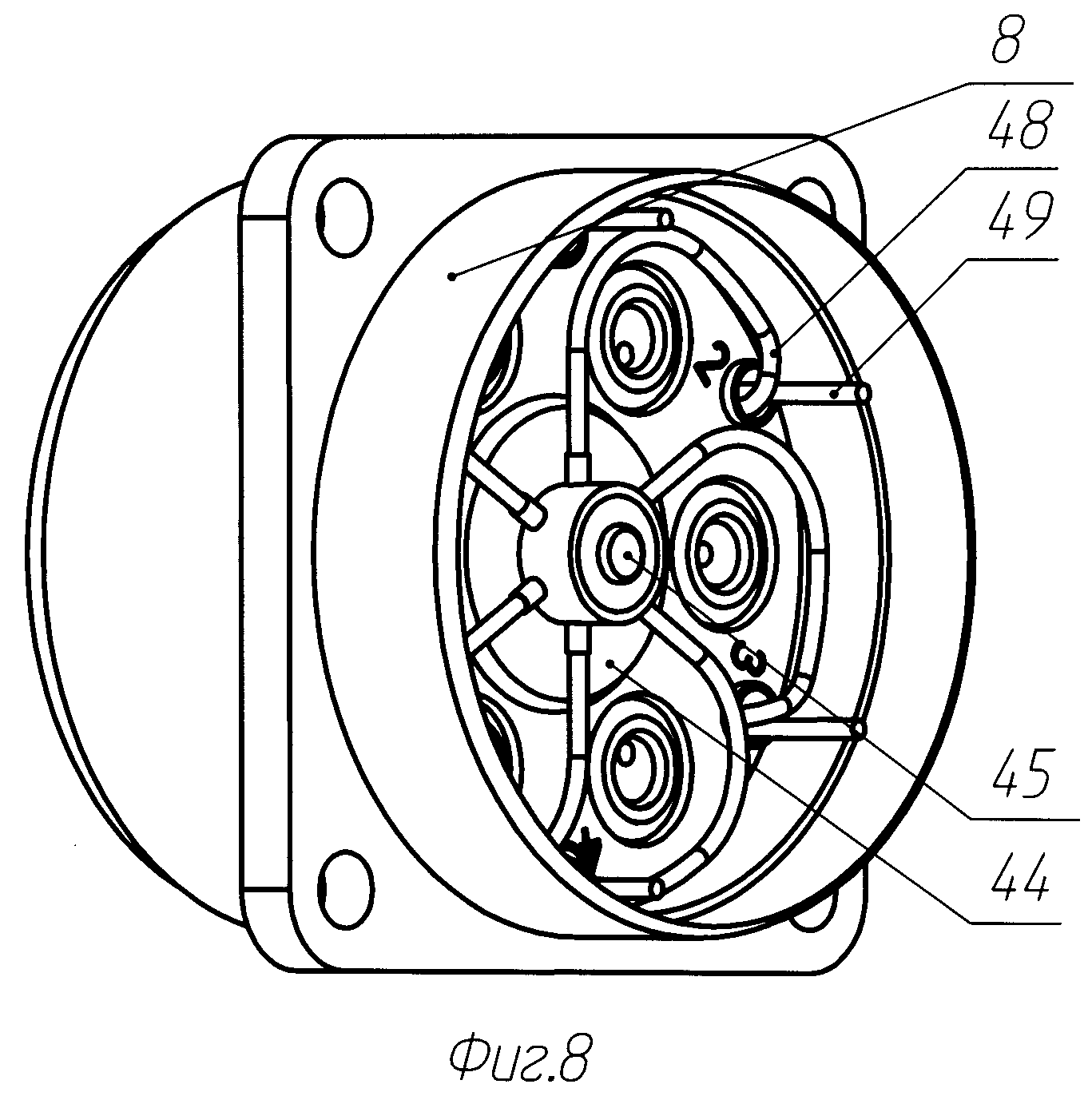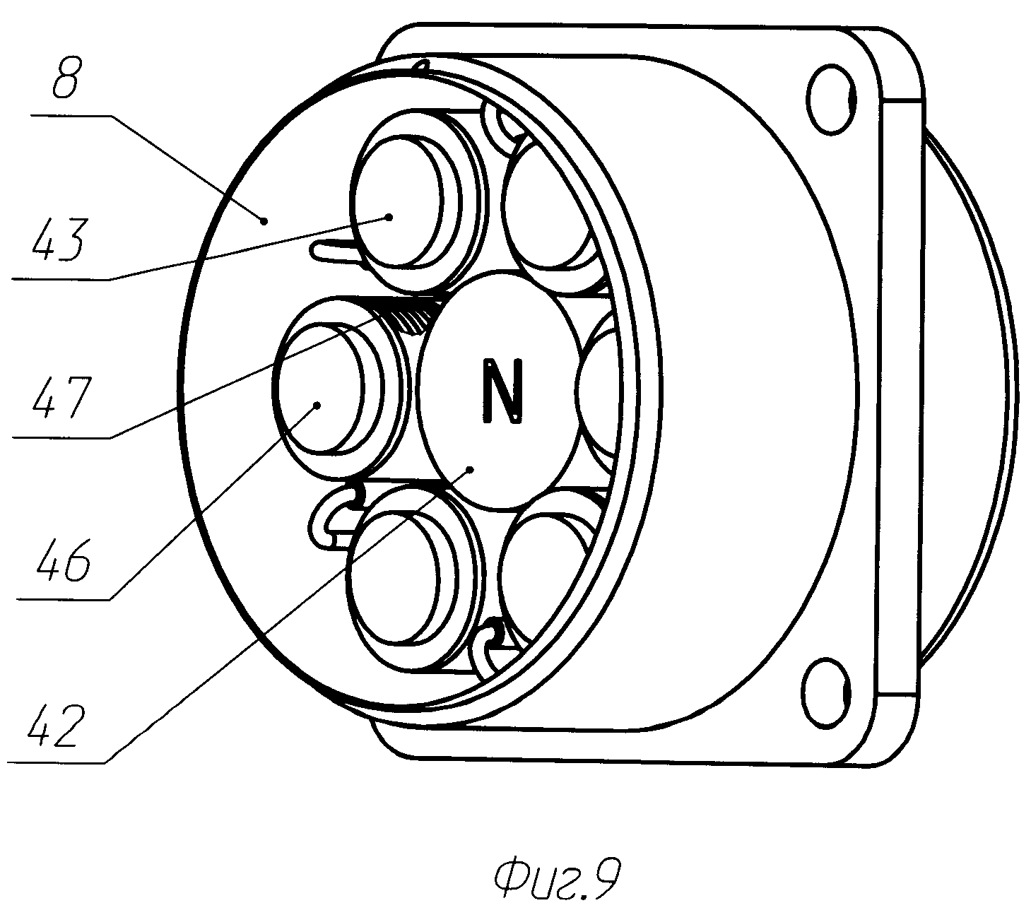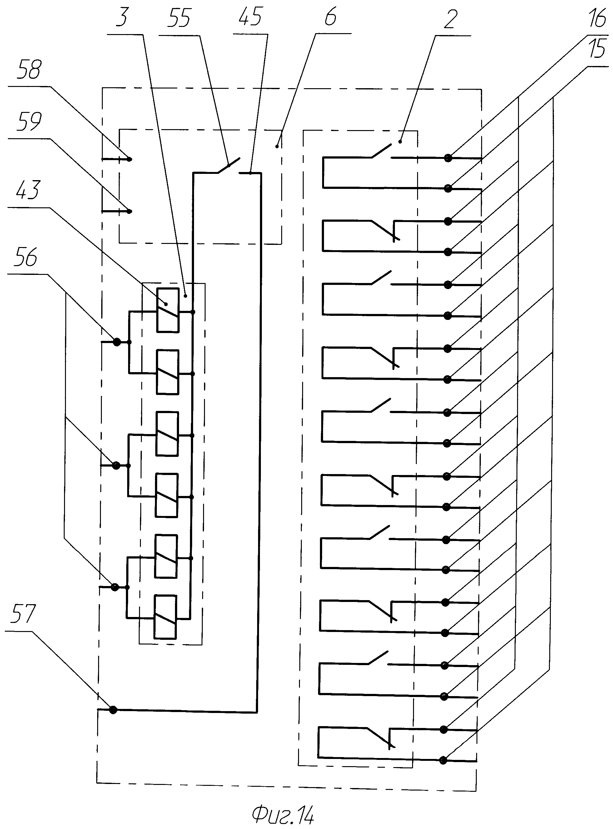 Изобретение относится к исполнительным коммутирующим устройствам датчиков требуемого физического параметра систем автоматики взрывоопасных технических объектов, которые могут подвергаться аварийным воздействиям. Устройство содержит корпус, контактную систему, перемыкатель с токопроводящими секторами, взаимодействующими с расположенными по окружности контактами, электромагнитный привод в виде многополюсного поляризованного реле, ротор в виде якоря и датчик физического параметра, электрически связанный с электромагнитным приводом. Якорь точечно соединен через шарнирный механизм с осью, на которой жестко закреплен перемыкатель. Якорь имеет форму диска с выполненными равномерно по всему периметру зубьями, взаимодействующими с зубьями кольцевого выступа корпуса. Якорь взаимодействует с многополюсным поляризованным реле. Каждому полюсу реле соответствует зуб кольцевого выступа корпуса. Зубья на кольцевом выступе распределены равномерно. Механическое взаимодействие одного из зубьев якоря с соответствующим полюсу зубом кольцевого выступа обеспечивает возможность пошагового поворота оси с перемыкателем. Технический результат - гарантированное сохранение состояния контактов контактной системы исполнительного коммутирующего устройства при многократных ударных воздействиях и воздействии угловых ускорений. 14 ил.
