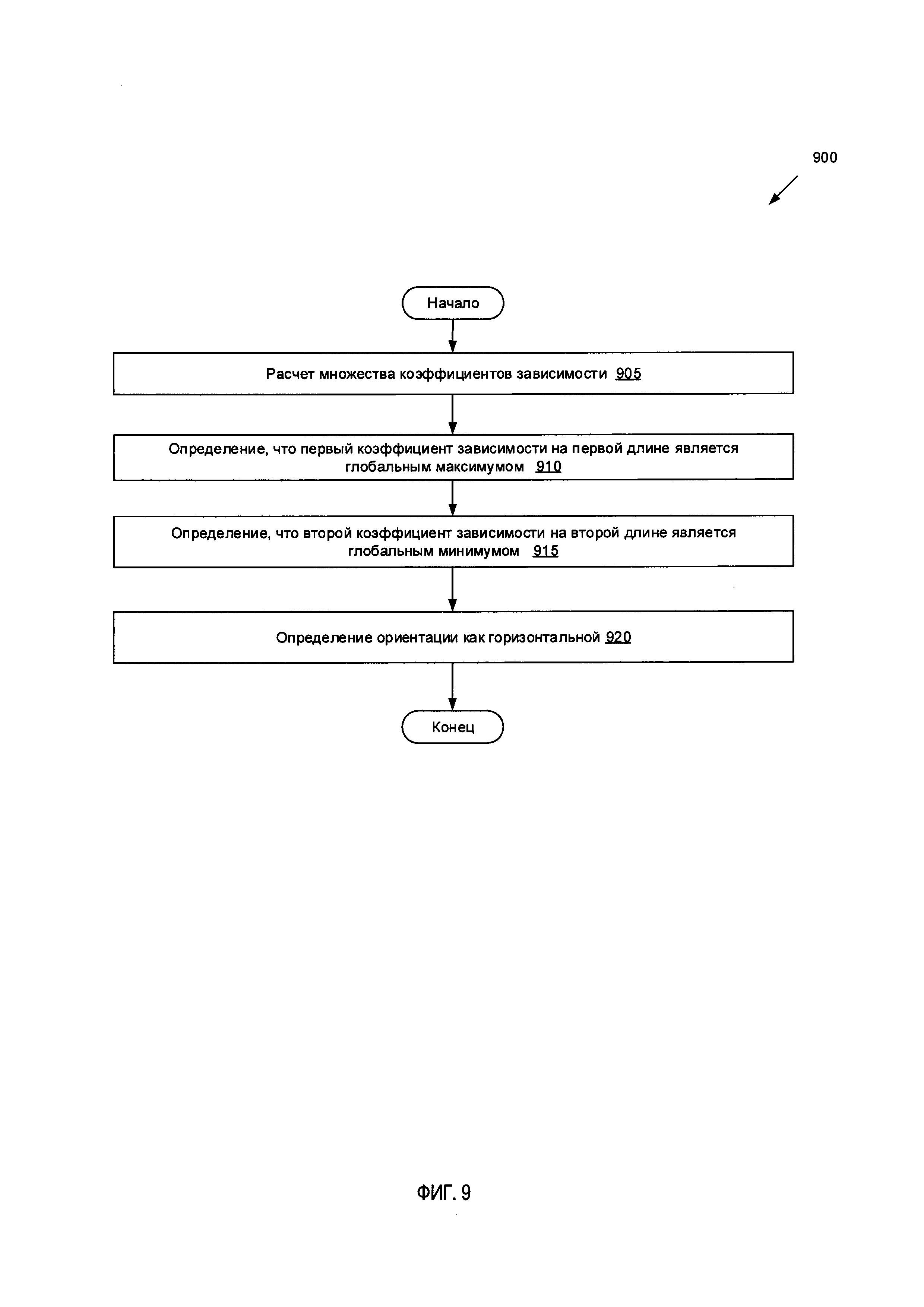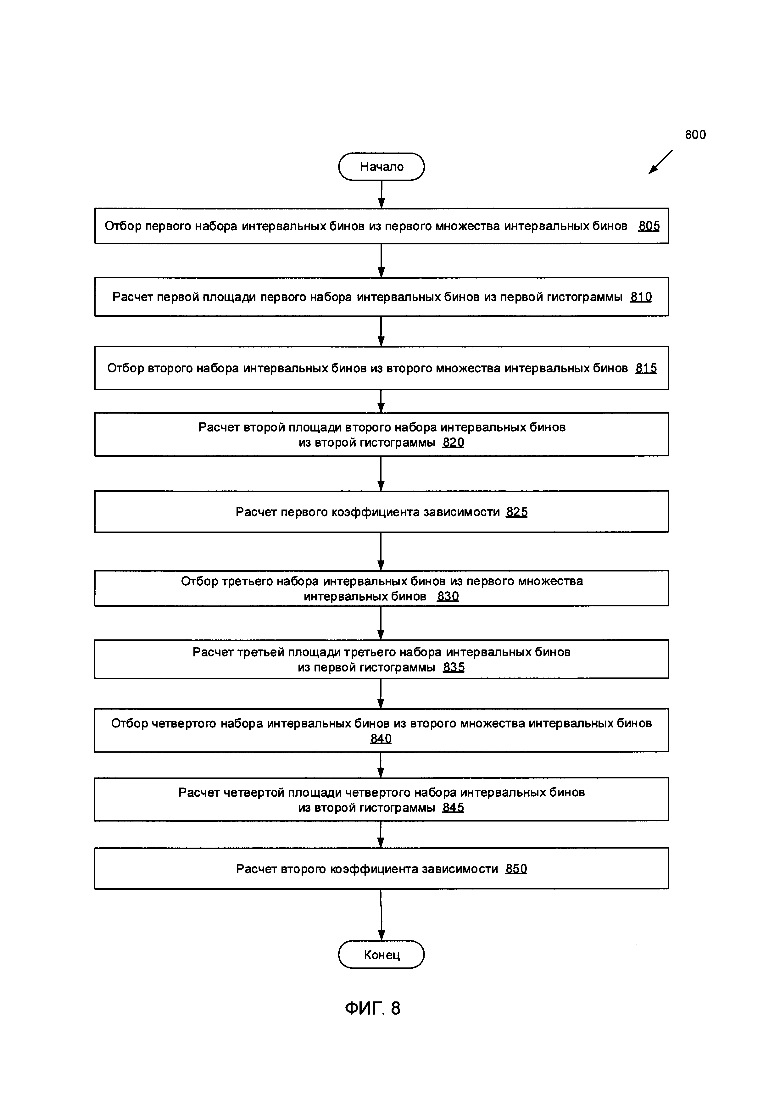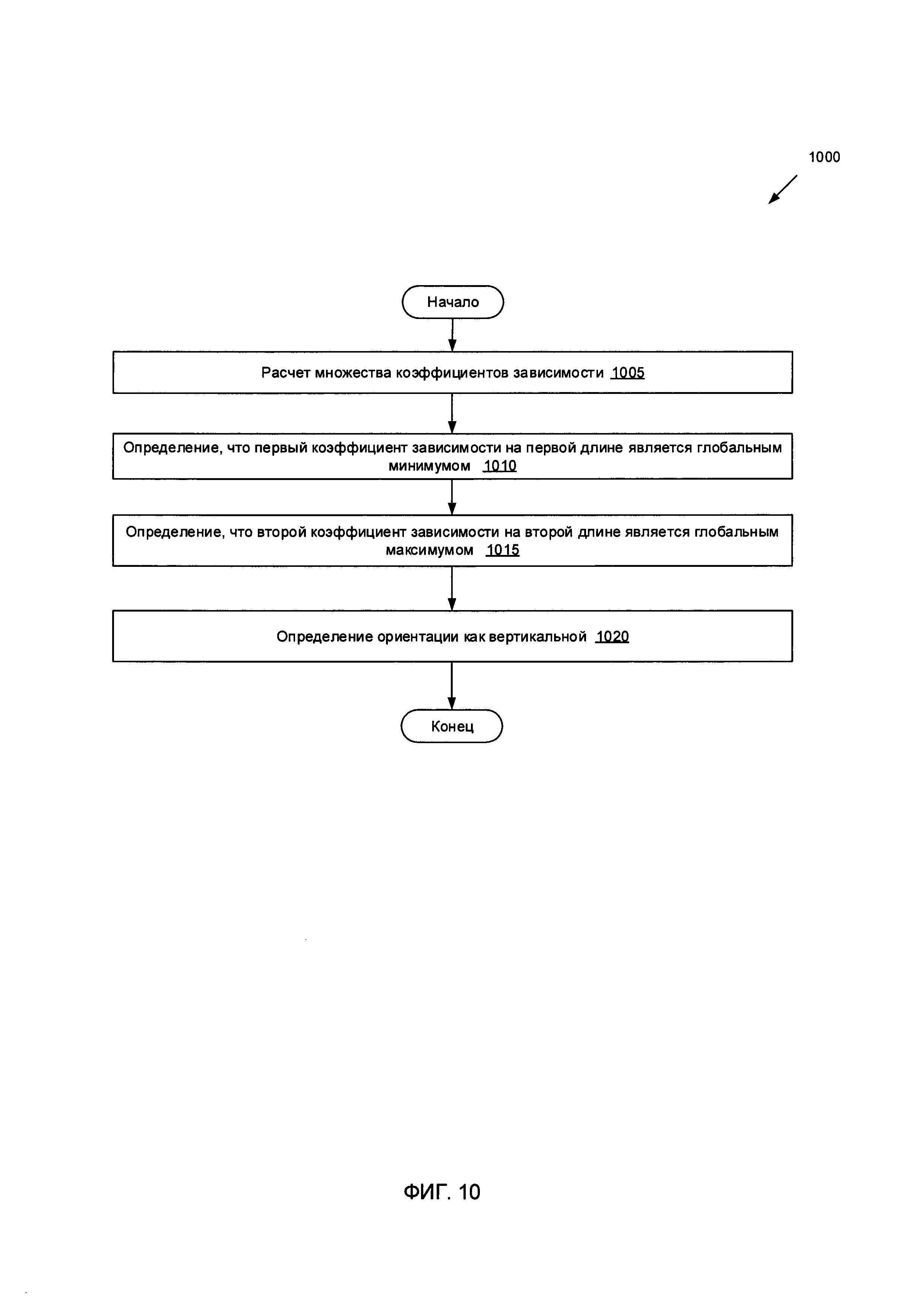 ОБЛАСТЬ ТЕХНИКИ [001] Настоящее изобретение в целом относится к вычислительным системам - в частности, к определению ориентации страницы на изображениях. УРОВЕНЬ ТЕХНИКИ [002] Оптическое распознавание символов (OCR) представляет собой электронное преобразование отсканированных или сфотографированных изображений машинописного или печатного текста в машиночитаемый текст. OCR является общепринятым методом оцифровки печатных текстов, чтобы их можно было редактировать в электронном виде, производить в них поиск, отображать их в режиме онлайн, и используется в таких процессах, как преобразование текста в речь, извлечение данных и интеллектуальный анализ текста. В результате постраничной фотосъемки документа могут возникнуть перспективные или геометрические искажения отснятых страниц документа. Для правильной обработки методом OCR может потребоваться определить ориентацию строк текста на изображении документа, с тем чтобы исправить искаженную перспективу перед проведением OCR-обработки. КРАТКОЕ ОПИСАНИЕ ЧЕРТЕЖЕЙ [003] Для более полного понимания настоящего изобретения ниже приводится подробное описание, в котором для примера, а не способом ограничения, оно иллюстрируется со ссылкой на чертежи, на которых: [004] На Фиг. 1 изображена схема компонентов верхнего уровня для примера архитектуры вычислительного устройства в соответствии с одним или более аспектами настоящего изобретения. [005] На Фиг. 2А показан пример гистограммы горизонтальных серий белых пикселей на изображении документа в соответствии с одним или более аспектами настоящего изобретения. [006] На Фиг. 2В показан пример гистограммы вертикальных серий белых пикселей на изображении документа в соответствии с одним или более аспектами настоящего изобретения. [007] На Фиг. 3А показан пример графика распределения коэффициентов зависимости, указывающего на вертикальную ориентацию текста в соответствии с одним или более аспектами настоящего изобретения. [008] На Фиг. 3В показан пример графика распределения коэффициентов зависимости, указывающего на горизонтальную ориентацию текста в соответствии с одним или более аспектами настоящего изобретения. [009] На Фиг. 4 приведена блок-схема способа определения ориентации строк текстового контента на изображении в соответствии с одним или более аспектами настоящего изобретения. [0010] На Фиг. 5 приведена блок-схема способа определения ориентации строк текстового контента путем сопоставления площадей гистограмм в соответствии с одним или более аспектами настоящего изобретения. [0011] На Фиг. 6 приведена блок-схема способа расчета площадей гистограмм в соответствии с одним или более аспектами настоящего изобретения. [0012] На Фиг. 7 приведена блок-схема способа перерасчета отношения площадей в соответствии с одним или более аспектами настоящего изобретения. [0013] На Фиг. 8 приведена блок-схема способа расчета коэффициентов зависимости в соответствии с одним или более аспектами настоящего изобретения. [0014] На Фиг. 9 приведена блок-схема способа определения горизонтальной ориентации строк текстового контента с использованием коэффициентов зависимости в соответствии с одним или более аспектами настоящего изобретения. [0015] На Фиг. 10 приведена блок-схема способа определения вертикальной ориентации строк текстового контента с использование