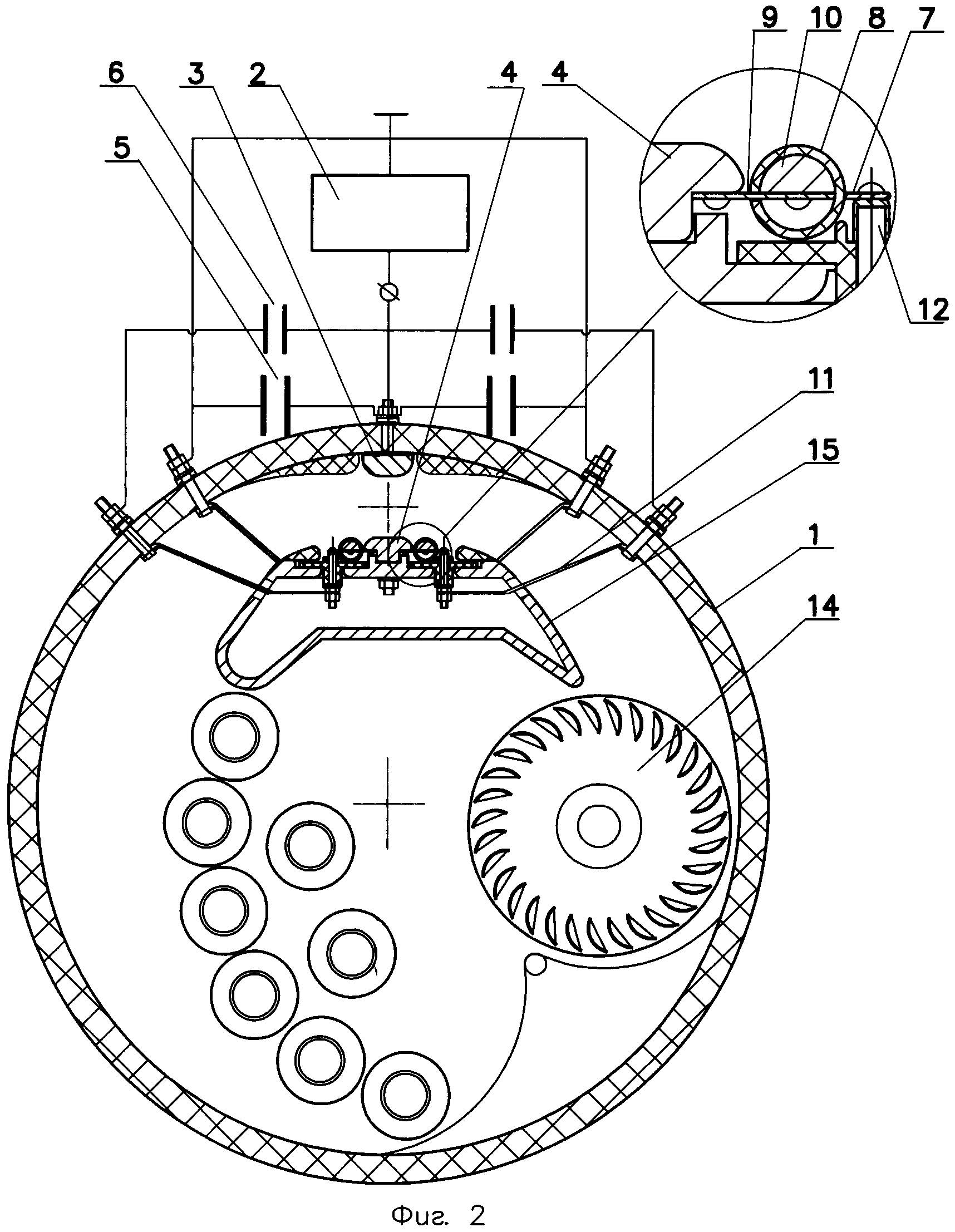 Изобретение относится к квантовой электронике, в частности к мощным импульсно-периодическим газоразрядным лазерам, преимущественно эксимерным, с поперечным самостоятельным разрядом и УФ предыонизацией. Область применений включает лазерную микрообработку материалов, отжиг аморфного кремния (α-Si) при производстве плоских дисплеев, производство высокотемпературных сверхпроводников методом импульсной лазерной абляции и др. Известна разрядная система газового лазера [1], в которой УФ предыонизация осуществляется разрядами через диэлектрический барьер, зажигаемыми сбоку от высоковольтного электрода. При использовании в эксимерном лазере разрядная система позволяет эффективно получать энергию генерации при высокой частоте следования импульсов. Недостатком указанного устройства является малый уровень предыонизации, ограничивающий возможность увеличения апертуры основного разряда, повышения энергии генерации и средней мощности лазера. Этого недостатка лишена разрядная система газового лазера с УФ предыонизацией, осуществляемой излучением от двух рядов искр, автоматически зажигаемых при зарядке импульсных конденсаторов сбоку от высоковольтного электрода, расположенного со стороны стенки корпуса лазера [2]. Данная система обеспечила достижение высокой (600 Вт) средней мощности лазерного УФ излучения в эксимерном KrF лазере. Недостатком электродной системы с УФ предыонизатором в виде рядов отдельных искровых промежутков является пространственная неоднородность предыонизации по длине электродов, что уменьшает кпд лазера, и ее сложность из-за необходимости герметизировать десятки токовводов предыонизатора. Кроме того, искровые промежутки обусловливают повышенное поступление в газ продуктов эрозии электродов предыонизатора, что уменьшает время жизни газовой смеси лазера. Частично этих недостатков лишена разрядная система газового лазера с предыонизацией, осуществляемой через частично прозрачный электрод УФ излучением завершенного скользящего разряда по поверхности плоской диэлектрической пластины [3]. В данной электродной системе обеспечивается высокий уровень и пространственная однородность предыонизации разрядной зоны между высоковольтным и заземленным электродами лазера. Достигается возможность повышения энергии генерации и средней мощности излучения лазера. При этом реализуется возможность в несколько раз уменьшить прокачиваемую через предыонизатор энергию, что, в свою очередь, повышает время жизни газовой смеси. При генерации на XeCl средняя мощность УФ лазера с данной электродной системой достигала более 1 кВт. Однако частично прозрачный электрод с предыонизатором, расположенным со стороны его нерабочей поверхности, имеет относительно большие поперечные размеры, что повышает индуктивность разрядного контура. Этот фактор ограничивает получение высокоэффективной генерации в эксимерных лазерах на фторидах инертных газов (KrF, ArF), для которых наблюдается резкая зависимость эффективности лазера от индуктивности разрядного контура. Кроме этого, частично прозрачные электроды сложны и дороги в изготовлении. Наиболее близким техническим решением, выбранным в качестве прототипа, является разрядная система высокоэффективного газового лазера, содержащая расположенные в корпусе лазера пр