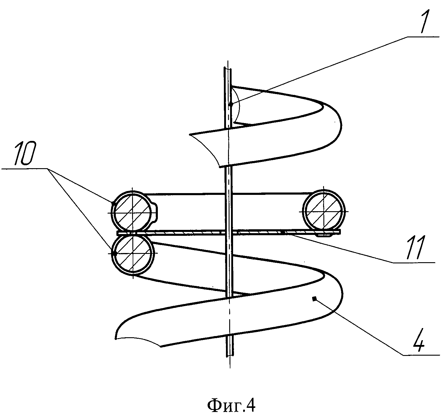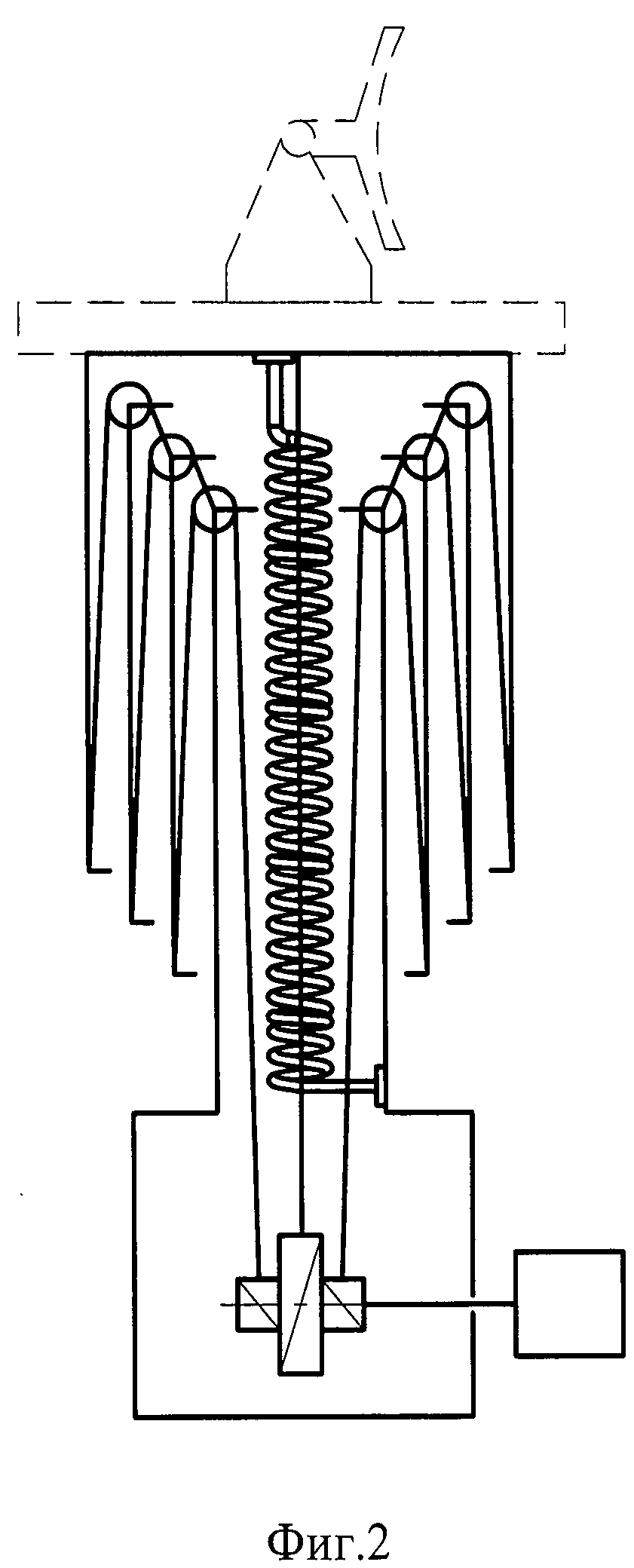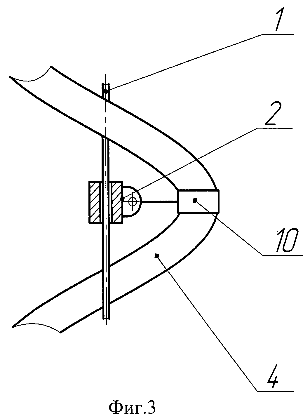 Изобретение относится к антенной технике, в частности к мобильным средствам наблюдения, и может быть использовано в телескопических мачтах, устанавливаемых в кузовах специальных транспортных средств и предназначенных для оперативного подъема и опускания антенных и оптико-электронных средств наблюдения из внутреннего объема кузова. Известна, например, многосекционная телескопическая мачта, снабженная подъемно-опускным тросом и приводным механизмом (см. описание изобретения к авторскому свидетельству №364053, кл. Н01Q 7/10, опубликованному в бюллетене №4 за 1973 г.) В указанной телескопической мачте предусмотрено принудительное опускание подвижных секций мачты с помощью троса и максимально освобождено внутреннее пространство секций за счет выноса систем тросов и роликов на внешнюю поверхность секций. Недостатком данной и подобных телескопических мачт является незаконченность конструкции, а именно отсутствие постоянной электрической связи между неподвижной и подвижной частями мачты. В настоящее время такая связь обеспечивается, как правило, установкой снаружи телескопической мачты кабельного перехода, соединяющего антенные и оптико-электронные средства наблюдения с аппаратурой, находящейся внутри машины, а так же специальных устройств его разматывания-сматывания при подъеме-опускании мачты. В таких технических решениях кабельный переход напрямую подвержен внешним механическим и климатическим воздействиям и имеет низкую надежность. Техническим результатом заявленного изобретения является создание законченной конструкции телескопической мачты для подъема и опускания радиоэлектронных средств с обеспечением постоянной электрической связи между неподвижной и верхней подвижной частью мачты, а также защита кабельного перехода от механических и климатических воздействий. Это достигается тем, что в состав телескопической мачты введен кабельный переход, имеющий винтовую или зигзагообразную форму и центрирующие поводки, один конец кабельного перехода закреплен на неподвижном колене, а другой на верхнем подвижном колене. Кабельный переход установлен внутри колен телескопической мачты соосно с тросом принудительного опускания и взаимодействует с ним при помощи центрирующих поводков, один конец которых закреплен неподвижно на витках кабельного перехода, а другой закреплен на тросе принудительного опускания с возможностью перемещения вдоль троса принудительного опускания. Сущность изобретения поясняется графическими материалами, на которых: - на фиг.1 - схема телескопической мачты с кабельным переходом в рабочем положении; - на фиг.2 - схема телескопической мачты с кабельным переходом в транспортном положении; - на фиг.3 - схема центрирующего поводка состоящего из двух шарнирно соединенных между собой частей; - на фиг.4 - схема центрирующего поводка выполненного в виде пластины с закрепленным на ней витком кабельного перехода. Телескопическая мачта для подъема и опускания радиоэлектронных средств состоит из неподвижного колена 5, подвижного верхнего колена 3, с закрепленной на нем полезной нагрузкой 9, промежуточных колен 7, троса принудительного опускания 1. В состав телескопической мачты входят кабельный переход 4 с оконечными разъемами 6 и 8, а также центрирующие_поводки 2 или 11. Разъем 6 закреплен на непо