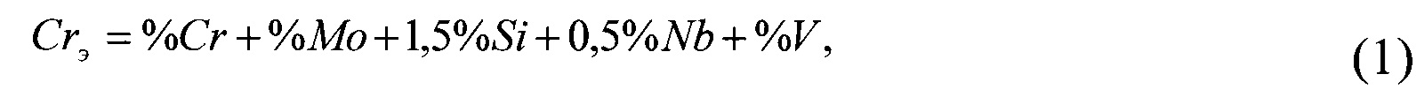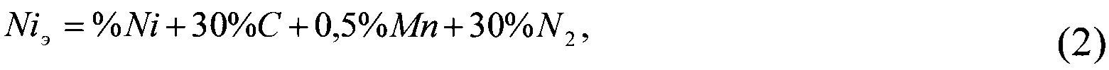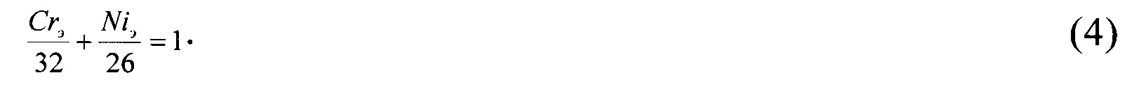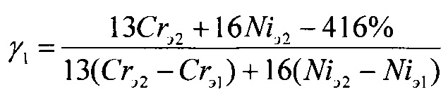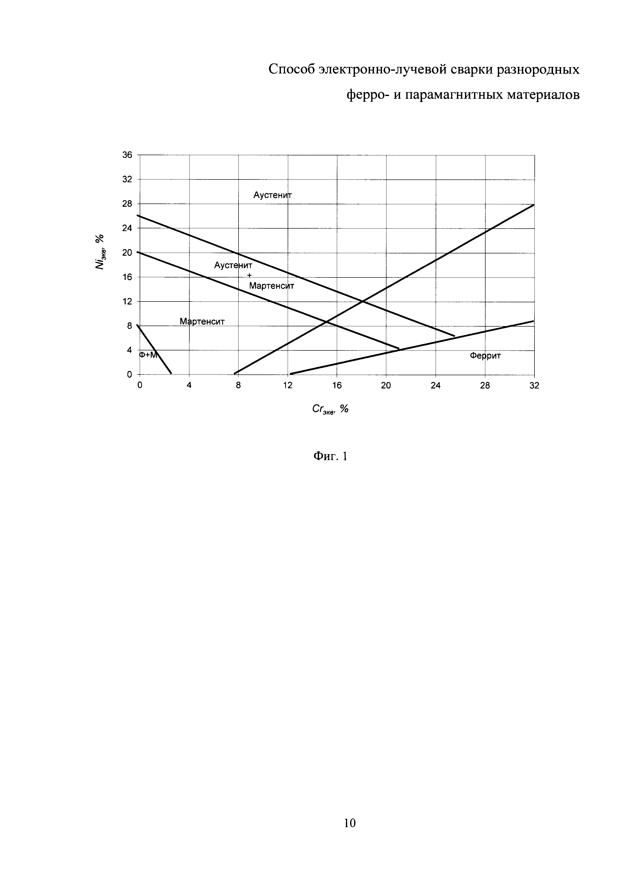 - степень проплавления кромок парамагнитного материала, Crэ1 и Crэ2 - соответственно эквивалентное содержание хрома в парамагнитном и ферромагнитном материалах, Niэ1 и Niэ2 - эквивалентное содержание никеля парамагнитном и ферромагнитном материалах соответственно, причем длительность пребывания пучка на парамагнитном и ферромагнитном материалах определяют соответственно: