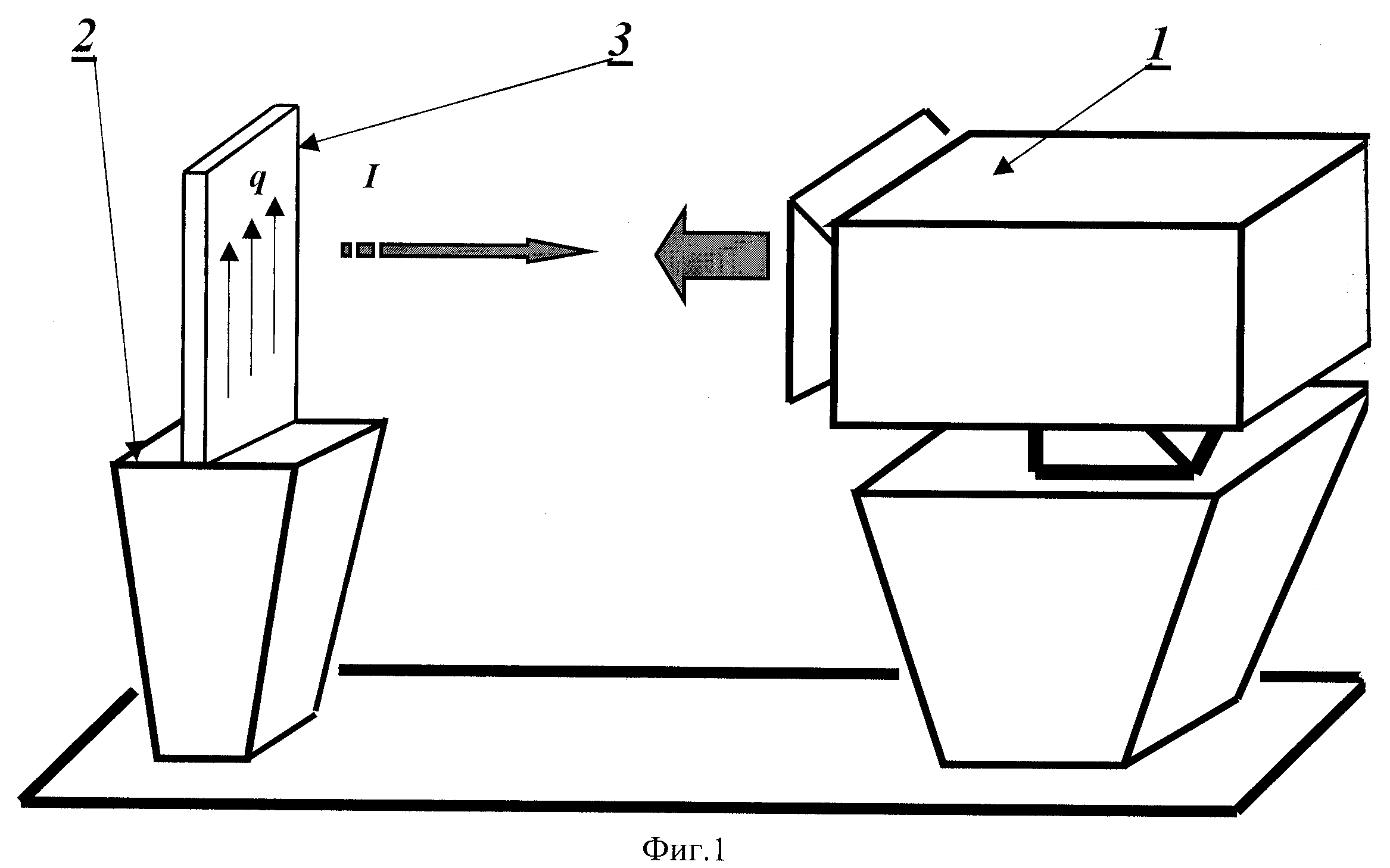 - лопатку турбины 3 с дефектным местом 4. Условные обозначения на чертеже: q - вектор теплового потока; I - излучение от объекта; ←