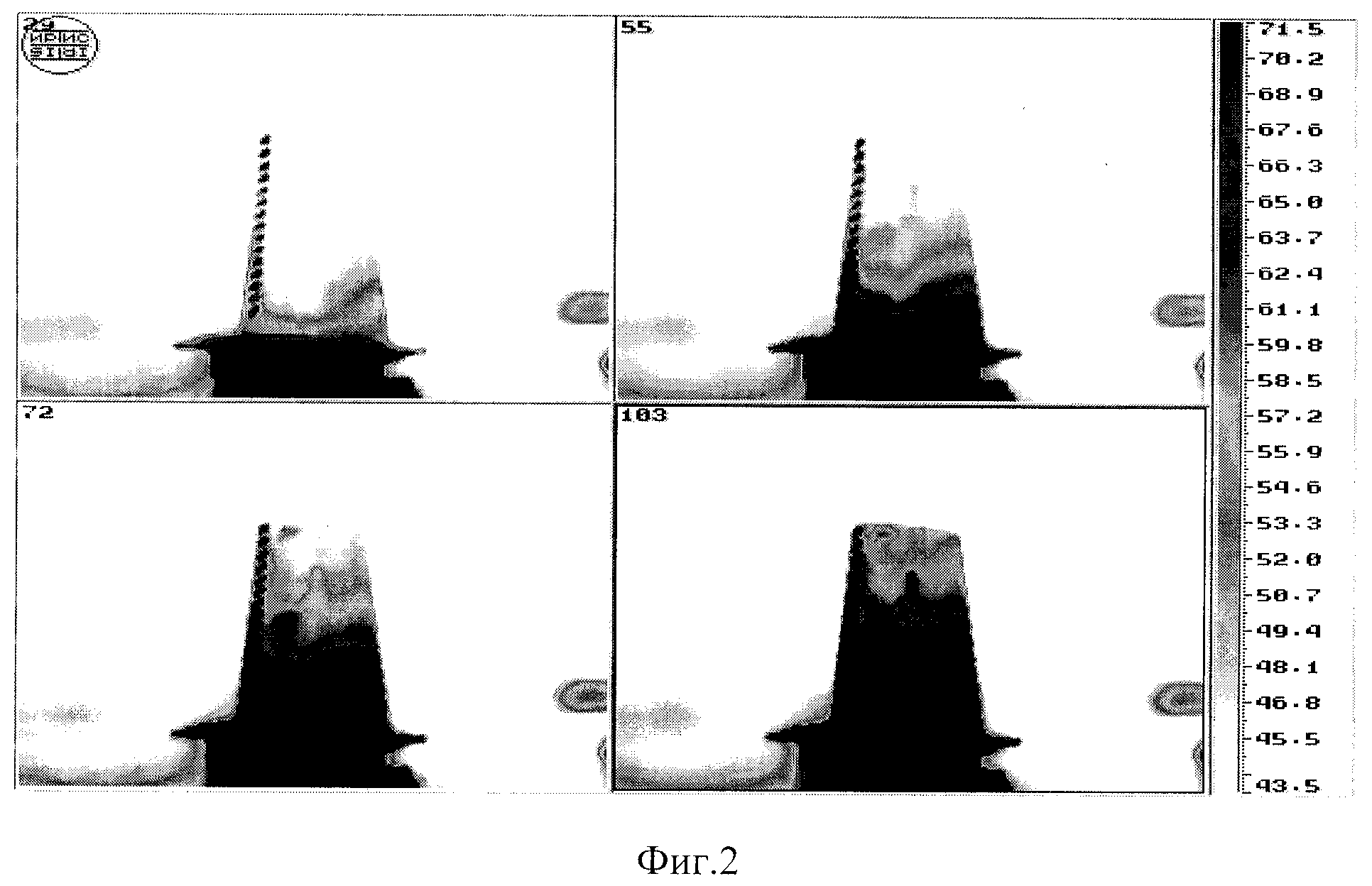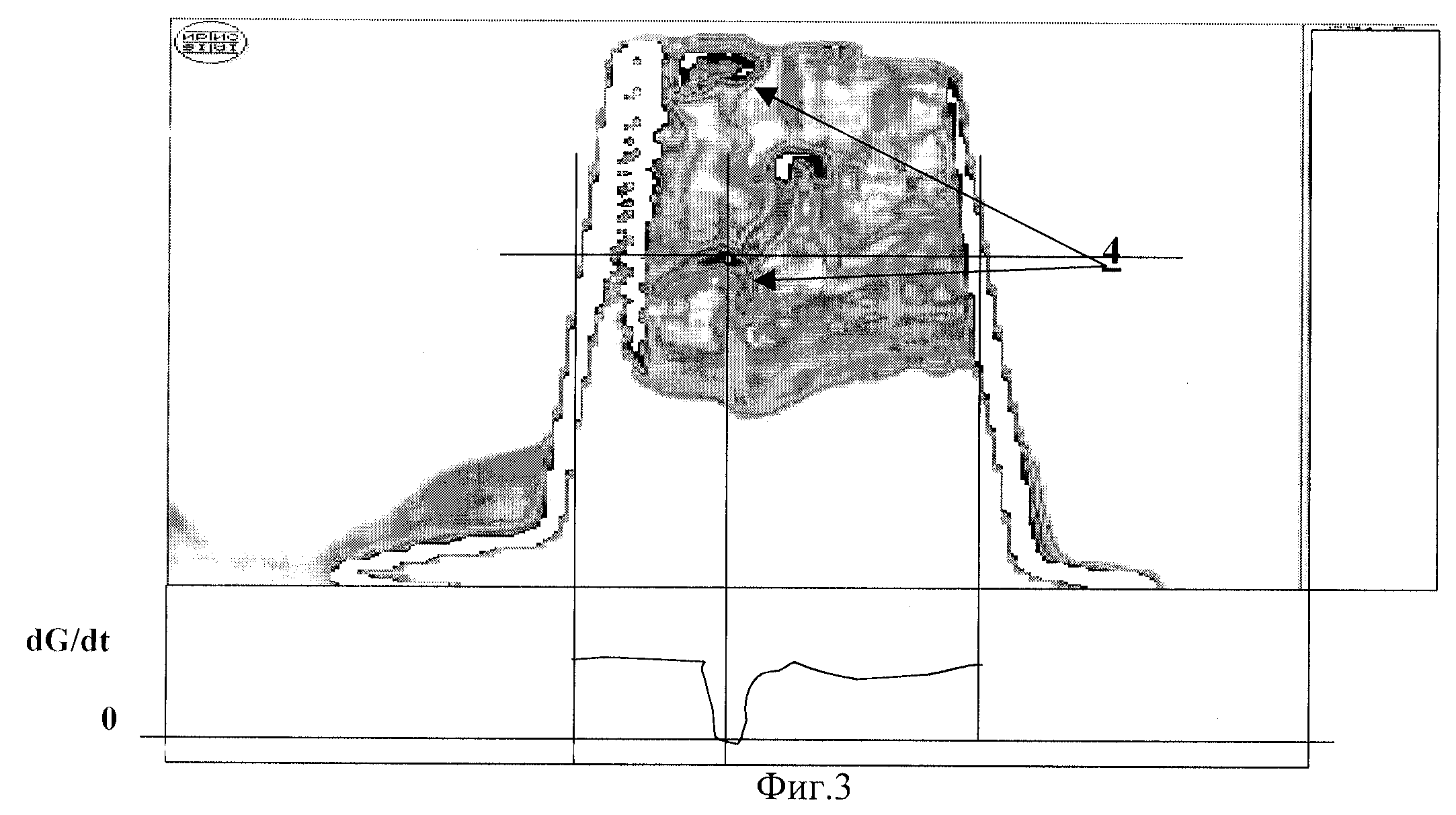 представлены исходные теплограммы, последовательно записанные в память компьютера; на фиг.3 представлен результат обработки исходной теплограммы по предлагаемому способу.