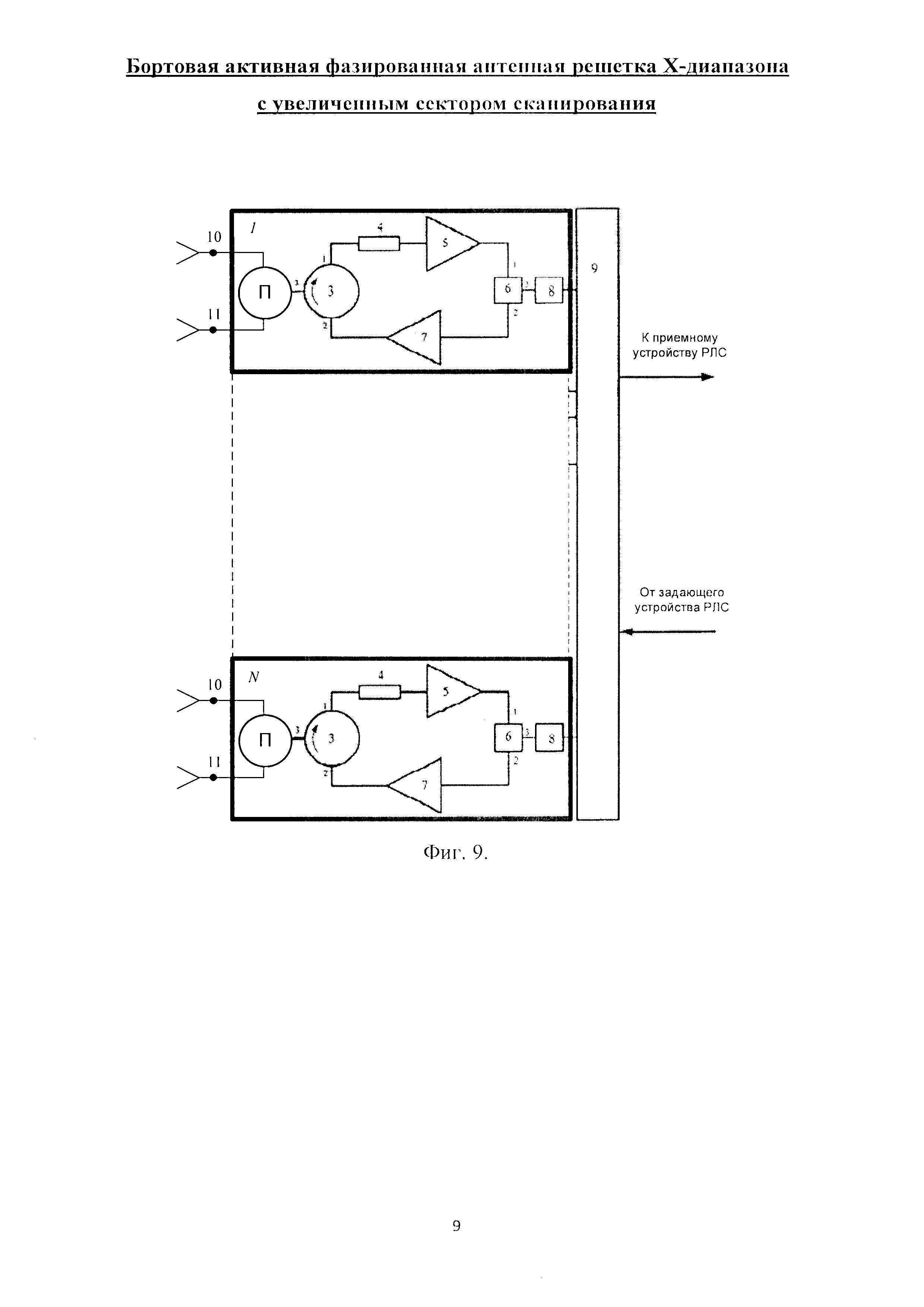 Во внутренней области клина располагается блок из N двухканальных ППМ. Каждый двухканальный ППМ имеет два переключаемых независимых входа-выхода с помощью электрически управляемого переключателя, размещаемого внутри двухканального ППМ.