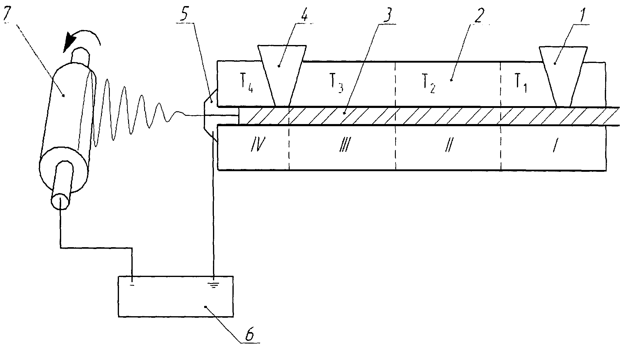 Изобретение относится к созданию полимерных нетканых микроволокнистых биоразлагаемых материалов, которые могут использоваться в медицинских целях. В последнее время алифатические полиэфиры находят все больше применений благодаря споим свойствам биоразлагаемости и биосовместимости. Полилактид, сырьем для производства которого является крахмал, выделяется па фоне остальных полимеров своей доступностью и универсальностью. Изначально дорогой и применяющийся только в сфере биомедицинских изделий, в настоящее время полилактид стал более доступен и используется как экологически чистая альтернатива обычным пластикам. Одной из сфер применения подобных микроволокнистых материалов являются медицинские повязки различного назначения. Так, патент RU 2120306 предлагает использовать для лечения ран и ожогов двухслойный материал, у которого слой, прилегающий к ране, содержит микроволокна из смеси полилактида и поливинилпирролидона. В патенте RU 2463078 представлен пластырь, который может снабжать поврежденную кожу или открытые раны активным веществом, способствующим ускорению или улучшению заживления ран, при этом в качестве носителя активного вещества может выступать материал из полилактида. Волокнистый материал из полилактида также может использоваться в медицине во впитывающих «подгузниках» (CN 101675849), характеризуясь высоким влагопоглощением, удобством использования, гигиеничностью и низкой стоимостью. Также можно использовать нетканый материал из полилактида для создания асептических покрытий (US 7947292) и в качестве подложек для тканевой инженерии (US 8221780). Таким образом, за прошедшие годы разработано достаточно много нетканых материалов, использующихся в биомедицинских целях. Основным недостатком традиционного способа получения волокнистых материалов из раствора полимера, является использование органических растворителей, многие из которых токсичны и дороги. Испаряющийся в процессе формования растворитель обычно не улавливается и выбрасывается в атмосферу, что неблагоприятно как с экологической (загрязняется атмосфера), так и с экономической (увеличивается себестоимость конечного продукта) точек зрения. К тому же, получаемый материал содержит остаточный растворитель, что накладывает ограничения на его применение в биомедицинских целях. Одним из перспективных методов получения тонковолокнистых материалов является электроформоваиие без использования растворителя - из расплавов полимеров. Метод был впервые предложен в 1981 году Ларрондо и Манлеем (L. Larrondo, R. St. J Manley // Journal of Polymer Science: Polymer Physics Edition. - 1981. - V.19. - P.909-940), которые получили из расплавов чистого полиэтилена и полипропилена волокна диаметром 50-400 мкм. Прототипом заявляемого изобретения является способ получения нетканого материала из расплава полилактида (H. Zhou [et al.] // Polymer. - 2006. - V.47. - P.7497-7505). Недостатки прототипа: 1. В качестве исходного материала применяется готовый полилактид, что не позволяет получать нетканый материал из мономеров в одну стадию, а также накладывает ограничения на регулирование структуры материала ввиду невозможности изменять молекулярную массу полимера. 2. Невозможность производства больших объемов нетканого материала. 3. Малый геометрический размер получаемого полотна нетканого материала. Известен нетканый материал, получаемый мет