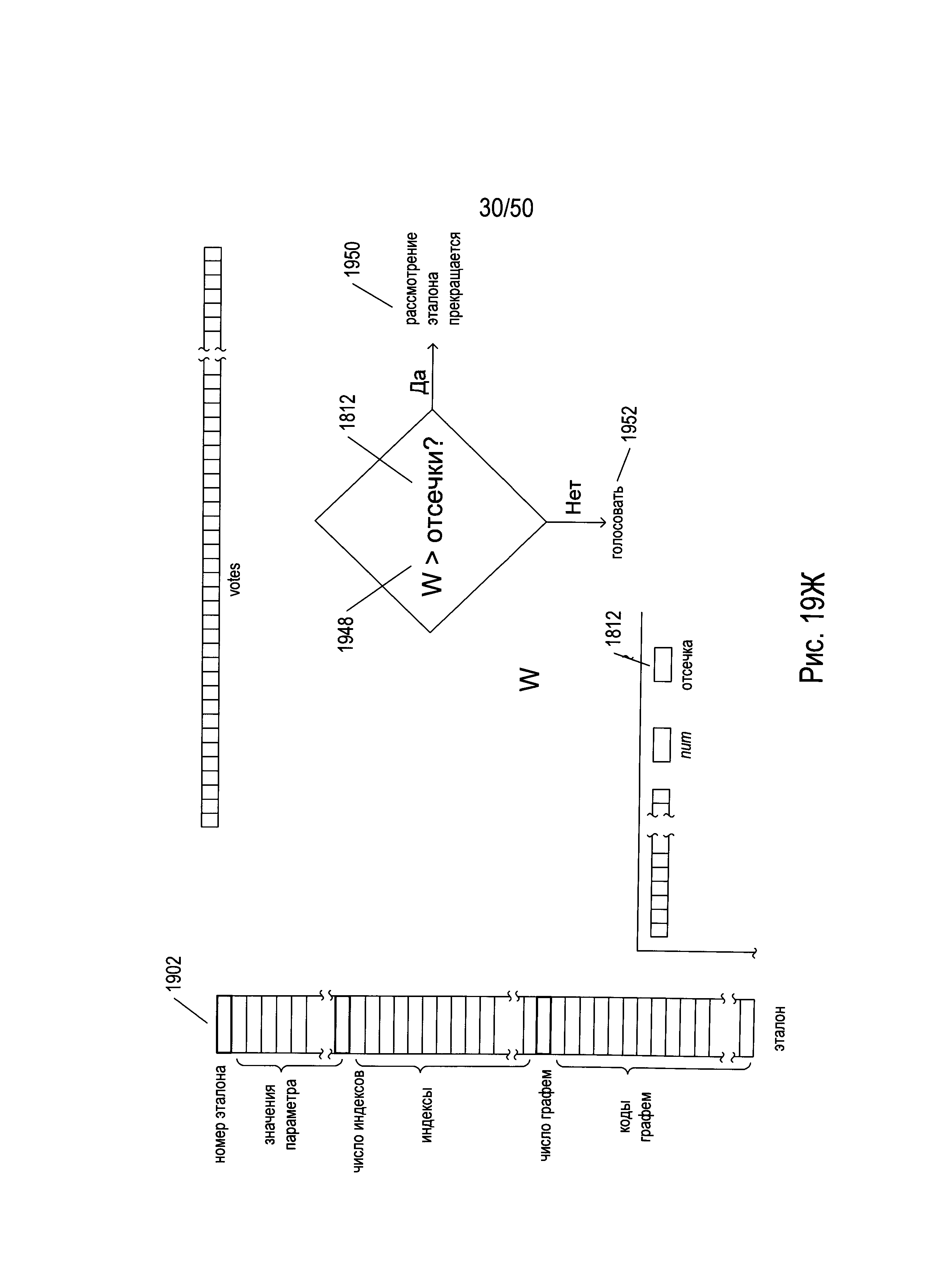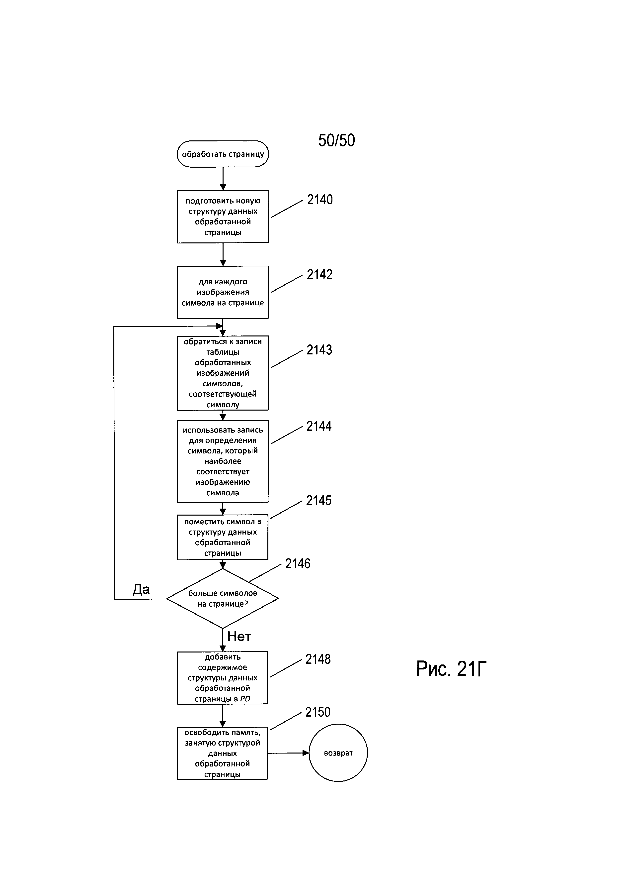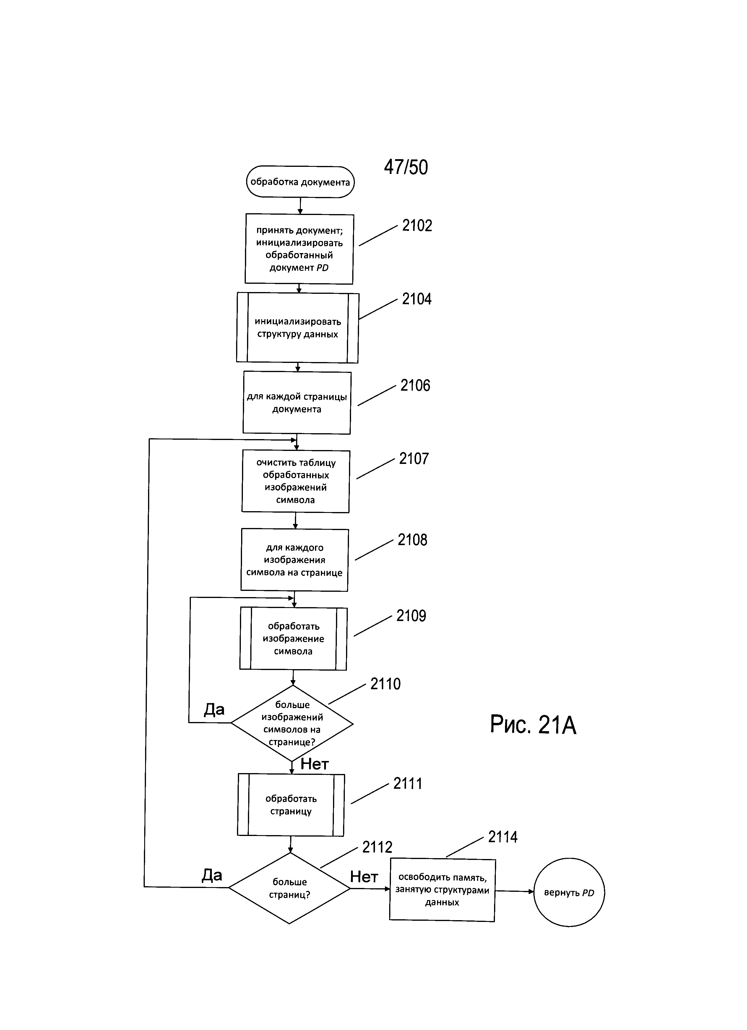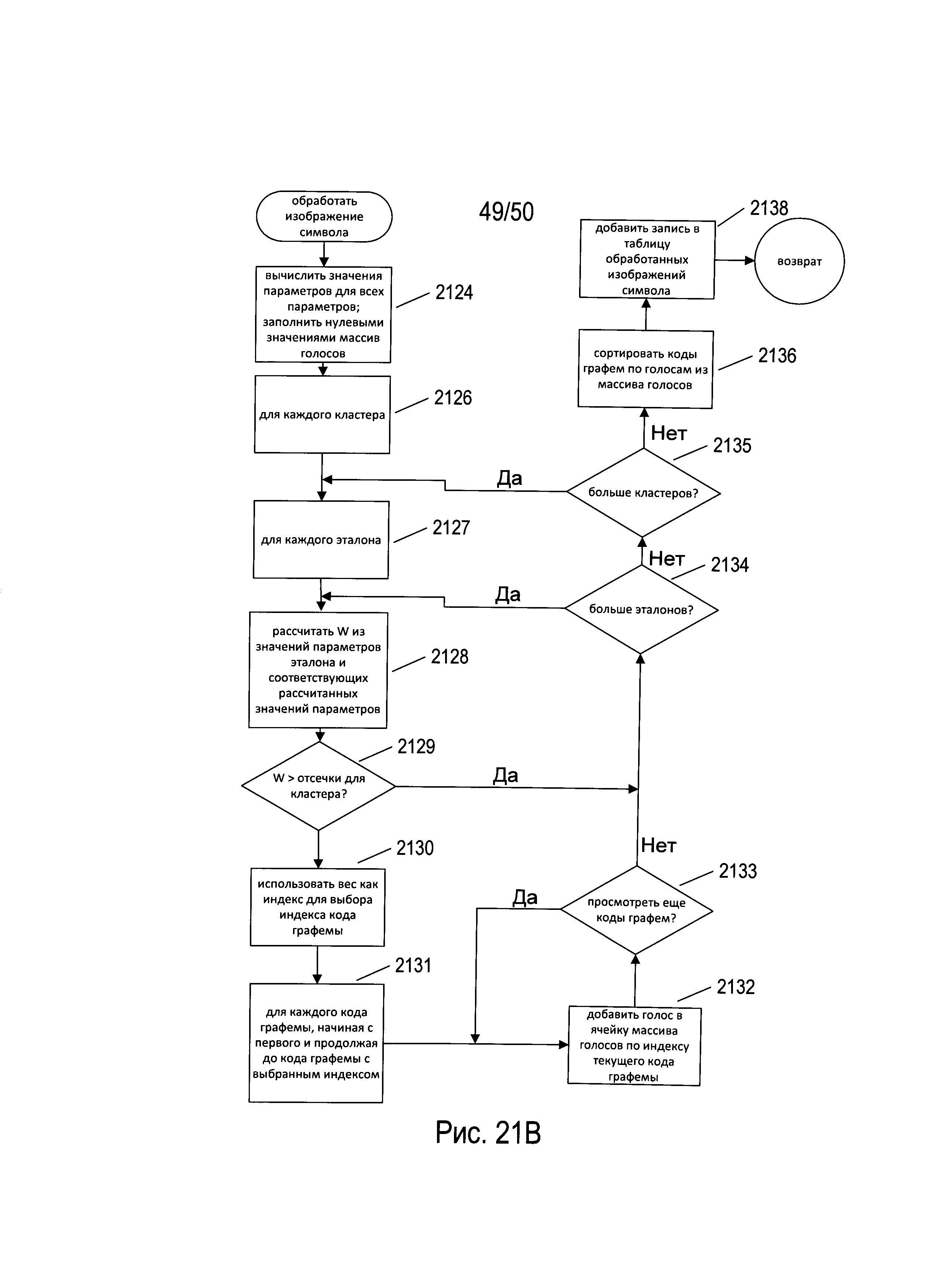 . Существует, конечно, штраф за начальную предварительную обработку, представленный коэффициентом «е» 1744. Однако, как указывалось выше, количество обрабатываемых изображений символов N по существу значительно меньше значения параметров Ρ или Р' для таких языков, как китайский, японский и корейский, и, следовательно, третий вариант осуществления процедуры «process» обеспечивает значительное снижение вычислительной сложности по сравнению как с первым так и со вторым вариантами осуществления, рассмотренными выше. Что более важно, в третьем варианте осуществления подпрограммы «process» гарантируется просмотр всех кластеров, пока не будет обнаружено некоторое максимальное количество потенциально соответствующих символов. Когда порог сходства для кластеров имеет относительно низкое значение, а порог сходства для эталонов имеет относительно высокое значение, существует очень большая вероятность, что список потенциально соответствующих символов, возвращаемый подпрограммой «process», будет включать в себя именно тот символ, который наиболее точно соответствует входному изображению символа.