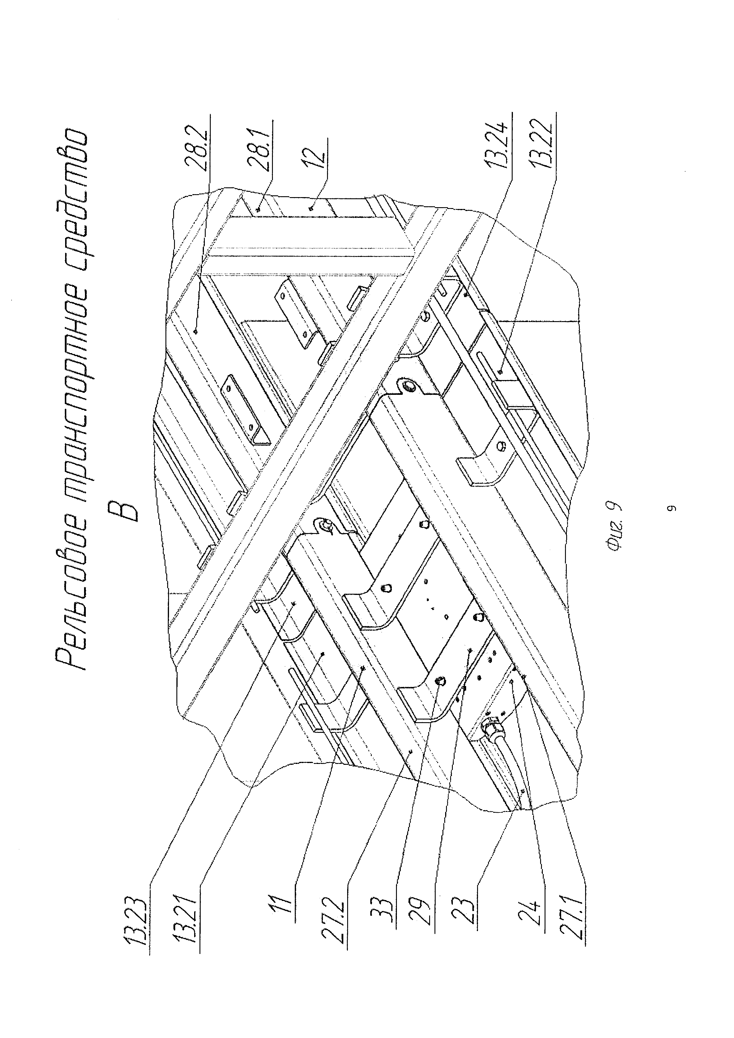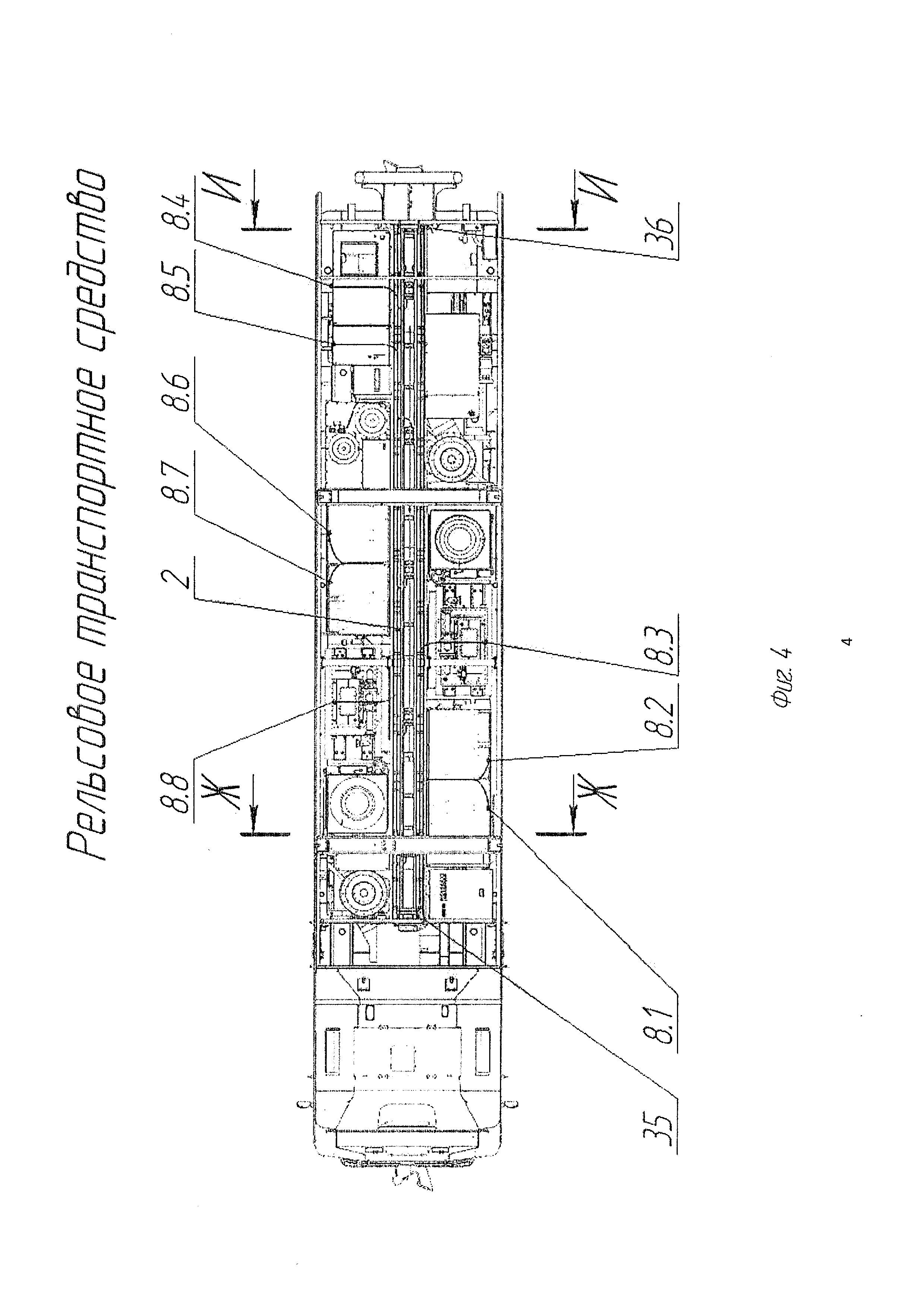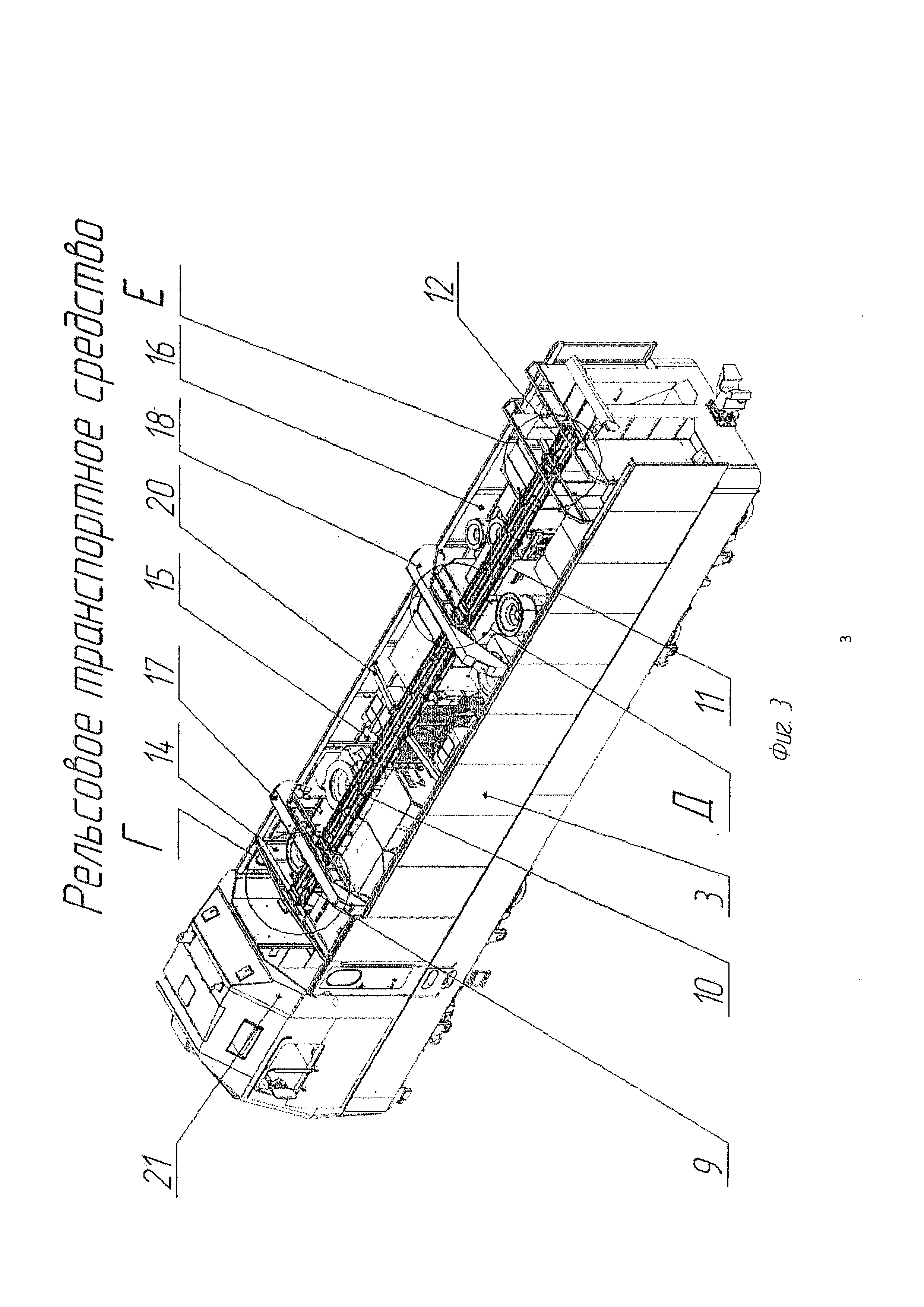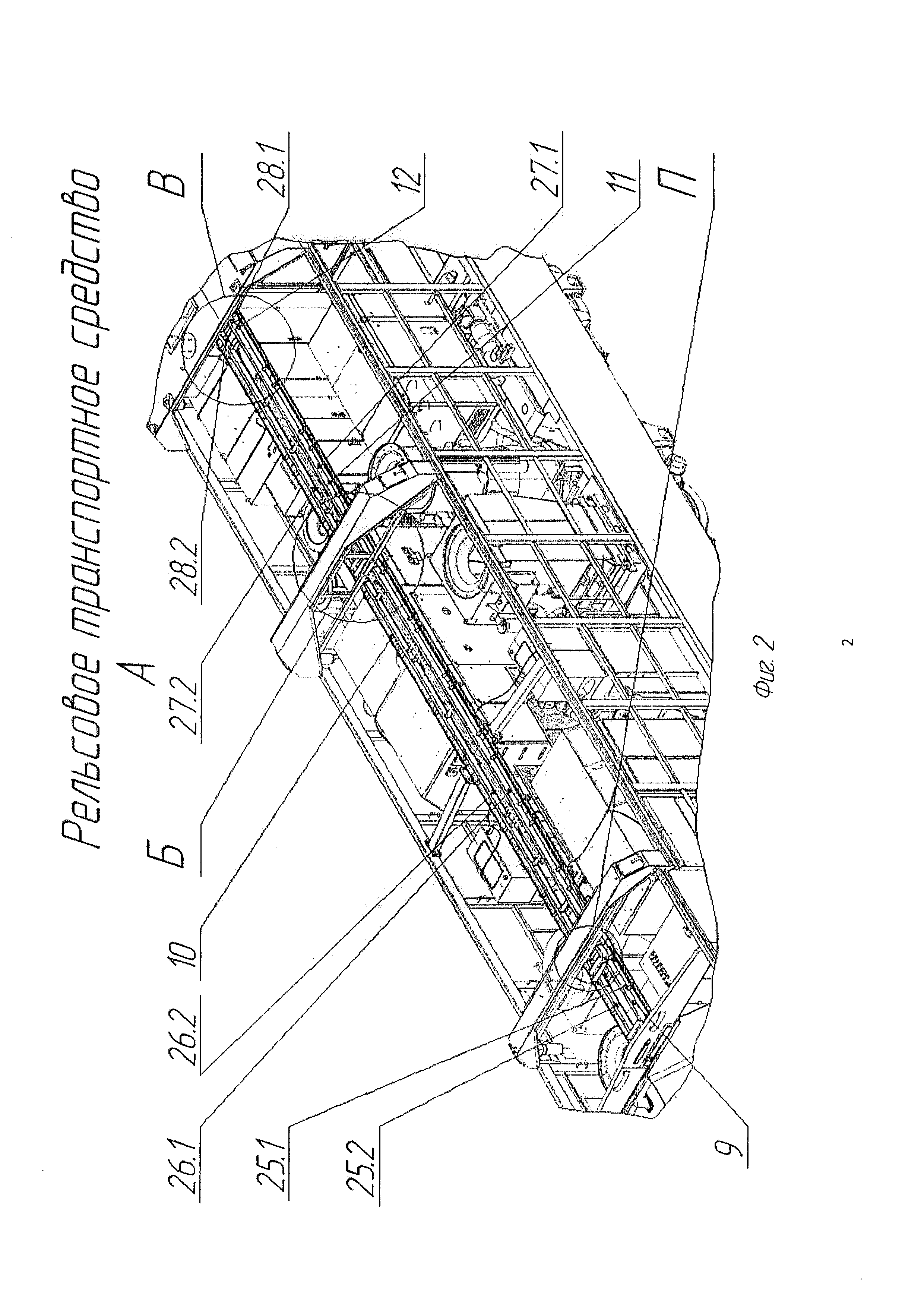 Изобретение относится к прокладке электрических кабелей и проводов на рельсовых транспортных средствах. Рельсовое транспортное средство содержит кабели низковольтных цепей с прокладкой их по кузову над проходом в машинном отделении в сдвоенной лотковой магистрали, закрепленной к кузову. При этом сдвоенная лотковая магистраль состоит из отдельных каркасов, установленных последовательно друг за другом с закрепленными на них монтажными лотками U-образного сечения. Сдвоенная лотковая магистраль выполнена в виде комплектного электротехнического изделия, отдельные каркасы которого объединены между собой шарнирно с образованием единой целой конструкции. Один из крайних каркасов оснащен двумя парами кронштейнов с отверстиями для навешивания и закрепления на сопряженные кронштейны кузова. Второй крайний каркас и промежуточные каркасы оснащены одной парой аналогичных кронштейнов, также размещенных с обеих сторон. Кронштейны каркасов в их опорной части оснащены с двух сторон адаптационными демпфирующими прокладками. Объединенная сдвоенная лотковая магистраль выполнена меньшей, чем машинное отделение, длиной. Технический результат заключается в обеспечении надежной защиты от механических повреждений и электромагнитных помех электрической проводки низковольтных цепей. 7 з.п. ф-лы, 20 ил.