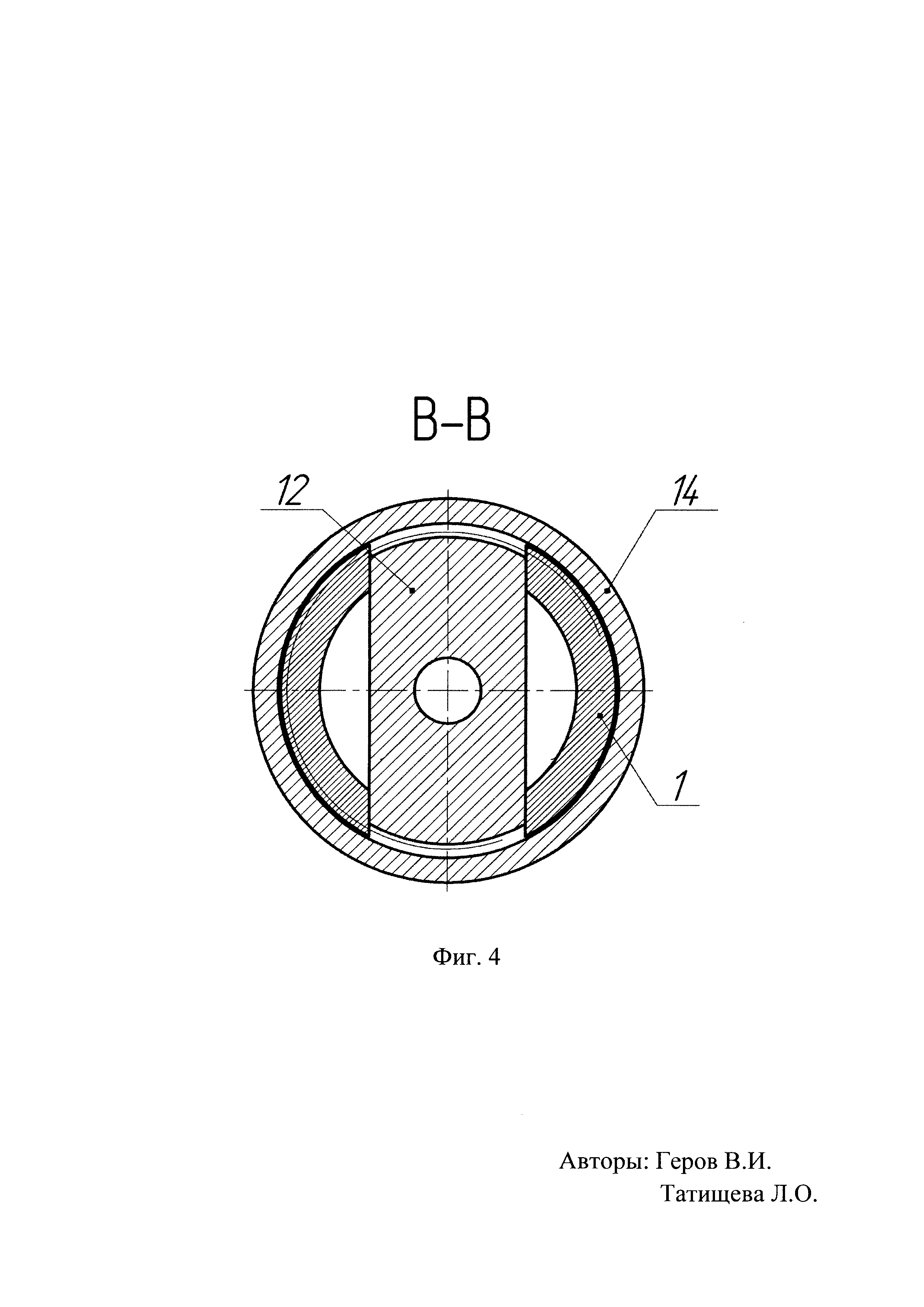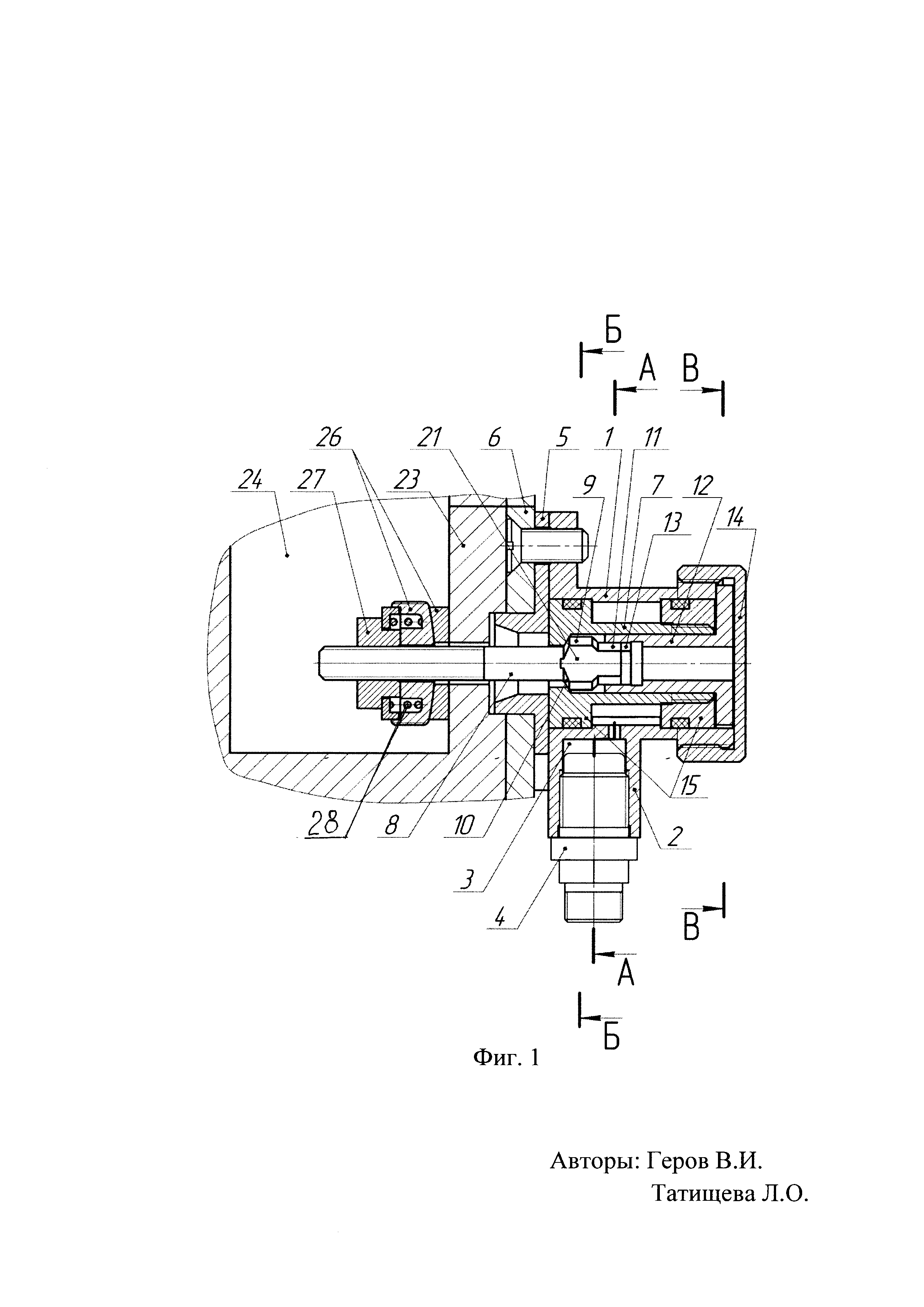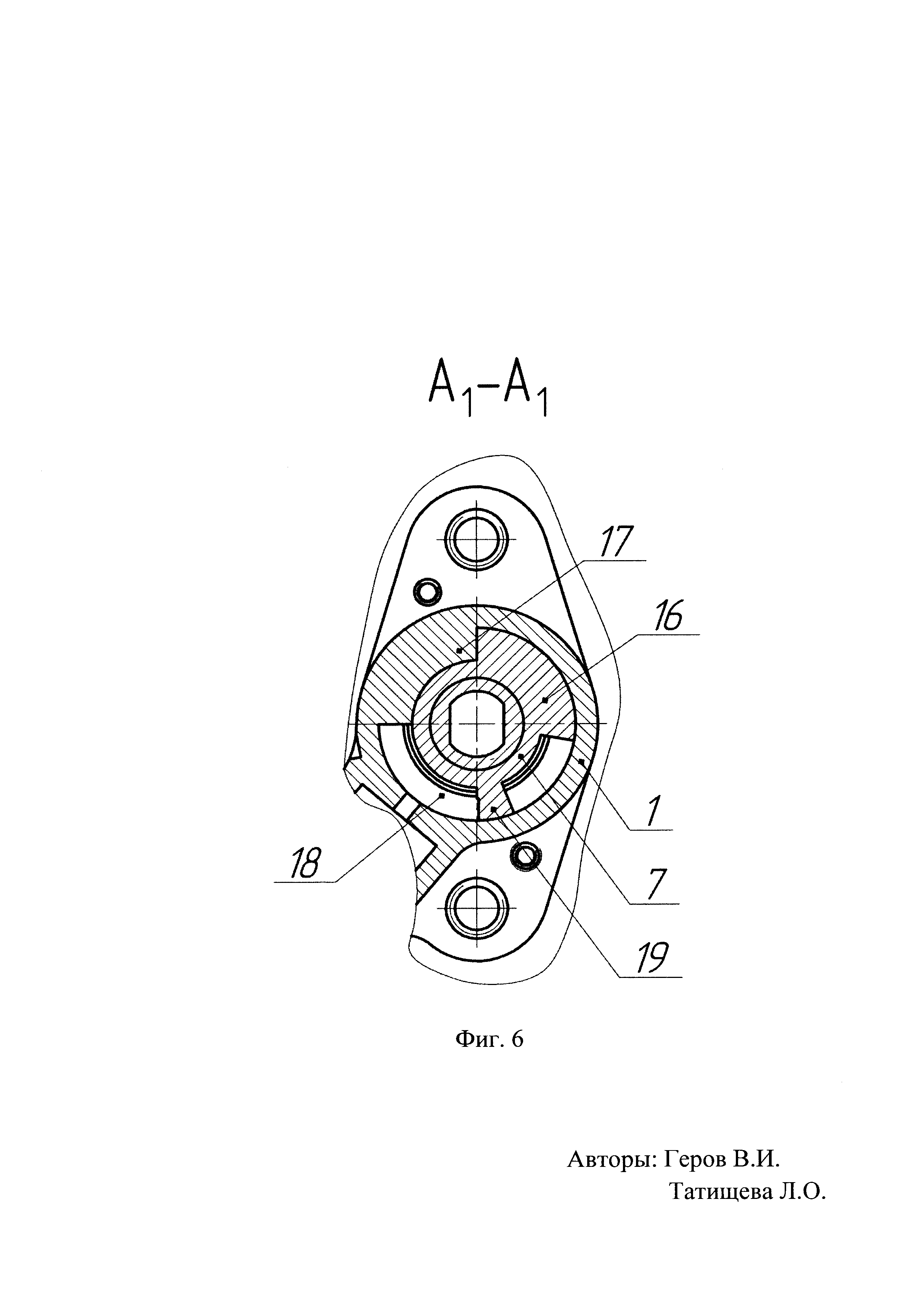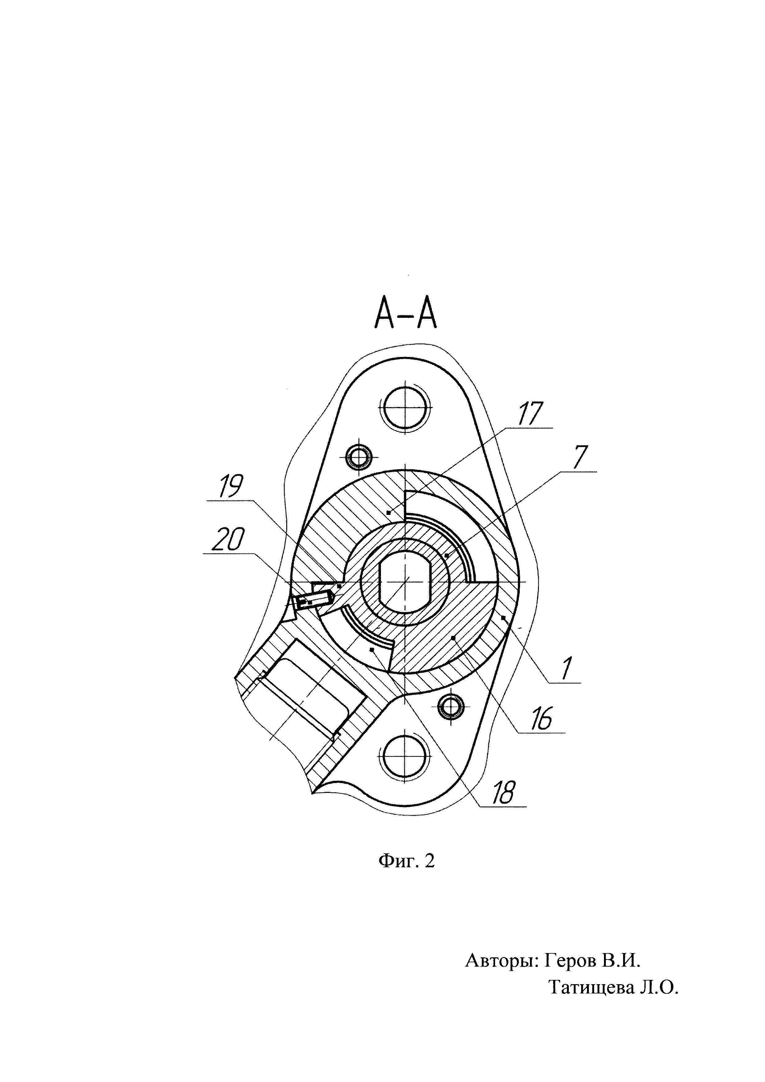 Устройство для фиксации отделяемых в процессе эксплуатации частей изделия от корпуса, содержащее связанные с отделяемыми частями изделия цилиндрический корпус, выполненный с торцовым фланцем, жестко связанным с корпусом изделия, соосно установленные в нем стяжную муфту, шток в виде резьбового стержня с фланцем, выполненным с переходящим в стержень участком в виде шарового пояса, и фигурным выступом, жестко связанным с указанным фланцем и расположенным соосно указанному штоку со стороны, противоположенной его резьбовому стержню, цилиндрический стержень, установленный соосно штоку и выполненный с фигурным гнездом, взаимодействующим с указанным фигурным выступом штока, крышку, расположенную соосно цилиндрическому корпусу со стороны, противоположенной резьбовому стержню штока, пиротехнический привод для перемещения стяжной муфты, образованный рабочей камерой, связанной газоходом с гнездом под пиротехнический источник давления, выполненным в корпусе устройства, и средство крепления устройства к отделяемым частям изделия, отличающееся тем, что в нем введены цилиндрические фланцы, расположенные по торцам стяжной муфты, жестко с ней связанные, контактирующие с внутренней поверхностью указанного цилиндрического корпуса, продольный упор, выполненный в виде кольцевого сектора, жестко связанного с корпусом по большему диаметру, контактирующего с внешней поверхностью муфты по меньшему диаметру, а торцевыми поверхностями с указанными цилиндрическими фланцами, продольное ребро, выполненное в виде кольцевого сектора, жестко связанного со стяжной муфтой по меньшему диаметру, контактирующее с внутренней поверхностью цилиндрического корпуса по большему диаметру, а торцевыми поверхностями с указанными цилиндрическими фланцами, а также ограничитель, жестко связанный со стяжной муфтой, расположенный внутри рабочей камеры пиротехнического привода и контактирующий с указанным продольным упором корпуса устройства, рабочая камера пиротехнического привода образована цилиндрическими поверхностями корпуса и стяжной муфты, торцевыми поверхностями указанных цилиндрических фланцев и продольными радиальными плоскостями указанного продольного упора корпуса и продольного ребра стяжной муфты, при этом две другие продольные плоскости упора и ребра расположены во взаимно перпендикулярных плоскостях, цилиндрический корпус устройства выполнен с торцовым фланцем, жестко связанным с корпусом изделия, стяжная муфта выполнена в виде полого стакана, дно которого с внутренней стороны выполнено коническим и взаимодействует с шаровым поясом резьбового стержня штока, при этом фланец штока выполнен с параллельными оси устройства и между собой лысками, расстояние между которыми не превосходит диаметра резьбового стержня штока, в дне стяжной муфты выполнен паз перпендикулярно плоскости указанных лысок штока, ширина которого равна диаметру резьбового стержня штока, цилиндрический стержень расположен внутри стяжной муфты и жестко связан с цилиндрическим корпусом устройства посредством указанной крышки, при этом радиальный упор стяжной муфты выполнен с возможностью взаимодействия с радиальным ребром цилиндрического корпуса, а паз в стяжной муфте при этом с возможностью расположения напротив выступающих частей фланца шт