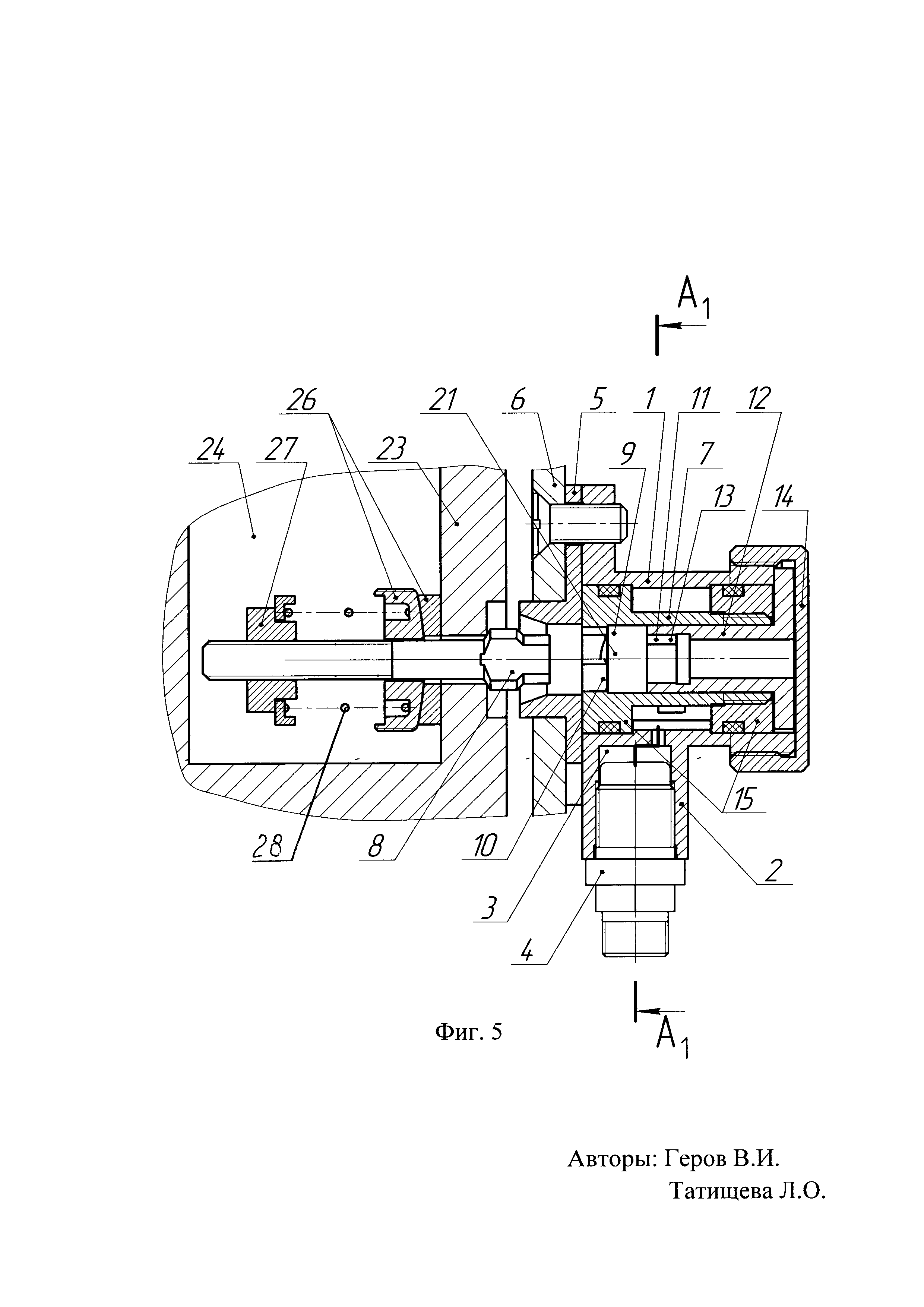 Данное изобретение относится к области машиностроения и может быть использовано при проектировании, например, космических аппаратов (КА), оснащенных отделяемыми элементами. Из описания к патенту РФ №2075874 от 07.06.1994 г известно устройство для фиксации отделяемых в процессе эксплуатации частей изделия от корпуса. Данное устройство содержит связанные с отделяемыми частями изделия цилиндрический корпус, соосно установленные в нем обойму, выполненную в виде полого цилиндра с торцовым фланцем, жестко связанным с указанным цилиндрическим корпусом и взаимодействующим с корпусом изделия, выполненную со сквозными радиальными пазами прямоугольного профиля и' фиксирующими элементами, подвижно установленными в указанных радиальных пазах обоймы с возможностью взаимодействия с внутренней поверхностью стяжной муфты. Данное устройство содержит также шток в виде резьбового стержня с фланцем, выполненным с переходящим в стержень участком в виде шарового пояса для взаимодействия с фиксирующими элементами, установленный внутри обоймы с возможностью осевого перемещения, пиротехнический привод для перемещения стяжной муфты относительно обоймы, а также средство крепления устройства к отделяемым частям изделия, выполненное в виде шайбы, установленной на резьбовом стержне указанного штока, гайки, закрепленной на этом стержне с опорой на указанную шайбу и подпружиненной относительно нее. Данное устройство имеет существенный эксплуатационный недостаток, а именно значительные размеры, что определяется необходимостью перемещения стяжной муфты относительно обоймы в осевом направлении и фиксирующих элементов в радиальном направлении при срабатывании устройства. Известно устройство для фиксации отделяемых в процессе эксплуатации частей изделия от корпуса по патенту РФ №2304236 от 23.03.2006 г., принятое за прототип. Данное устройство содержит связанные с отделяемыми частями изделия цилиндрический корпус, соосно установленные в нем стяжную муфту, выполненную в виде полого цилиндра, обойму в виде полого цилиндра с торцовым фланцем, жестко связанным с указанным цилиндрическим корпусом и взаимодействующим с корпусом изделия, сквозными радиальными,пазами прямоугольного профиля и фиксирующими элементами, подвижно установленными в радиальных пазах обоймы с возможностью взаимодействия с внутренней поверхностью стяжной муфты, шток в виде резьбового стержня с фланцем, выполненным с переходящим в стержень участком в виде шарового пояса для взаимодействия с фиксирующими элементами, и фигурным выступом, жестко связанным с указанным фланцем и расположенным соосно указанному штоку со стороны, противоположенной его резьбовому стержню. Устройство содержит также крышку, расположенную соосно цилиндрическому корпусу со стороны, противоположенной фланцу обоймы, и цилиндрический стержень, установленный внутри указанной обоймы соосно штоку и выполненный с фигурным гнездом, взаимодействующим с указанным фигурным выступом штока, и с фигурным хвостовиком под ключ, расположенным за торцом обоймы с противоположенной штоку стороны и взаимодействующим с указанной крышкой, пиротехнический привод для перемещения стяжной муфты относительно обоймы, образованный рабочей камерой, связанной газоходом с гнездом под пиротехнический источник давлен