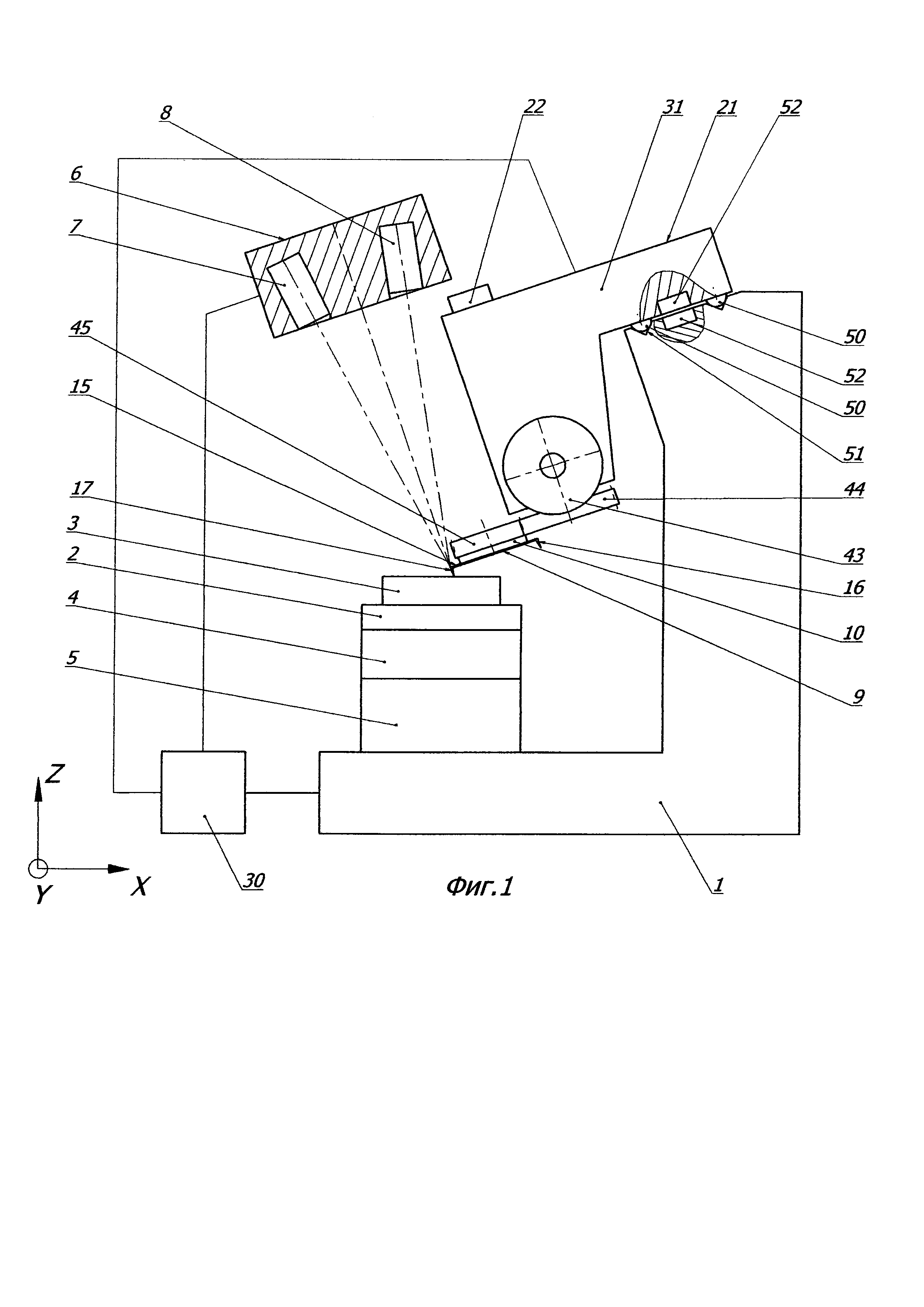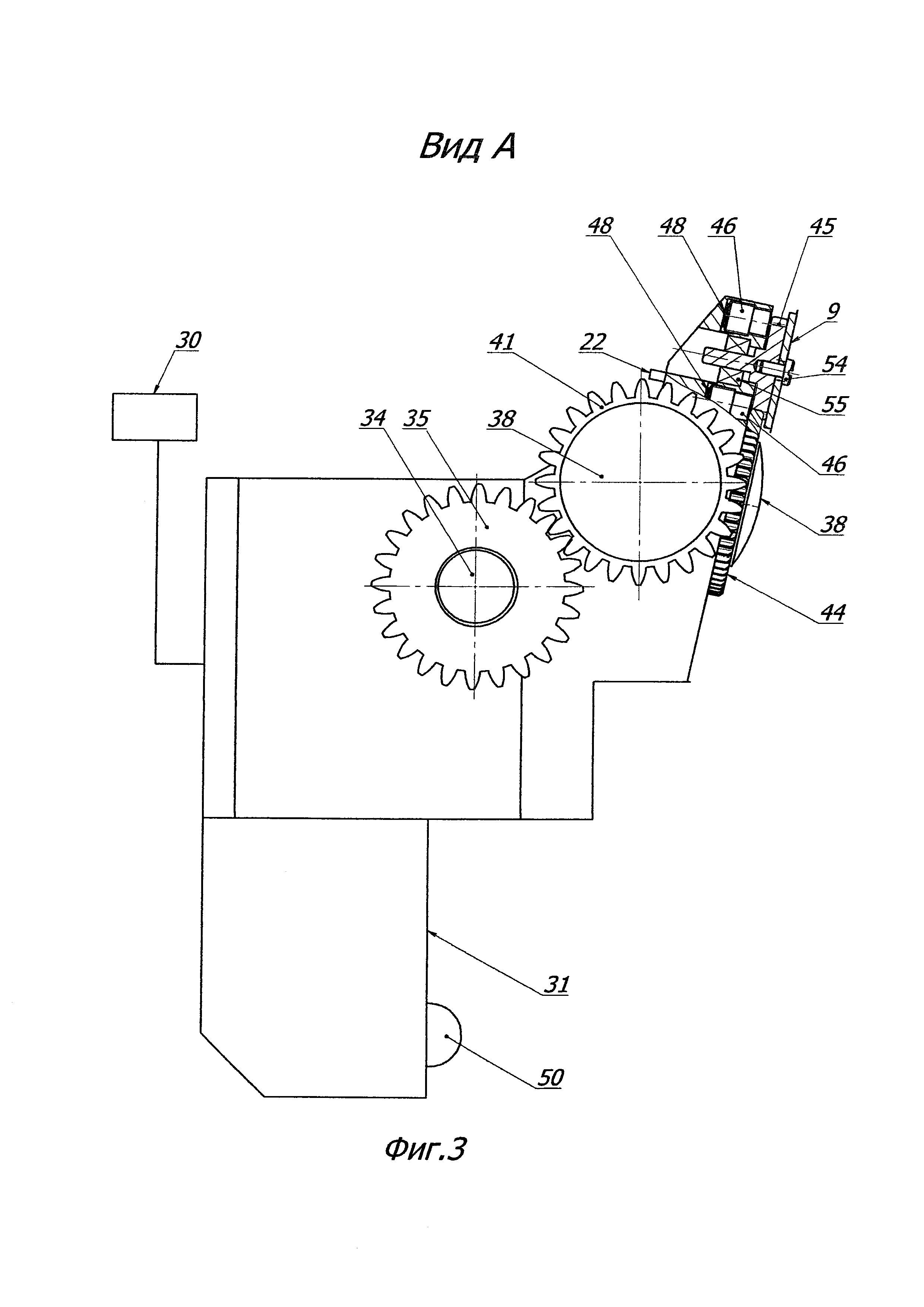 Сканирующий зондовый микроскоп с устройством для функционирования многозондового датчика относится к измерительной технике и может быть использован для исследования образцов в зондовых режимах. Известен сканирующий зондовый микроскоп с устройством для функционирования многозондового датчика, включающий платформу, держатель образца с образцом, установленные на сканирующем устройстве, сопряженном с блоком сближения, установленном на платформе, систему регистрации, состоящую из источника излучения и фотоприемника, многозондовый датчик контурного типа, содержащий основание с гибкими консолями, остриями, сопряженный с приводом вращения, включающим пьезомодуль, соединенным с корпусом, а также блок управления (Патент RU 2538412). Это устройство выбрано в качестве прототипа предложенного решения. Недостаток этого устройства заключается в том, что в нем затруднен процесс замены многозондовых датчиков и образцов. Это снижает точность установки многозондовых датчиков контурного типа и образцов при их замене, что приводит к недостаточно точному выбору зон измерения и снижает функциональные возможности устройства. Технический результат изобретения заключается в упрощении замены многозондовых датчиков и образцов, соответственн более точной установки многозондовых датчиков контурного типа и образцов при их замене. Это приводит к более точному выбору зон измерений и расширению функциональных возможностей. Указанный технический результат достигается тем, что в сканирующем зондовом микроскопе с устройством для функционирования многозондового датчика, включающий платформу, держатель образца с образцом, установленные на сканирующем устройстве, сопряженном с блоком сближения, установленном на платформе, систему регистрации, состоящую из источника излучения и фотоприемника, многозондовый датчик контурного типа, содержащий основание с гибкими консолями, остриями, сопряженный с приводом вращения, включающим пьезомодуль, соединенным с корпусом, а также блок управления привод вращения соединен с платформой с возможностью размыкания с ней и ориентированной установки на нее. Существует вариант, в котором привод вращения, включает корпус, в котором установлен двигатель с первым цилиндрическим зубчатым колесом, сопряженным со вторым цилиндрическим зубчатым колесом, соосно соединенным с торцевым зубчатым колесом, сопряженным с третьим цилиндрическим зубчатым колесом, сопряженным с четвертым цилиндрическим зубчатым колесом, на котором закреплено основание многозондового датчика контурного типа. Существует вариант, в котором, по меньшей мере, два прижима, сопряженных с четвертым цилиндрическим зубчатым колесом. Существует вариант, в котором пьезомодуль имеет возможность включения синхронно с включением двигателя. На фиг. 1 изображена схема сканирующего зондового микроскопа с устройством для функционирования многозондового датчика в общем виде. На фиг. 2 изображен вариант исполнения привода вращения. На фиг. 3 изображен вид А на привод вращения. На фиг. 4 изображен вариант выполнения прижима. Сканирующий зондовый микроскоп с устройством для функционирования многозондового датчика включает платформу 1 (фиг. 1), а также держатель образца 2 с образцом 3, установленные на сканирующем устройстве 4. В качестве сканирующего 