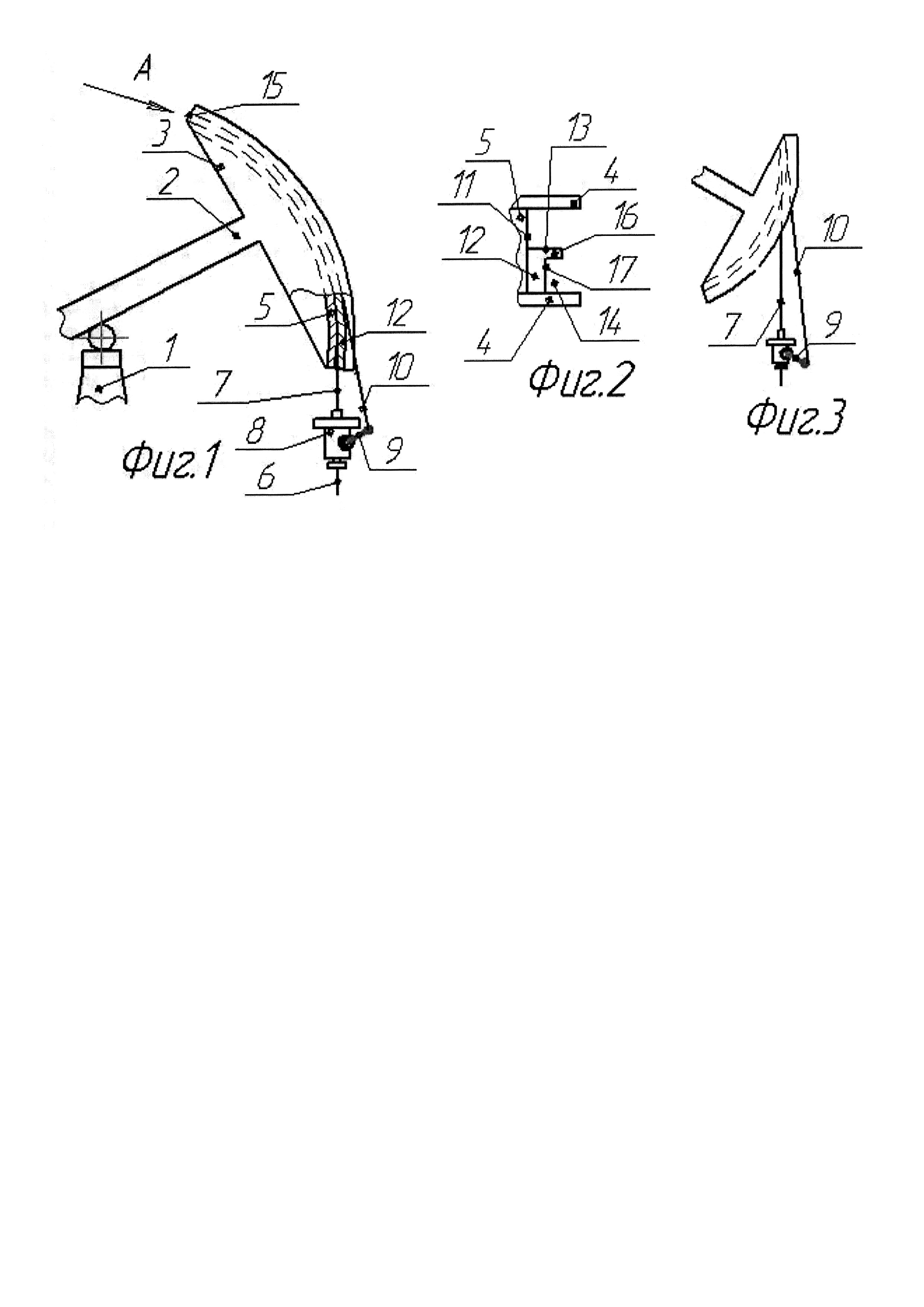 Изобретение относится к нефтегазодобывающей промышленности и предназначено для использования в штанговых насосных установках для поворота колонны насосных штанг. Известна головка балансира [1], состоящая из двух щек с пазами и дуги с выступами, изготовленных из листа плазменной резкой, а также двух втулок, при этом при сборке головки балансира выступы дуги вставляются в пазы каждой из двух щек. Известен штанговращатель [2], содержащий корпус с установленным внутри механизмом поворота колонны штанг в виде червячной передачи, связанной с обгонной муфтой, узел соединения с полированным штоком колонны насосных штанг, узел соединения корпуса с траверсой балансира станка-качалки и рычаг, причем узел соединения с полированным штоком выполнен в виде блока сухарей, содержащего сухари для зажима полированного штока, установленные в упорной втулке, контактирующей с верхним торцом опорного вала, насаженного на упорный подшипник, при этом опорный вал нижним концом соединен с червячным колесом с помощью шлицевого соединения, рычаг выполнен L-образной формы, одним концом соединен с обоймой ведущего звена обгонной муфты, а другим концом, снабженным грузом, соединен тросом со стойкой балансира станка-качалки, а для подвески штанговращателя к траверсе балансира корпус снабжен двумя кронштейнами. Данный штанговращатель имеет сложную конструкцию. Наиболее близким к заявляемому является скважинная штанговая насосная установка [3], содержащая станок - качалку, балансир, головку балансира, состоящую из двух щек и дуги с выпуклыми цилиндрическими стенками, колонну штанг, подвешенную к головке балансира посредством троса, и штанговращатель с рукояткой, к свободному концу которой соединен нижний конец гибкого элемента. В данной установке кронштейн для соединения гибкого элемента выступает от балансира на значительное расстояние. Из-за этого прототип имеет ограниченный диапазон применения, так как такую установку невозможно применять при одновременно-раздельной эксплуатации скважин. Задачей изобретения является уменьшение габаритных размеров. Поставленная задача решается тем, что в скважинной штанговой насосной установке, содержащей станок - качалку, балансир, головку балансира, состоящую из двух щек и дуги с выпуклыми цилиндрическими стенками, колонну штанг, подвешенную к головке балансира посредством троса, и штанговращатель с рукояткой, к свободному концу которой соединен нижний конец гибкого элемента, новым является то, что к выпуклой цилиндрической стенке дуги головки балансира рядом с одной щекой прикреплена вогнутой стенкой дополнительная дуга, в которой между ее свободной торцевой стенкой и щекой выполнена проточка, причем гибкий элемент проходит по полости проточки и верхним концом соединен к верхнему концу дополнительной дуги. На фиг. 1 изображена скважинная штанговая насосная установка с частичным разрезом головки балансира; на фиг. 2 изображен вид А фиг. 1; на фиг. 3 - вид на установку в нижнем положении балансира. Скважинная штанговая насосная установка содержит станок - качалку 1, балансир 2, головку 3 балансира, состоящую из двух щек 4 и дуги 5 с выпуклыми цилиндрическими стенками. Также установка содержит колонну штанг 6, подвешенную к головке 3 балансира посредством троса 7, и штанговращатель 8 с рукояткой 9, к свобод