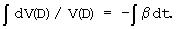 (30) Но dD можно представить так: dD=V(D)dt. (31) С учетом (31) выражение (30) можно представить так dV(D)/V(D)=-β dt.