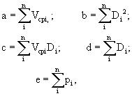 формулам: VD1=(ab-cd)/(be-d2), (35) β =(ad-ce)/(be-d2), (36) где i изменяется от i=nнач; n=(nкон-1); pi - весовой коэффициент,