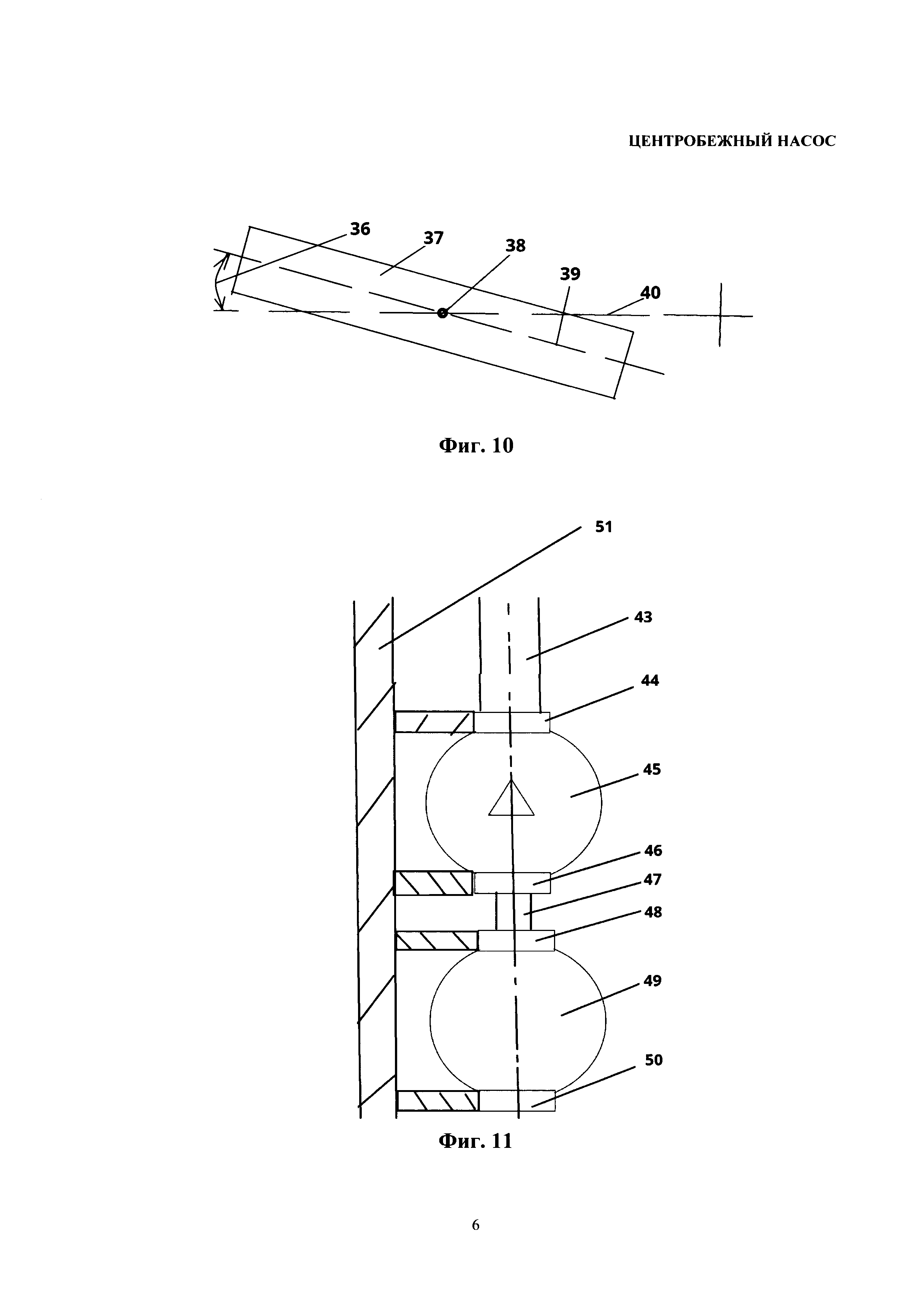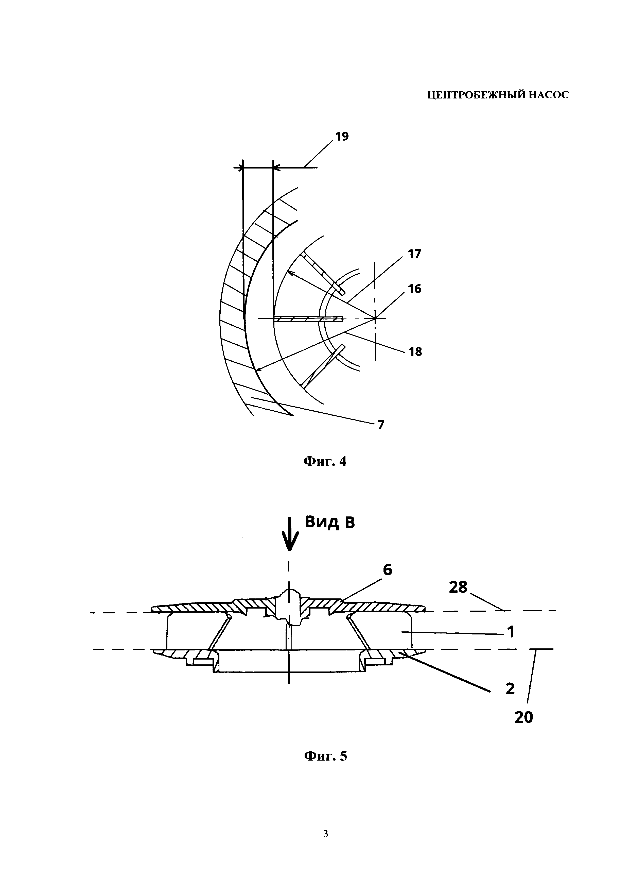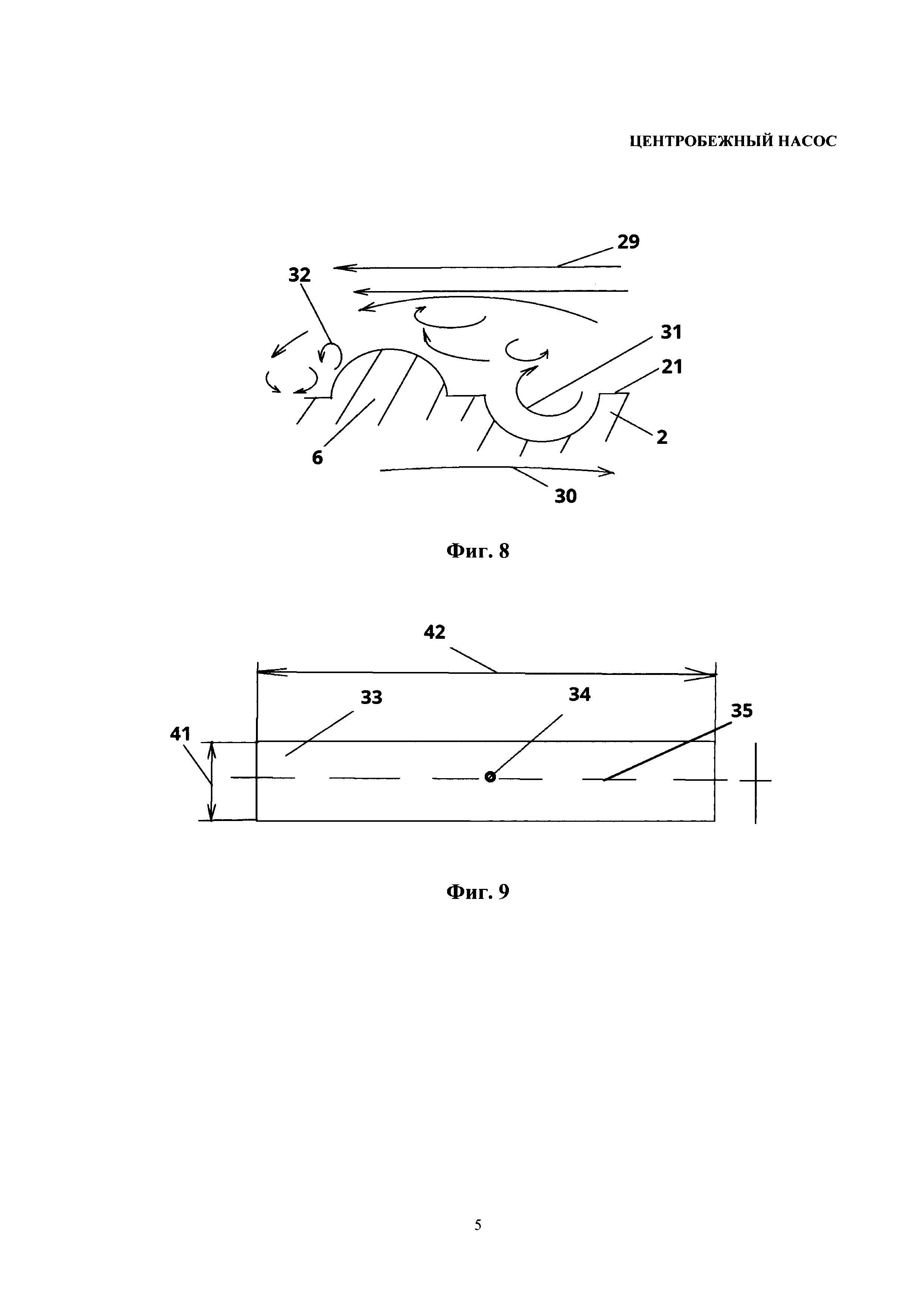 Изобретение относится к машиностроению и может быть использовано при производстве центробежных насосов, в частности погружных насосов для перекачки воды и жидкого топлива. Центробежный насос содержит корпус, направляющий аппарат, жестко соединенный с корпусом, рабочее колесо, закрепленное на валу. Рабочее колесо содержит диск с лопатками и прижимное устройство с центральным входным отверстием. Граница поперечного сечения, проходящего через вышеуказанный диск, включает участок, который содержит чередующиеся по длине участка выступы и углубления. Протяженность участка составляет 0, 25 от периметра границы поперечного сечения диска. Количество выступов равно количеству углублений и составляет от 3 до 9. Диаметр диска составляет величину 50 мм, внутренний диаметр корпуса составляет 56 мм. Колесо содержит восемь лопаток. Насос выполнен с возможностью работы на частоте вращения 6000 об/мин. Изобретение направлено на снижение уровня вибрации при работе насоса путем ухода от резонанса за счет внесения изменения в колебательный гидродинамический режим работы насоса при воздействии движущейся жидкости на элементы рабочего колеса. 4 з.п. ф-лы, 6 табл., 11 ил.