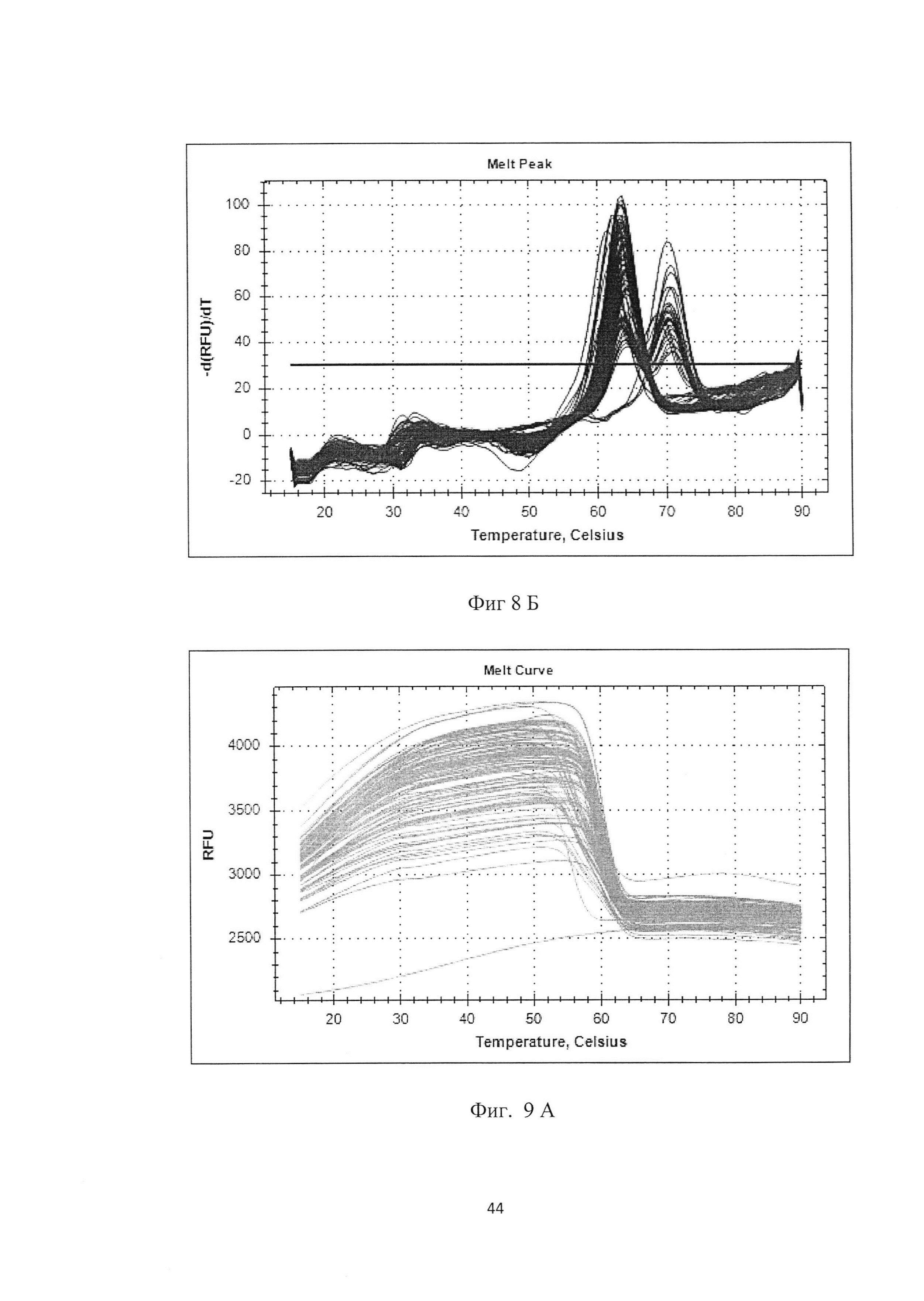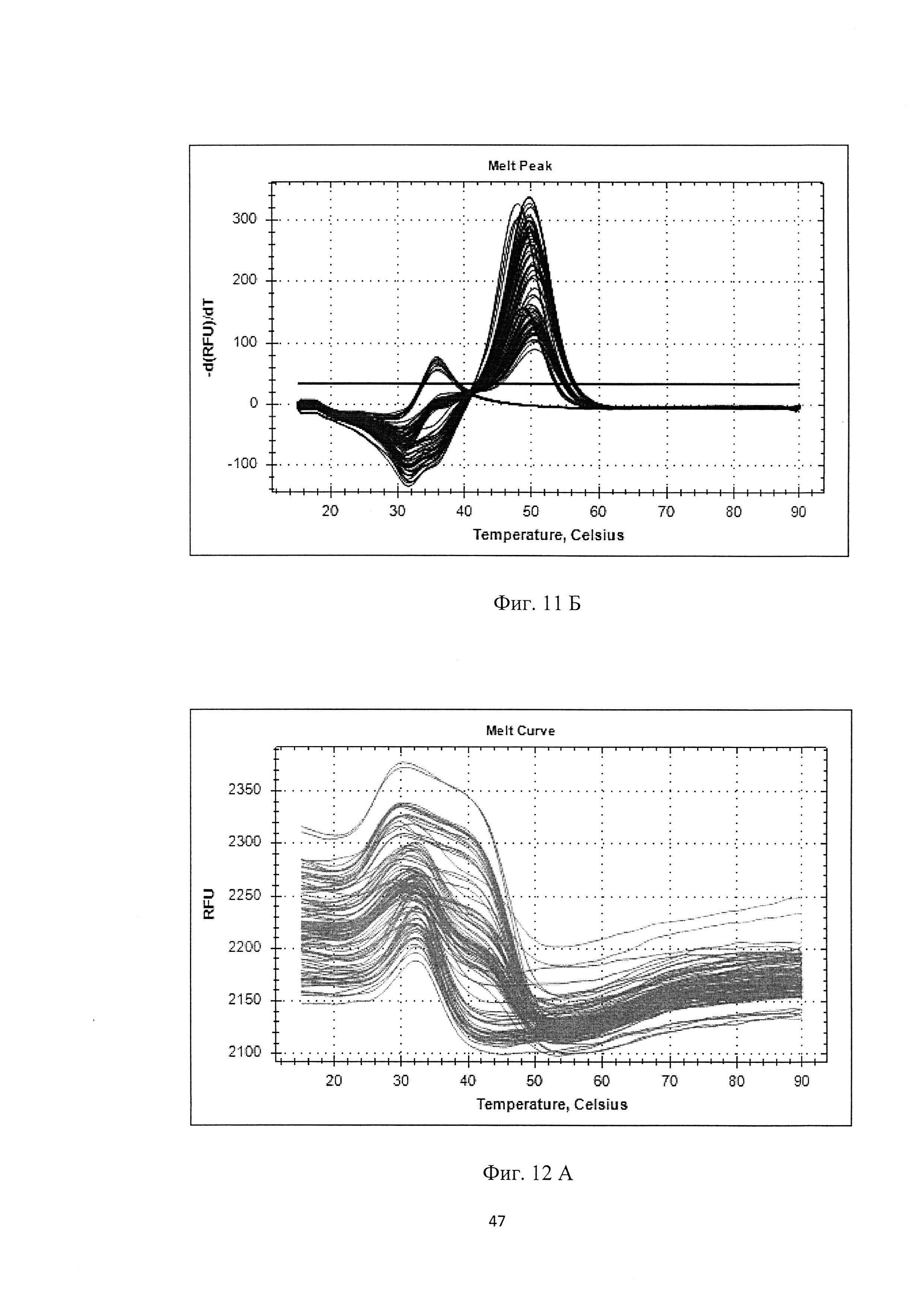 Изобретение относится к области медицины, в частности к неврологии и молекулярной биологии, и может быть использовано для выявления полиморфизмов в генах LINGO1, LINGO2 и SLC1A2, ассоциациированных с мультифакториальным заболеванием - эссенциальным тремором посредством проведения медико-генетического анализа одновременно нескольких однонуклеотидных полиморфизмов (SNP) в этих генах. Эссенциальный тремор является наиболее распространенным двигательным заболеванием нервной системы, нейродегенеративная природа которого доказывается рядом последних работ. Распространенность заболевания по некоторым данным может достигать 13%. Эссенциальный тремор представляет собой неуклонно прогрессирующее заболевание, приводящее к значительным трудностям в профессиональной деятельности, а затем и в самообслуживании. На молекулярно-генетическом уровне показана высокая гетерогенность этого заболевания, однако до настоящего времени, несмотря на бурное развитие молекулярно-генетических технологий, генетическая структура эссенциального тремора комплексно не определена и непосредственная ДНК-диагностика болезни пока не проводится. Для эссенциального тремора характерна длительная доклиническая стадия, на которой возможно проведение профилактических мероприятий, предотвращающих их развитие. В свете вышеперечисленного диагностика предрасположенности к развитию такого нейродегенеративного заболевания имеет социальную значимость. На сегодняшний день не выявлено патогенных мутаций приводящих к эссенциальному тремору, считается что комплекс генетических факторов риска приводит к развитию заболевания. При отборе генетических факторов риска развития эссенциального тремора, мы основывались на анализе результатов работ по выявлению ассоциаций между генетическими вариантами полиморфизмов и развитием заболевания. Так мета-анализ двух исследований полногеномного скрининга ассоциаций (genome-wide association study, GWAS), позволяющих осуществлять тотальный скрининг вариабельных однонуклеотидных участков генома, выявил высокую ассоциацию полиморфизмов в генах SLC1A2 (rs3794087) и LINGO1 (rs9652490), а также в меньшей мере полиморфизма rs11856808 в гене LINGO1 с эссенциальным тремором (Kuhlenbaumer G., Hopflner F. et al. Genetics of essential tremor // Neurology 2014; 18: 1000-1007). В целом ряде работ по изучению ассоциации полиморфизма rs9652490 в гене LINGO1 с эссенциальным тремором в различных европейских популяциях было показано статистически значимое увеличение риска развития заболевания связанное с наличием этого поиморфизма (Thier S, Lorenz D, Nothnagel M, et al. LINGO1 polymorphisms are associated with essential tremor in Europeans. Mov Disord 2010; 25: 709-715; Vilarino-Guell C, Ross OA, Wider C, et al. LINGO1 rs9652490 is associated with essential tremor and Parkinson disease. Parkinsonism Relat Disord2010; 16: 109-111; Clark LN, Park N, Kisselev S, Rios E, Lee JH, Louis ED. Replication of the LINGO1 gene association with essential tremor in a North American population. Eur J Hum Genet 2010; 18: 838-843). Надо отметить, что в китайской популяции не было вывлено достоверной ассоциации полиморфизма rs9652490 в гене LINGO1 с эссенциальным тремором (Zuo X, Jiang Н, Guo JF, et al. Screening for two SNPs of LINGO1 gene in patients with essential tremor or sporadic Parkinson's disease in Chinese population. Neurosci Lett 2010; 481: 69-72), что подтверждает гипотезу существования популяционно-специфичных различий и усиливает значимость расширенных популяционных исследований. Мультицентровое исследование популяций Северной Америки помимо ассоциации выше перечисленных полиморфизмов с риском развития эссенциальн