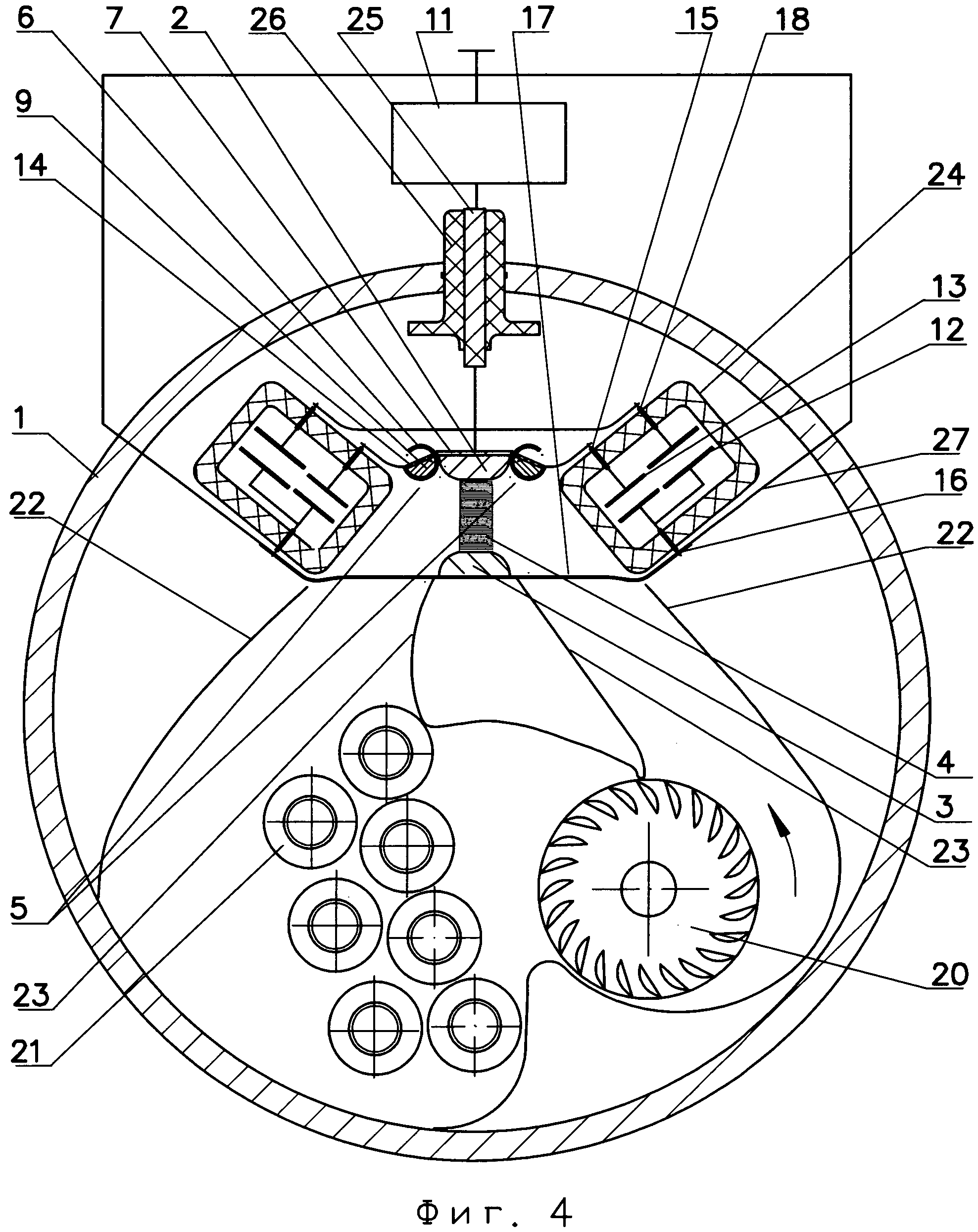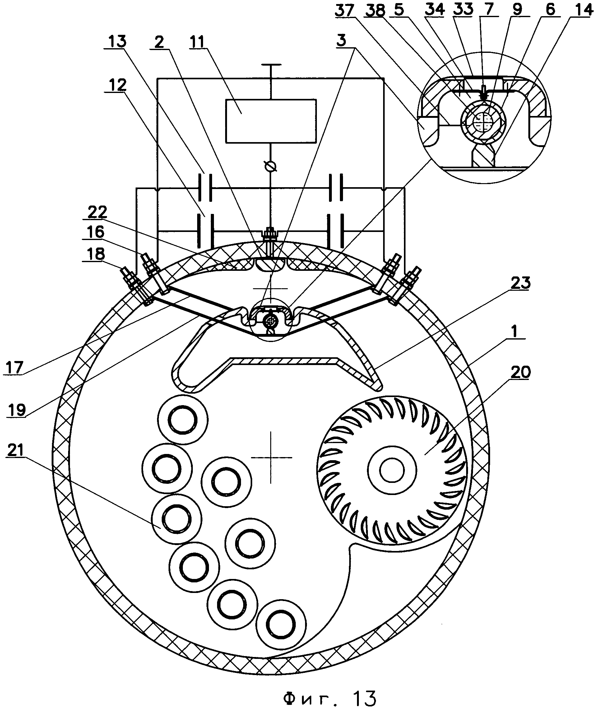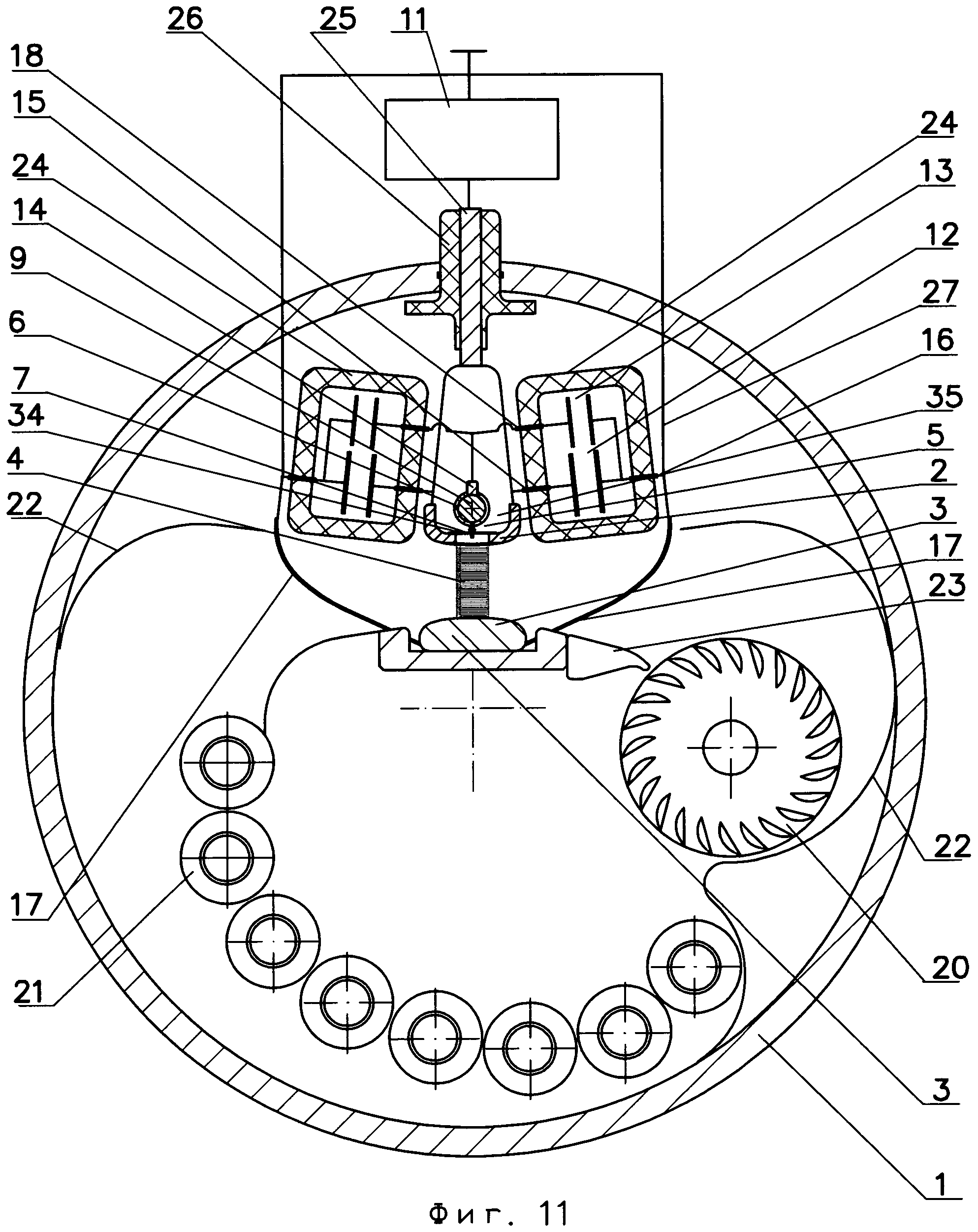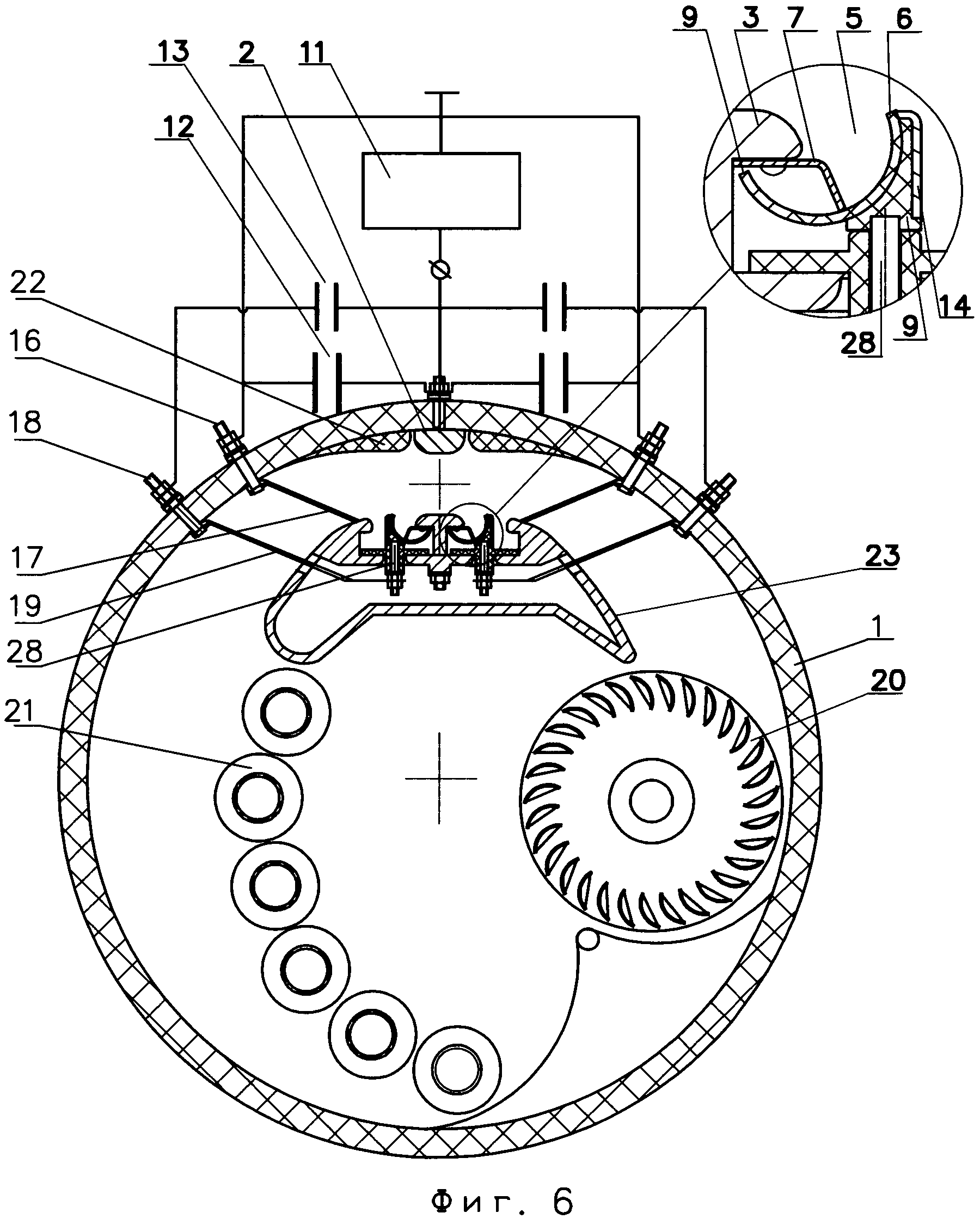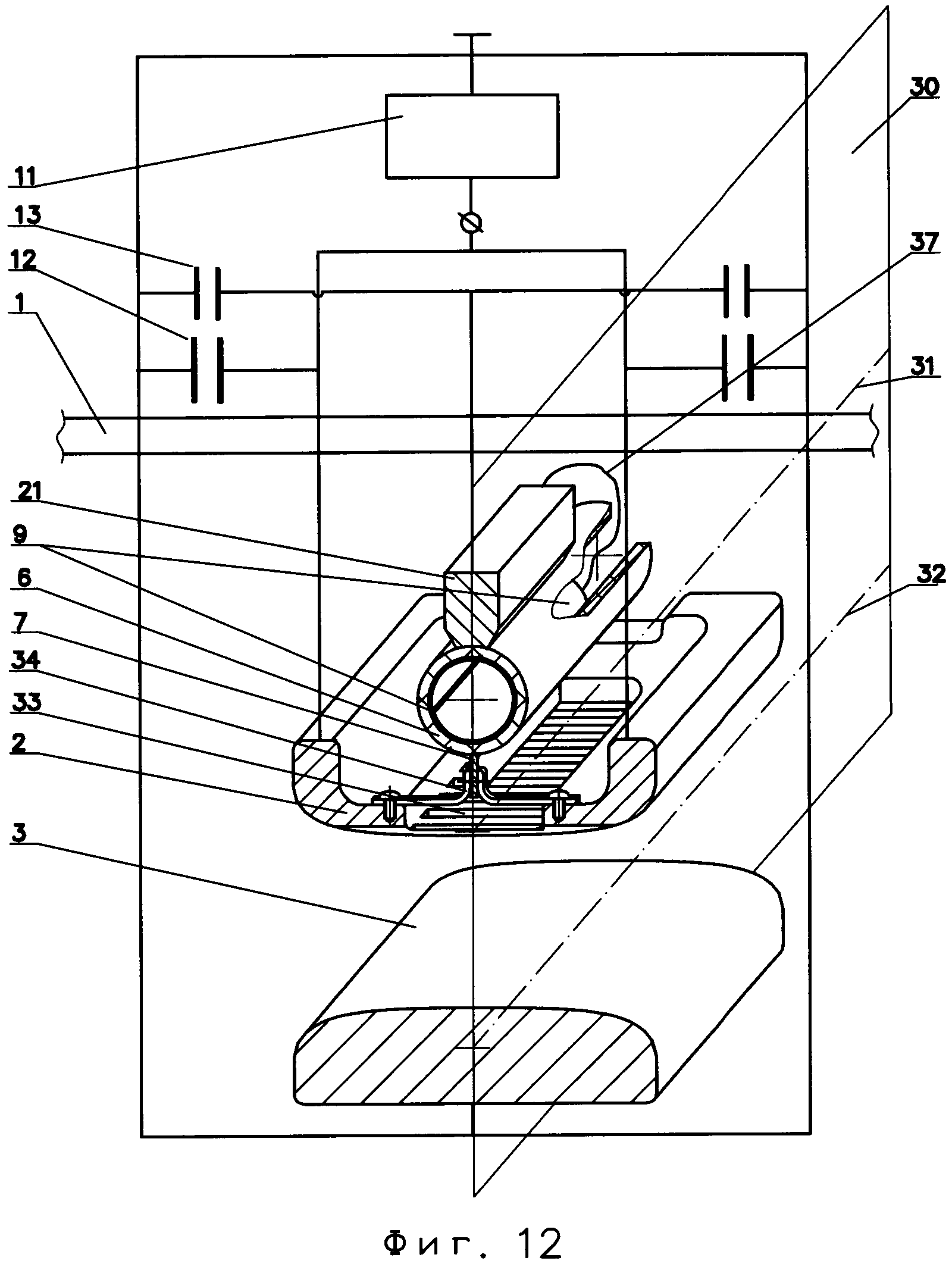 1. Разрядная система эксимерного лазера, включающая в себя расположенные в лазерной камере (1) протяженные первый электрод (2), установленный со стороны стенки лазерной камеры (1), второй электрод (3), зону объемного разряда (4) между первым и вторым электродами (2), (3), продольные оси которых параллельны друг другу, по меньшей мере, один блок предыонизации (5), содержащий 2. Устройство по п. 1, в котором система формирования CP установлена так, чтобы образующие цилиндрической поверхности изогнутой диэлектрической пластины (6) были параллельны продольным осям первого и второго электродов (2), (3). 3. Устройство по п. 1, в котором, лицевая и обратная стороны (8), (10) изогнутой диэлектрической пластины (6) являются цилиндрическими. 4. Устройство по п. 1, в котором, по меньшей мере, часть поверхности изогнутой диэлектрической пластины (6), совмещенная с поверхностью инициирующего электрода (9), является кругло- цилиндрической. 5. Устройство по п. 1, в котором изогнутая диэлектрическая пластина (6) выполнена в виде протяженной части цилиндрической тонкостенной диэлектрической трубки, заключенной между двумя продольными сечениями трубки, параллельными ее продольной оси. 6. Устройство по п. 1, в котором два идентичных блока предыонизации (5) расположены по бокам либо первого электрода (20), выполненного сплошным, либо второго электрода (3), выполненного сплошным. 7. Устройство по п. 1, в котором лицевая поверхность (8) изогнутой диэлектрической пластины (6) выпуклая. 8. Устройство по п. 1, в котором в качестве материала изогнутой диэлектрической пластины (6) используется либо сапфир, либо керамика, в частности, Al2O3. 9. Устройство по п. 1, в котором инициирующий электрод (9) выполнен охлаждаемым либо потоком газа, либо жидким теплоносителем. 10. Устройство по п. 1, в котором каждая точка зоны разряда (4) между первым и вторым электродами (2), (3) находится в зоне прямой видимости, по меньшей мере, части поверхностности изогнутой диэлектрической пластины (6), используемой для формирования СР. 11. Устройство по п. 1, в котором лицевая поверхность (8) изогнутой диэлектрической пластины (6) вогнутая. 12. Устройство по п. 1, в котором часть изогнутой диэлектрической пластины (6), не используемая для формирования CP, расположена с обратной стороны либо первого электрода (2), либо второго электрода (3). 13. Устройство по п. 1, в котором изогнутая диэлектрическая пластина (6) выполнена в виде цилиндрической тонкостенной диэлектрической трубки с продольным разрезом (29). 14. Устройство по п. 1, в котором изогнутая диэлектрическая пластина (6) выполнена в виде цилиндрической тонкостенной диэлектрической трубки с продольным разрезом (29), инициирующий электрод (9) размещен внутри диэлектрической трубки, и дополнительный электрод (14) соединен с инициирующим электродом (9) через продольный разрез (29) диэлектрической трубки. 15. Устройство по п. 1, в котором либо поджигающий электрод (7), либо дополнительный электрод (14), соединен либо с первым электродом (2), либо со вторым электродом (3). 16. Устройство по любому из пп. 1-5, 7-9, 12, 13, 15, в котором либо первый электрод (2), либо второй электрод (3) выполнен частично прозрачным, имеющим с обратной стороны протяженную нишу (35), в которой, по меньшей мере, частично размещен протяженный блок предыонизации (5), при этом в блоке предыонизации (5) система формирования CP выполнена симметричной отно