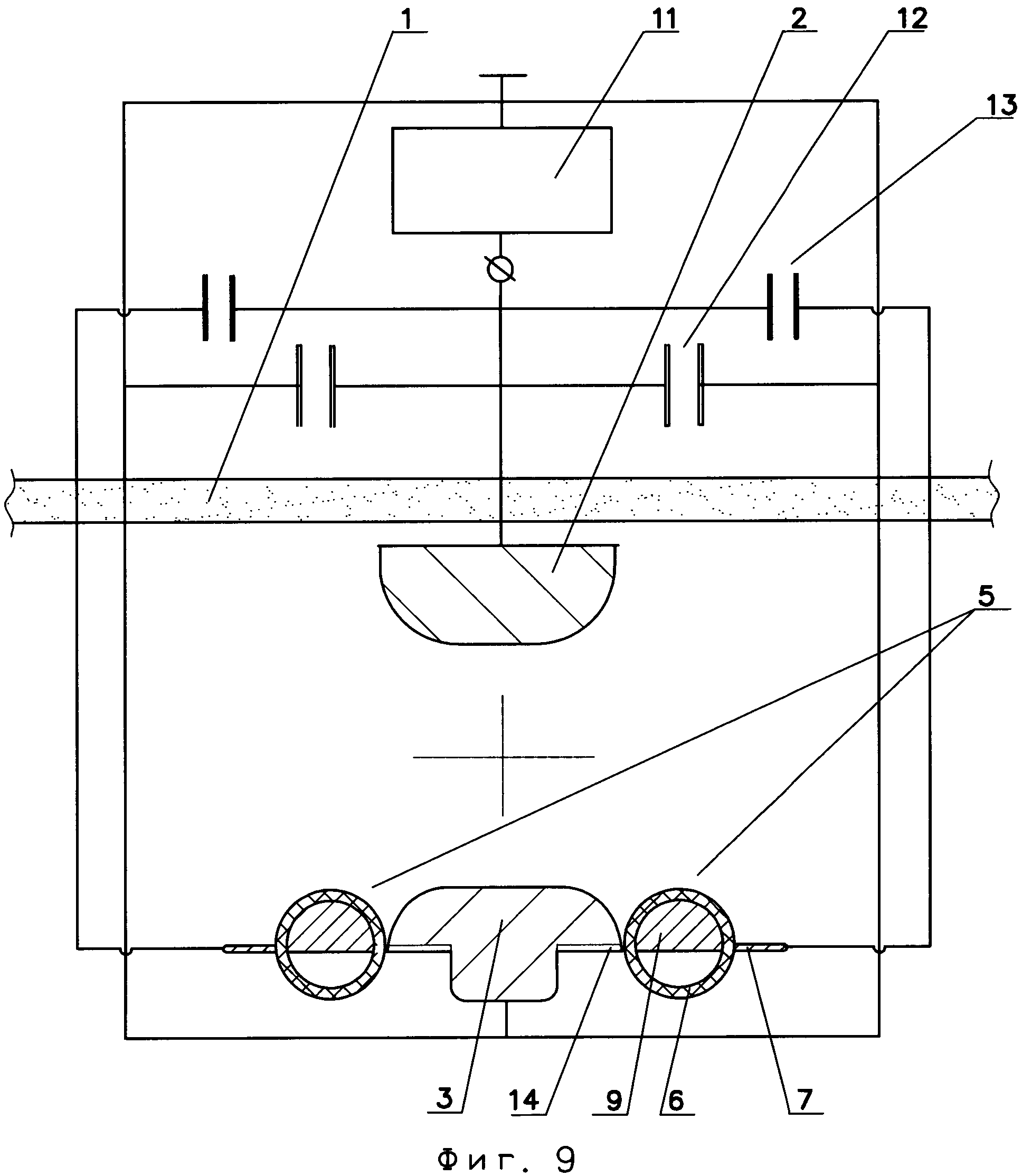 систему формирования однородного завершенного скользящего разряда (CP) между расположенными на поверхности протяженной диэлектрической пластины (6) протяженными поджигающим электродом (7) и либо инициирующим электродом (9), либо дополнительным электродом (14), соединенным с инициирующим электродом (9),