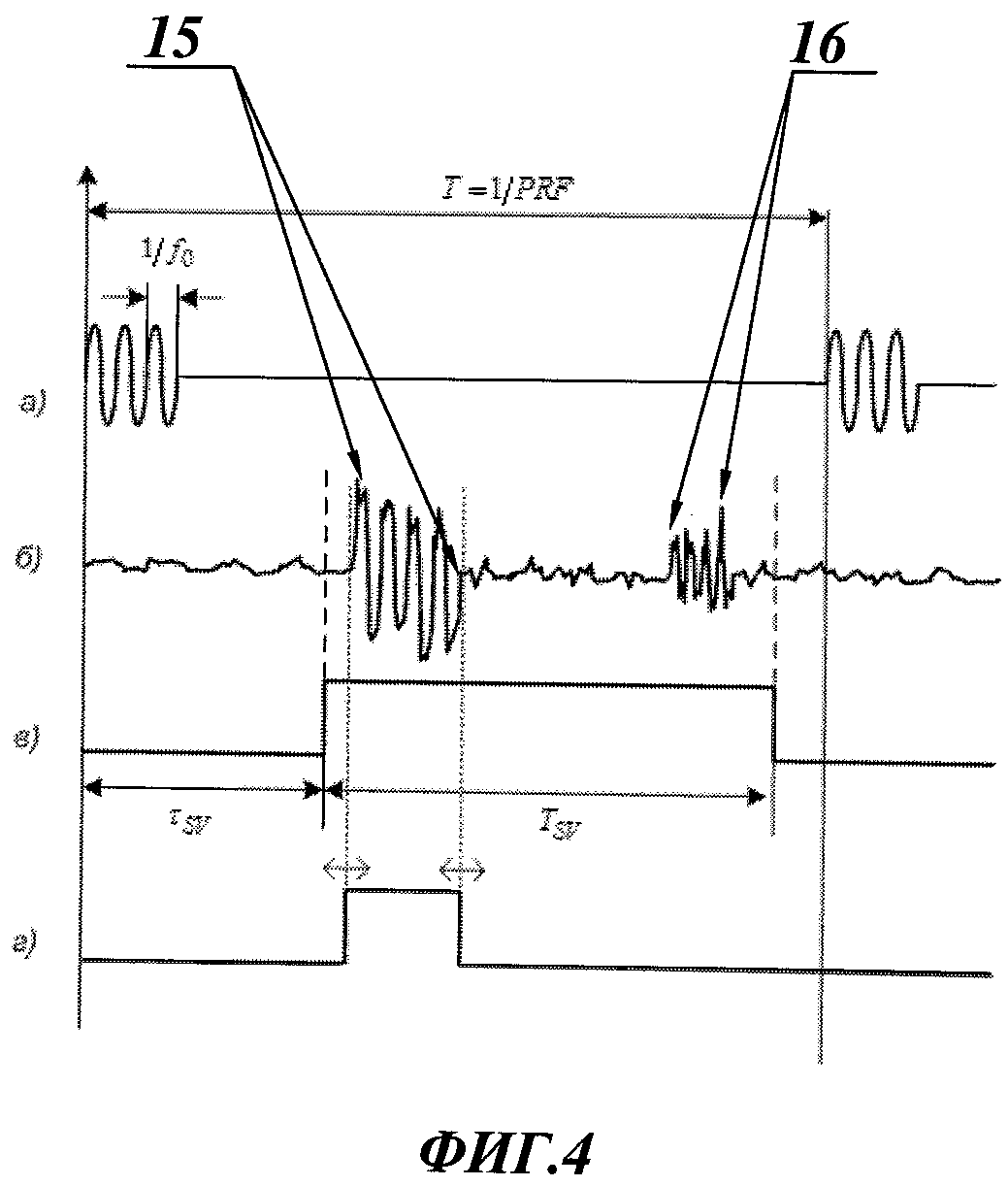 Способ измерения частоты сердечных сокращений плода, в котором производят зондирование, для чего формируют ультразвуковой сигнал излучения, направленный в область расположения сердца плода, после чего принимают отраженный от движущихся структур сердца плода доплеровский сигнал, который, после усиления, преобразуют из аналоговой в цифровую форму, отличающийся тем, что ультразвуковой сигнал излучения представляет собой серию импульсов, при этом частота повторения импульсов в серии равна несущей частоте ультразвукового сигнала, а частота повторения серий импульсов определяется в зависимости от максимальной глубины зондирования, при этом усиление сигнала выполняют в полосе частот, согласованной с длительностью серии излучения с частотой дискретизации, соответствующей полосе принимаемого сигнала, осуществляют перенос спектра доплеровского сигнала на нулевую частоту с одновременным вычислением его синусных и косинусных составляющих, осуществляют накопление комплексных отсчетов сигнала в соответствии с положением и размером измерительного объема по глубине зондирования, выполняют фильтрацию доплеровского сигнала в заданной полосе частот, осуществляют поиск пиков автокорреляционной функции и определяют расстояние между ними, вычисляют доплеровское смещение на основе вычисления разности фаз между доплеровским сигналами от последовательных серий ультразвукового сигнала, оценивают ширину спектра доплеровских частот и энергию доплеровского сигнала со всех участков глубины зондирования, а затем осуществляют контроль параметров доплеровских сигналов со всей глубины зондирования, для чего на основе анализа параметров спектра доплеровских частот выполняют выделение участков глубины зондирования, относящихся к сердцебиениями плода, после чего формируют адаптивный строб приема для сигнала сердцебиений плода, в соответствии с которым формируют последующий скорректированный ультразвуковой сигнал.