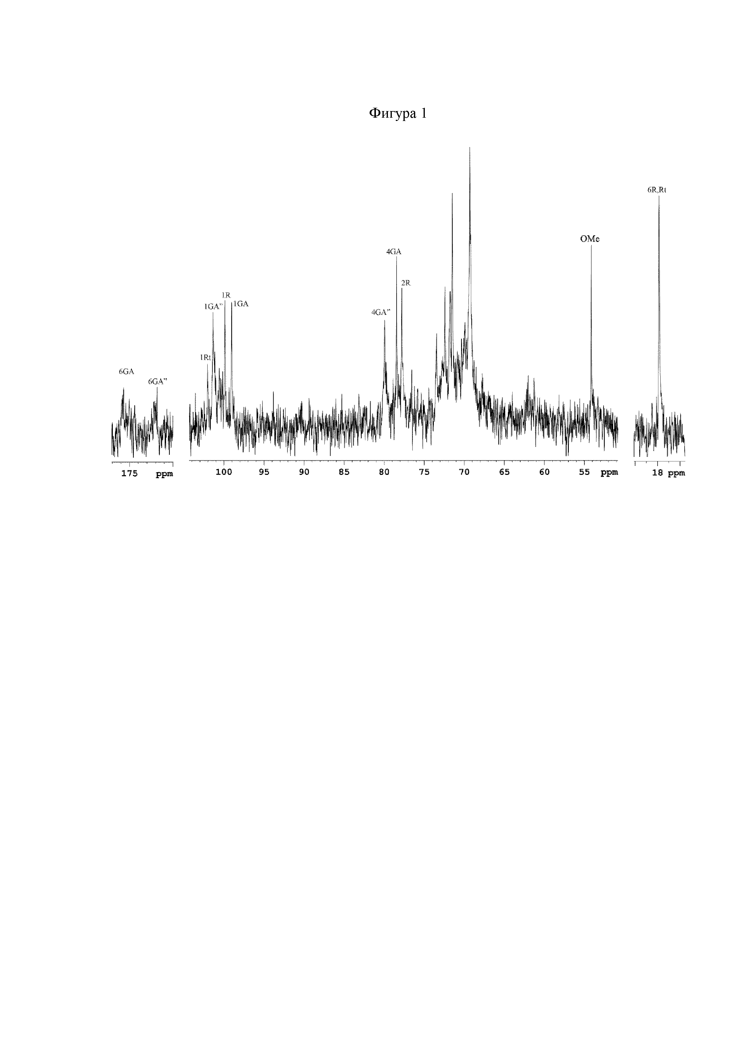 Изобретение относится к биологически активным соединениям, используемым в медицине и фармацевтической промышленности. Средство представляет собой L-рамнопиранозил-6-О-метил-D-галактуронан, выделенный из листьев березы повислой (Betula pendula L.). Новое средство обладает гиполипидемической активностью. В современной стратегии медикаментозной коррекции дислипидемий и первичной/вторичной профилактики сердечнососудистых заболеваний центральное место занимает терапия статинами. Однако в результате клинических исследований последних лет было показано, что монотерапия статинами, даже в высоких дозах, не приводит к достижению целевых значений липопротеидов низкой плотности. Более того, существуют пациенты, которые плохо переносят статины или не могут их принимать в высоких дозах (лица с хронической сердечной недостаточностью, пациенты старше 75 и моложе 21 лет, пациенты с хронической болезнью почек 3-5 стадии и находящиеся на диализе). В таких случаях также остро встает вопрос о замене статинов другими лекарственными средствами, позволяющими эффективно снижать уровень ХС-ЛПНП. Препаратами второй линии для терапии гиперхолестеринемии/дислипидемии, после статинов, в настоящее время, являются - ингибиторы обратного захвата холестерина (эзетимиб) и секвестранты желчных кислот, препятствующие всасыванию холестерина и желчных кислот в просвете желудочно-кишечного тракта. Несмотря на высокую эффективность последних, они не имеют широкого применения в стандартах лечения в РФ. Ограниченное использование этого класса препаратов клиницистами вызвано их высокой токсичностью и частотой возникновения побочных явлений. Известны изобретения, в которых используются экстракты или порошки растений, авторы изобретений связывают их гиполипидемическую активность, в том числе и с присутствием полисахаридов [1, 2, 3]. Известны изобретения, в которых приведено описание использование суммы полисахаридов какого-либо растения, обладающих гиполипидемической и гипохолестеринемической активностью [4, 5, 6, 7, 8, 9, 10, 11, 12,13, 14, 15, 16, 17, 18, 19, 20, 21, 22, 23]. Известны изобретения, связанные с использованием растительных полисахаридов для создания гиполипидемических средств, в которых описаны полисахариды, выделенные в индивидуальном виде и используемые в составе различных композиций, а также и дополнительно функционализированы [24, 25, 26, 27]. Известен способ получения пектиновых полисахаридов окры (Абельмош съедобный), обладающих высокой способностью удаления холестерина. Способ включает следующие этапы: приготовление порошка окры, экстракцию полисахаридов, осаждение неочищенных полисахаридов, очищение полисахаридов, концентрирование, удаление белков и проведение сублимационной сушки. Пектиновые полисахариды окры, полученные с помощью этого метода, обладают определенной антиоксидантной активностью, а также обладают высокой способностью удалять холестерин [19]. Известна пищевая добавка "Криласорб", которая в качестве активного вещества содержит продукт биосинтеза дрожжей Cryptococcus laurentii, включающий полисахариды. «Криласорб» представляет собой продукт, содержащий полисахариды, состоящие из остатков D-маннозы, D-ксилозы и D-глюкуроновой кислоты. Он не токсичен при пероральном применении, не всасывается в кишечнике и обладает гиполипидемической и энтеросорбц