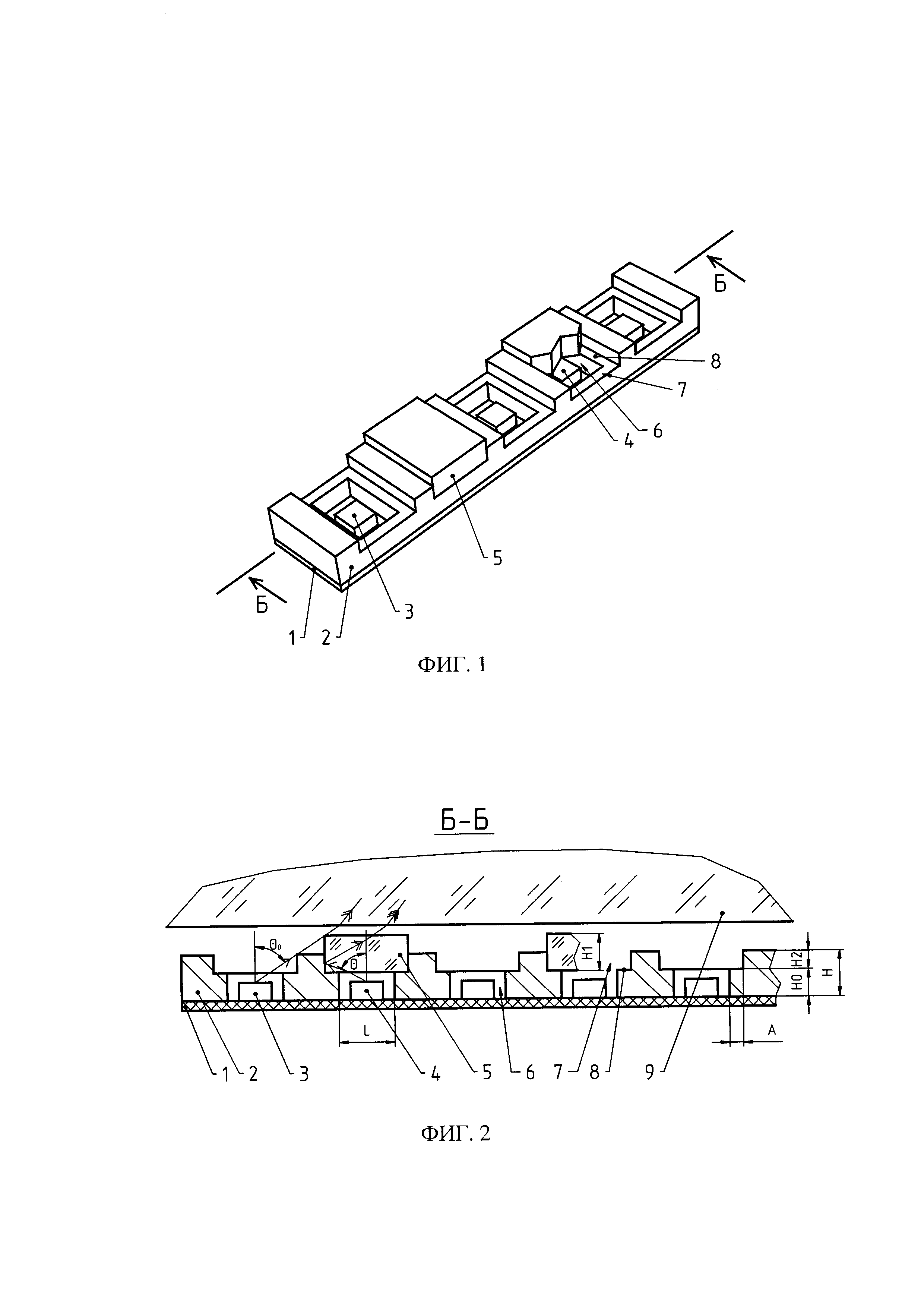 1. Способ светодиодной двухрежимной подсветки ЖКИ, который заключается в облучении световодной пластины световым потоком, создаваемым оптическим излучателем в виде линейки светодиодов, часть которых используется для дневной подсветки ЖКИ, а другая часть светодиодов используется для ночной подсветки с применением светофильтров, полоса пропускания которых лежит в зоне нечувствительности приборов ночного видения, причем полный световой поток при дневной и ночной подсветках образуется суммированием прямого излучения соответствующих светодиодов оптического излучателя и переотраженного излучения, отличающийся тем, что прямое и переотраженное излучение светодиодов формируют с помощью выполненного из непрозрачного материала с высоким коэффициентом диффузного отражения отражателя, который имеет отверстия для светодиодов линейки и выборки, светофильтры устанавливают на уступах выборки с фиксированным зазором над светодиодами ночной подсветки, при этом прямое излучение светодиодов обеспечивают в угле ±θ0, а излучение в углах θ>θ0 формируют за счет переотражений от внутренней поверхности отверстий и выборок, при этом глубину Н2 выборки выбирают из соотношения где А - ширина уступа выборки; L - ширина отверстия; Н0 - глубина отверстия; θ0 - угол, соответствующий половине ширины диаграммы направленности по уровню половинной силы света излучения светодиода. 2. Оптический излучатель, содержащий печатную плату с установленной на ней линейкой светодиодов, причем часть светодиодов используется для дневной подсветки ЖКИ, а другая часть используется для ночной подсветки с применением светофильтров, полоса пропускания которых лежит в зоне нечувствительности приборов ночного видения, отличающийся тем, что на печатной плате установлен выполненный из непрозрачного материала с высоким коэффициентом диффузного отражения отражатель, который имеет отверстия для установленных светодиодов и выборки, на уступах которых с фиксированным зазором над светодиодами для ночной подсветки установлены светофильтры, при этом глубину выборки Н2 выбирают из соотношения где А - ширина уступа выборки; L - ширина отверстия; Н0 - глубина отверстия; θ0 - угол, соответствующий половине ширины диаграммы направленности по уровню половинной силы света излучения светодиода.