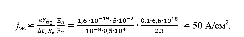 50 А/см2 (которое при наличии процессов, вызывающих временную усталость фотокатода, со временем будет только понижаться) явно недостаточно для выхода генератора ЭМИ на максимальную мощность и обеспечения его эксплуатационной устойчивости.