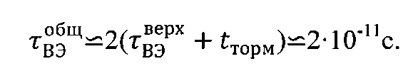 с в диапазоне энергий Ер=(0,1÷10) кэВ [16]. Оценка верхнего предела τВЭ производилась в основном экспериментально. Наиболее достоверной выглядет оценка, полученная из сравнения импульса первичного тока длительностью (16±2)·10-12 с и результирующего импульса вторичного тока длительностью (18±2)·10-12 с. Откуда следует, что