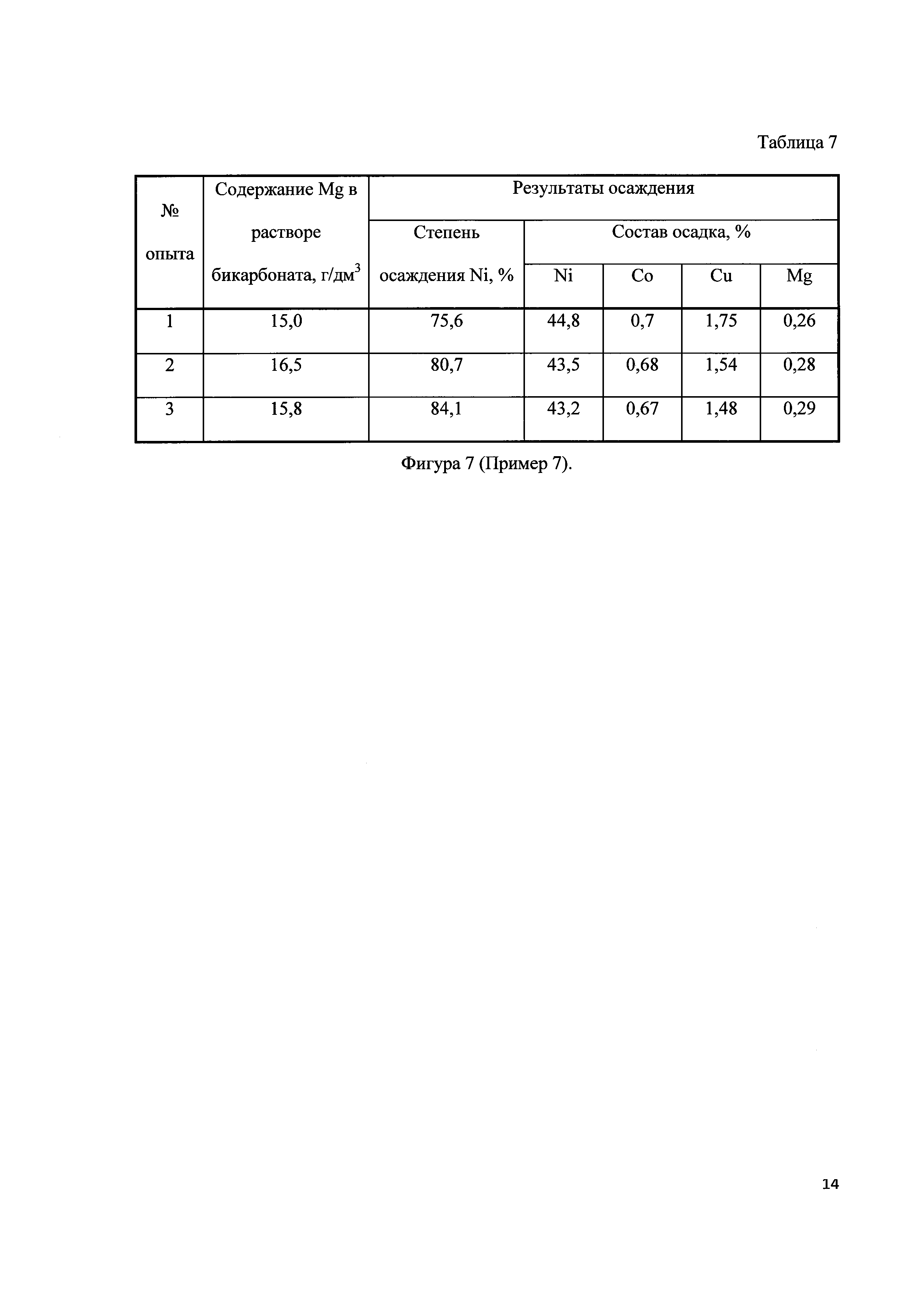 Изобретение относится к гидрометаллургическим способам переработки растворов, содержащих цветные металлы, осаждением гидратов цветных металлов с помощью магнийсодержащего осадителя. В предложенном способе магнийсодержащий осадитель перед использованием подвергается предварительной обработке карбонизацией. Предварительная обработка заключается в продувке водной пульпы магнийсодержащего осадителя углекислым газом под давлением 0,1-0,5 МПа при температуре не более 20-25°С в течение 10-30 мин. После окончания продувки углекислым газом пульпа фильтруется, а фильтрат, содержащий бикарбонат магния, направляется на операцию осаждение гидратов цветных металлов из растворов. Оптимальный расход раствора бикарбоната выбирается из расчета перевода 70-90% цветных металлов из растворов в осадок гидратов цветных металлов, образующийся в процессе осаждения. Обеспечивается снижение остаточного содержания магния в осадке. 5 з.п. ф-лы, 7 табл., 7 пр.