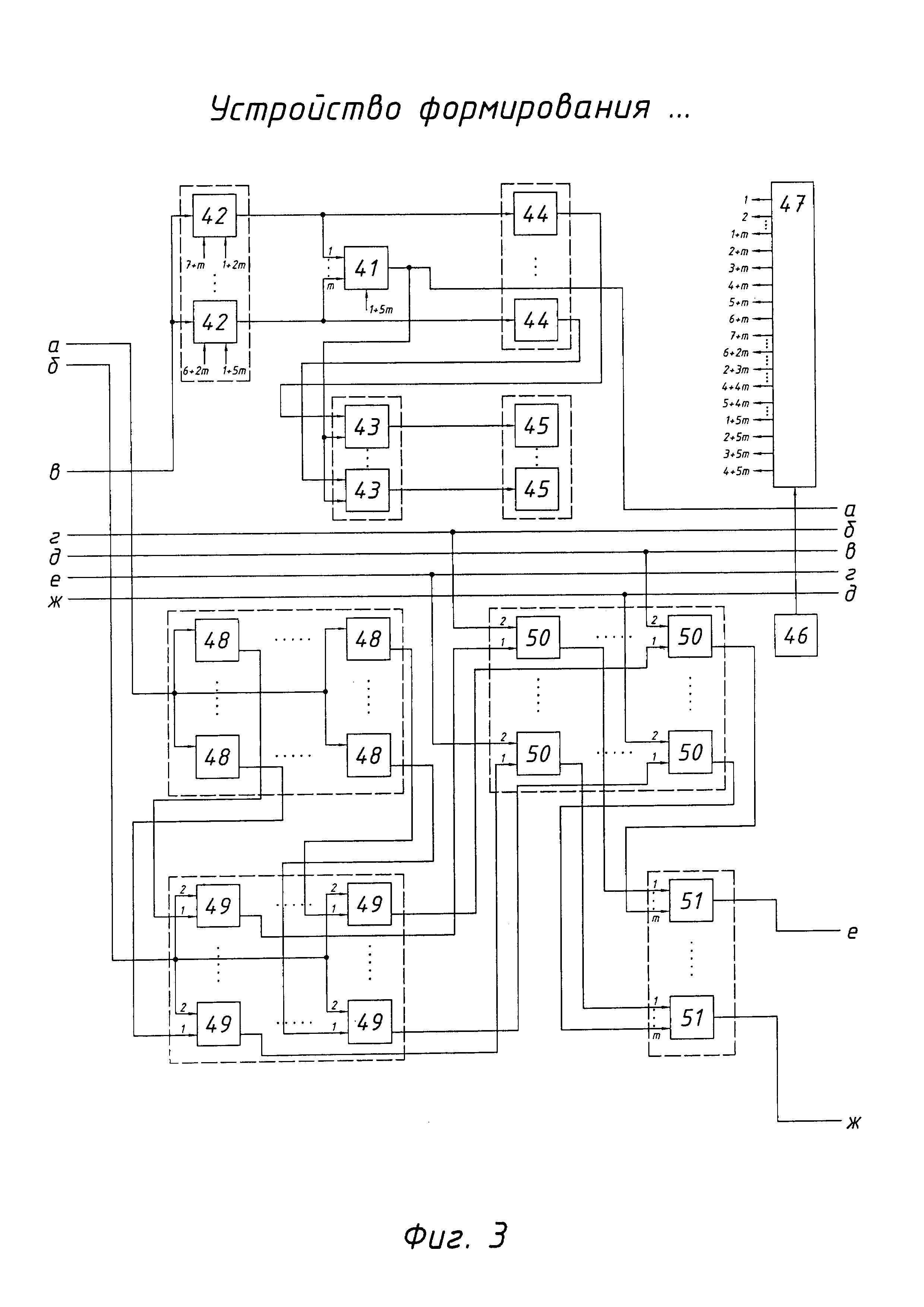 , выраженные через формулу (32) величинами П1, ……, Пm на информационные входы третьей группы 74 блоков сравнения, на пороговые входы которой подаются значения