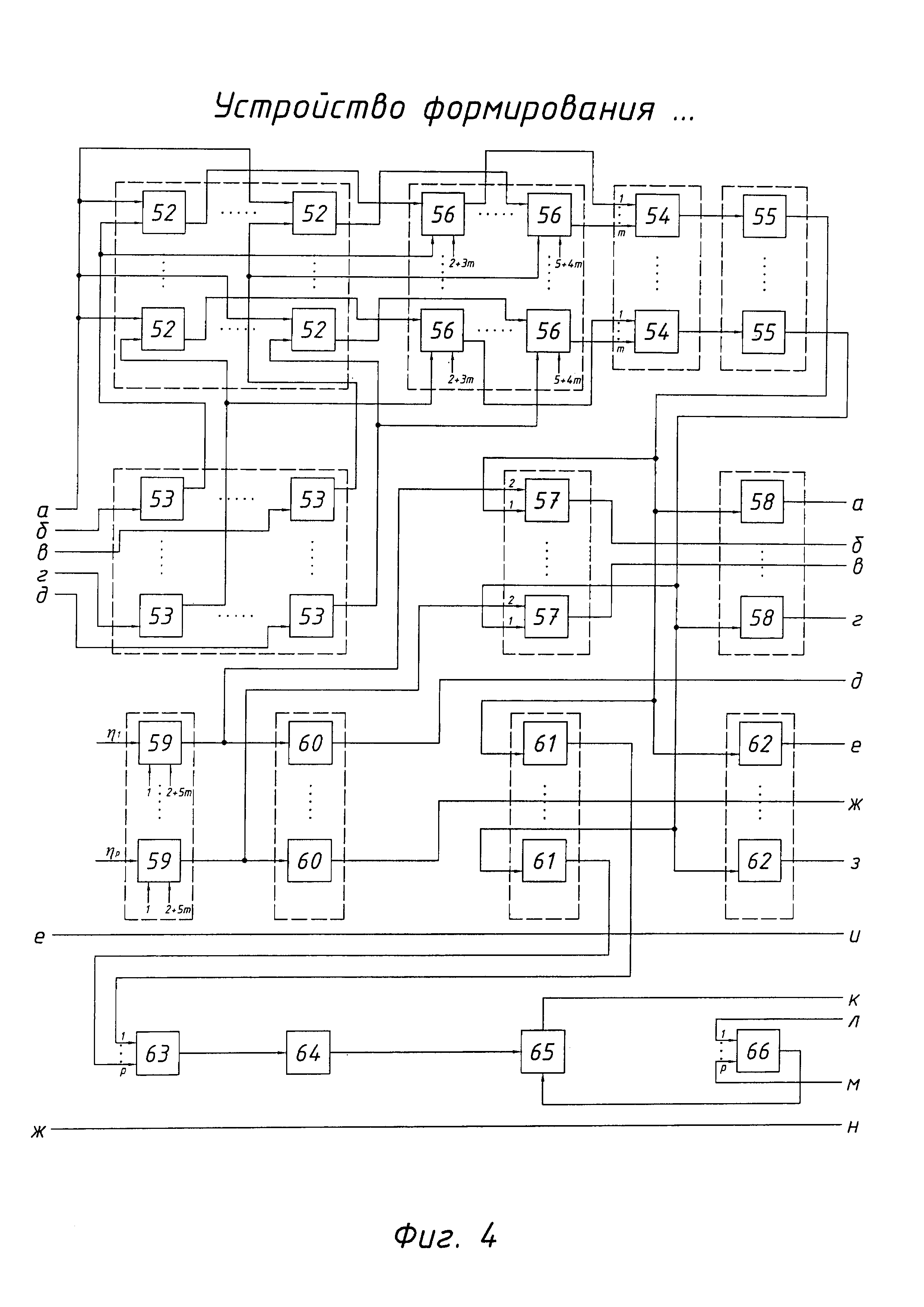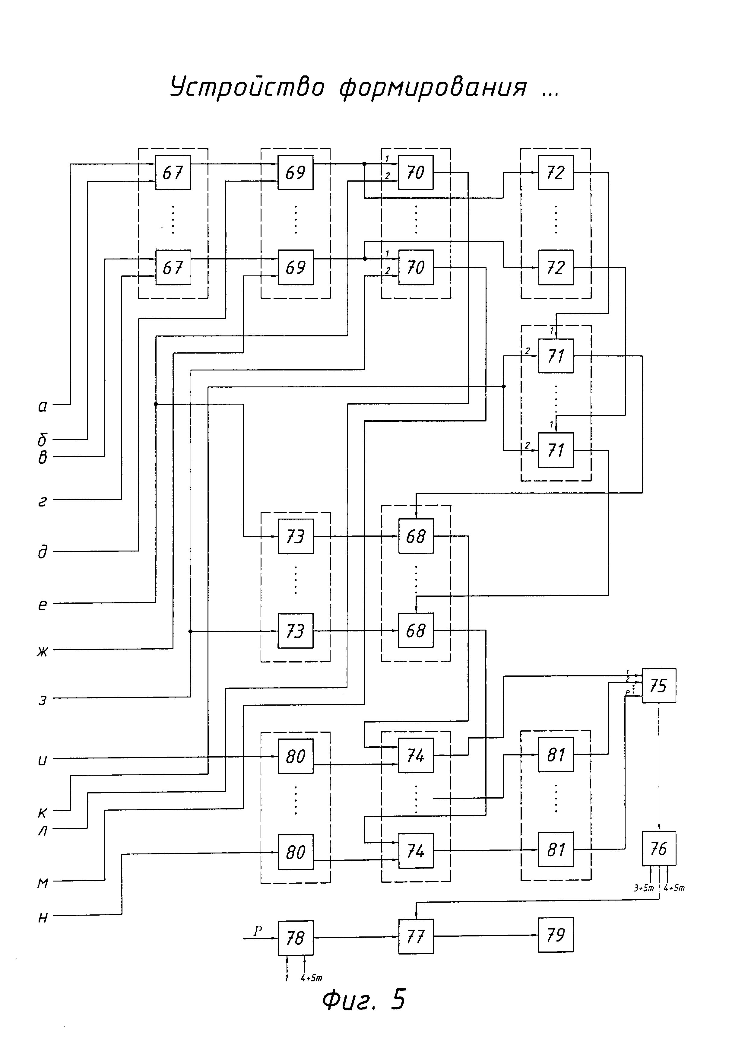 согласно условию (21) через первый элемент группы 55 ключей будет засылаться на входы первых элементов третьей 58 и пятой 62 ЭЗ, третьей группы квадраторов и на первый вход первого элемента группы сумматоров.