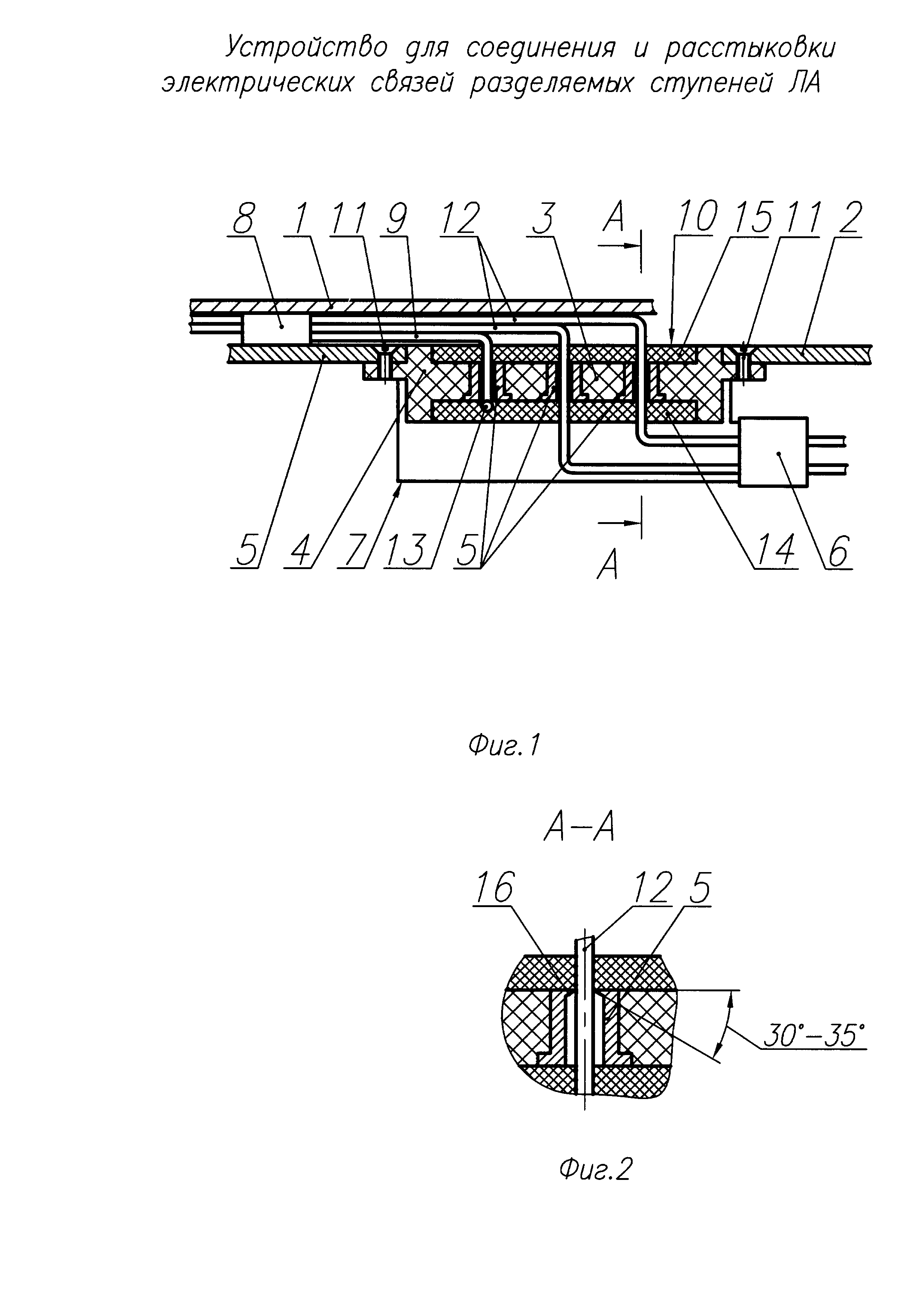 Изобретение относится к области ракетно-космической техники и может быть использовано в конструкции высокоскоростных двухступенчатых ракет. Устройство установлено в корпусе летательного аппарата и содержит электрический узел. Электрический узел расположен перпендикулярно к внешнему обводу второй ступени и содержит жестко закрепленное в корпусе второй ступени основание, в котором расположено не менее двух втулок с отверстиями для размещения электрических связей и предохранительного каната. Верхняя часть каждой втулки выполнена в виде заостренной режущей кромки. Один конец предохранительного каната жестко закреплен в основании, а другой конец и электрические связи жестко соединены с зажимным приспособлением, закрепленным на корпусе первой ступени. Предохранительный канат имеет меньшую длину, чем электрические связи и установлен в передней части основания. Повышаются аэродинамические характеристики летательного аппарата, предотвращается разрушение ракеты. 2 ил.