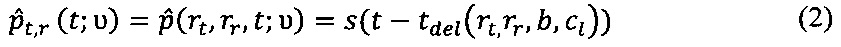 . Уточнение расстояния между призмами и скорости продольной волны в ОК основано на достижении максимального совпадения по заданному критерию измеренных эхосигналов p(rt, rr, t) и их оценки
