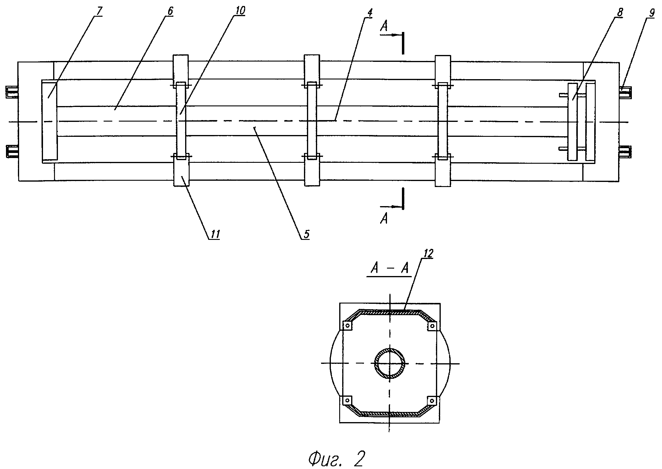 1. Устройство для термической обработки сварных конструкций из алюминиевых сплавов, содержащее устройство для фиксации сварной конструкции, состоящее из корпуса, выполненного из стальной трубы, с установленными на концах плитами, одна из которых неподвижна, а вторая имеет возможность перемещения вдоль продольной оси, на плитах установлены клиновые прижимы, в промежутке между плитами расположены ложементы со съемными упорами, между которыми имеется установочный зазор и печь для нагрева сварной конструкции, размещенной в устройстве для фиксации. 2. Способ термической обработки сварных конструкций из алюминиевых сплавов, включающий фиксацию сварной конструкции путем совмещения внутренних поверхностей поперечных и продольных элементов сварной конструкции с поверхностями плит и ложементов, закрепления их клиновыми прижимами к плитам, упорами к ложементам с обеспечением установочного зазора, затем помещают в печь, нагревают до 350°С, выдерживают в течение 0,5 ч охлаждают в печи до 150°С с последующим охлаждением на воздухе.