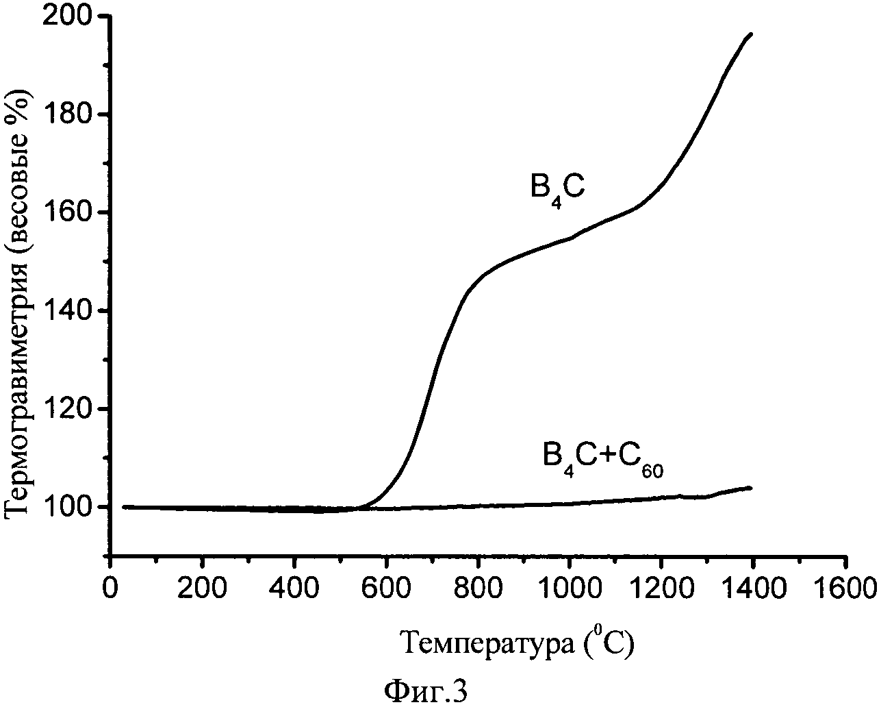 Изобретение относится к композитным материалам, а в частности к композитным материалам на основе углерода и способам их получения, и может быть использовано в ракетно-космической и авиационной отраслях, при металлообработке, обработке природного камня, других твердых и сверхтвердых материалов. Композитные материалы - это многокомпонентные материалы, состоящие из полимерной, металлической, углеродной, керамической или другой основы (матрицы, связующего), армированной наполнителями из волокон, нитевидных кристаллов, тонкодисперсных частиц и др. Путем подбора состава и свойств наполнителя и матрицы, их соотношения, ориентации наполнителя можно получить материалы с требуемым сочетанием эксплуатационных и технологических свойств. По структуре наполнителя композитные материалы подразделяют на волокнистые (армированы волокнами и нитевидными кристаллами), слоистые (армированы пленками, пластинками, слоистыми наполнителями) и дисперсноармированные или дисперсноупрочненные (с наполнителем в виде тонкодисперсных частиц). Матрица в композитных материалах обеспечивает монолитность материала, передачу и распределение напряжения в наполнителе, определяет тепло-, влаго-, огне- и химическую стойкость. По природе матричного материала различают полимерные, металлические, углеродные, керамические и другие композиты. Наиболее широкое применение в технике получили композитные материалы, армированные высокопрочными и высокомодульными непрерывными волокнами. Среди них особый интерес представляют: - композитные материалы на основе углерода, армированного углеродными волокнами (углерод - углеродные материалы); - композитные материалы на основе керамики, армированной углеродными, карбидкремниевыми и другими жаростойкими волокнами. Большое внимание уделяется созданию новых композитных материалов как на основе известных, так и на основе относительно недавно открытых новых модификаций углерода с другими элементам. Появляется возможность конструирования материалов с заданными параметрами, собранными из атомных кластеров с необходимыми физико-химическими свойствами. В настоящее время описана аллотропная форма углерода - фуллерен, который используют, например, в качестве исходного продукта при получении алмазов (“The fullerens”, edited by H.W. Kroto, J.E. Fischer, D.E. Cox, PergamonPress, Oxford, NewYork, Seoul, Tokyo, 1993). Фуллерен представляет собой молекулу, в которой атомы углерода (60-240 и более) связаны между собой таким образом, что образуют полое тело с формой, близкой к сферической. Так, например, молекула фуллерена C60 напоминает футбольный мяч, она образована 20 шестиугольниками и 12 пятиугольниками. Межатомные расстояния в молекуле фуллерена C60 остались практически столь же короткими и прочными, как в слое графита (т.е. в графене); диаметр молекулы составляет около 0,7 нм. Известен сверхтвердый углеродный материал и способ его получения, при этом в качестве исходного углеродного материала используют аллотропную форму углерода - фуллерен C60 (патент РФ 2127225, 1996 г). На фуллерен C60 воздействуют давлением 7.5-37 ГПа и температурой, выбранной в интервале 20-1830°C в аппаратах высокого давления: типа «тороид», типа наковален Бриджмена и др. При воздействии на исходный фуллерен давления и температуры происходит полимеризация молекул или фрагментов молекул фуллерена. Компактные 