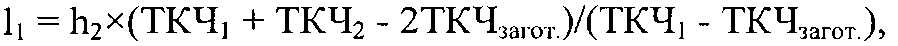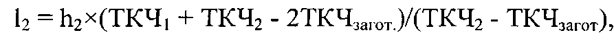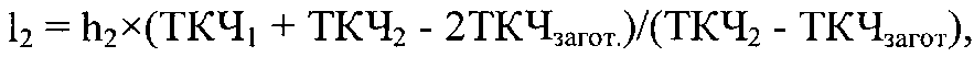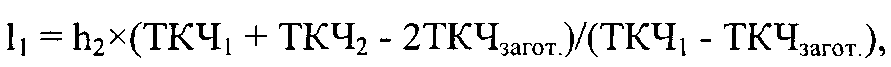 на первом - с одной из сторон на глубину l1, со стороны упомянутого второго слоя при значении величины температурного коэффициента частоты заготовки диэлектрического резонатора большей величины заданного номинального значения температурного коэффициента частоты диэлектрического резонатора, либо на глубину l2, со стороны упомянутого первого слоя при значении величины температурного коэффициента частоты заготовки диэлектрического резонатора, меньшей величины заданного номинального значения температурного коэффициента частоты диэлектрического резонатора, при этом глубину l1 и l2 определяют согласно выражениям соответственно