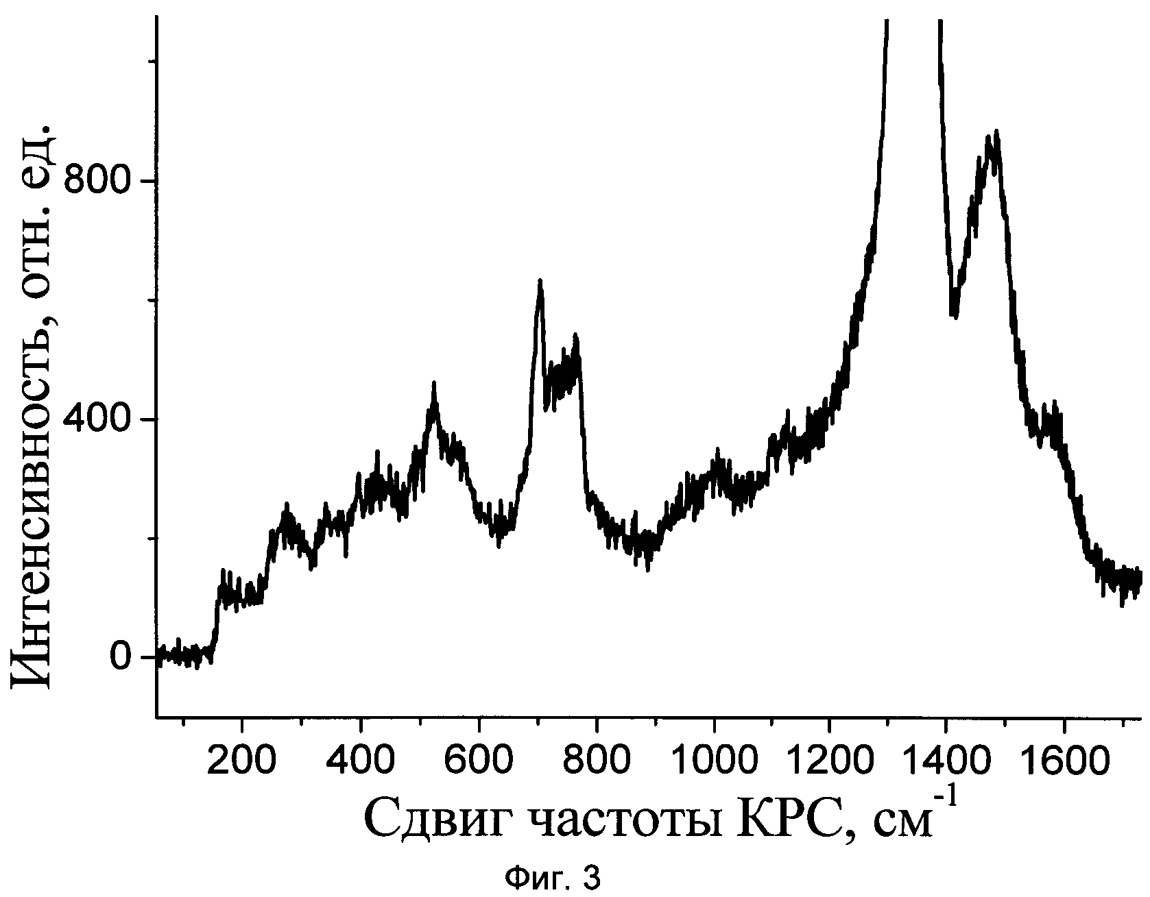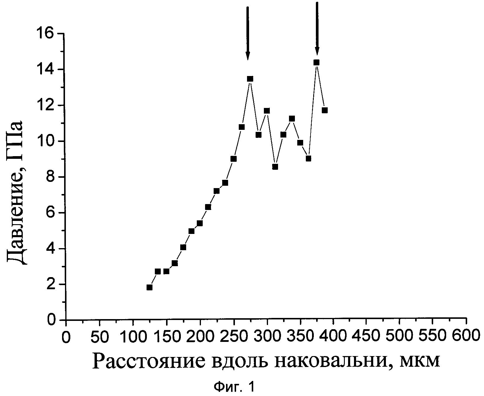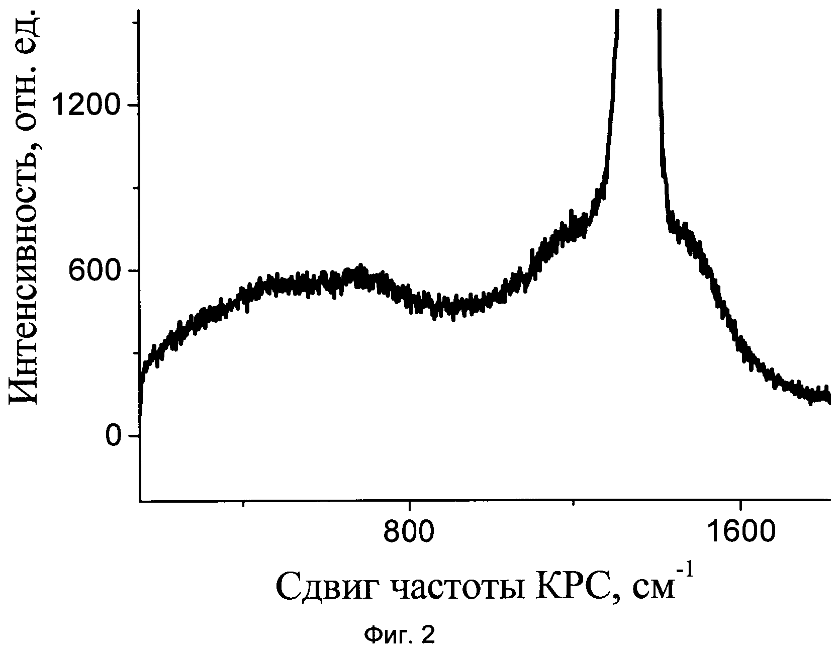 Изобретение относится к способу получения твердых, сверхтвердых и ультратвердых конструкционных углеродных материалов, используемых в аэрокосмической отрасли, оборонной промышленности, а также при обработке твердых и сверхтвердых материалов. В настоящее время описана аллотропная форма углерода - фуллерен, который используют, например, в качестве исходного продукта при получении алмазов (“The fullerens”, edited by H.W. Kroto, J.E. Fischer, D.E. Cox, Pergamon Press, Oxford, NewYork, Seoul, Tokyo, 1993). Фуллерен представляет собой молекулу, в которой атомы углерода (60-240 и более) связаны между собой таким образом, что образуют полое тело, с формой, близкой к сферической. Так, например, молекула фуллерена С60 напоминает футбольный мяч, она образована 20 шестиугольниками и 12 пятиугольниками. Межатомные расстояния в молекуле фуллерена С60 остались практически столь же короткими и прочными, как в слое графита (т.е. в графене); диаметр молекулы составляет около 0,7 нм. Известен сверхтвердый углеродный материал и способ его получения, при этом в качестве исходного углеродного материала используют аллотропную форму углерода - фуллерен С60 (патент РФ №2127225, 1996 г). На фуллерен С60 воздействуют давлением 7.5-37 ГПа и температурой, выбранной в интервале 20-1830°C в аппаратах высокого давления: типа «тороид», типа наковален Бриджмена и др. При воздействии на исходный фуллерен давления и температуры происходит полимеризация молекул или фрагментов молекул фуллерена. Компактные образцы материала имеют высокие механические и электрофизические свойства. Ниже представлены документы, в которых описаны способы получения твердых, сверхтвердых и ультратвердых конструкционных углеродных материалов (высокотвердых углеродных материалов) из молекулярного фуллерена С60 и сами эти материалы. (Патент РФ №2078033, 1997; патент РФ №2096321, 1997; патент РФ №2108288,1995; US 6245312, 2001; V.D. Blank, V.N. Denisov, A.N. Ivlev, B.N. Mavrin, N.R. Serebryanaya, G.A. Dubitsky, S.A. Sulynov, M.Yu. Popov, N. Lvova, S.G. Buga and G.N. Kremkova. Carbon, V. 36, р. 1263-1267 (1998); Structures and physical properties of superhard and ultrahard 3D polymerized fullerites created from solid С60 by high pressure high temperature treatment. V.D. Blank, S.G. Buga, N.R. Serebryanaya, G.A. Dubitsky, B. Mavrin, M.Yu. Popov, R.H. Bagramov, V.M. Prokhorov, S.A. Sulynov, B.A. Kulnitskiy and Ye.V. Tatyanin. Carbon, V. 36, р. 665-670 (1998)) В основном способы получения указанных материалов заключаются в следующем. Исходный молекулярный С60 подвергают воздействию давления и температуры. Ультратвердый (превышающий по твердости алмаз) фуллерит получают в условиях сдвига под давлением 18 ГПа при комнатной температуре (в сдвиговой камере с алмазными наковальнями (СКАН)) или под давлением 12,5-13 ГПа при нагреве 600-2000°C (в твердосплавной камере типа тороид); сверхтвердый (с твердостью между кубическим BN и алмазом (в среднем 150 ГПа для алмаза IIа)) фуллерит получают иод давлением 9 ГПа при нагреве 500-900°C и твердые (с твердостью между 10 ГПа и кубическим BN (50 ГПа)) разупорядоченные фазы получают под давлением 7-8 ГПа при нагреве 600-1600°C (в твердосплавной камере типа тороид). В результате получают высокотвердые (с твердостью выше 10 ГПа) материалы. Исследования полученных материалов ведут следующим образом. Ультратвердый фуллерит исследуют методом комбинационного рассеяния света (КРС). Спектр КРС ультратвердого фуллерита характеризуется широкими линиями. Кроме широкой линии в области 1550 см-1 (тангенциальные моды С60), в спектрах КРС ультратвердого фуллерита имеется широкая линия в области 500 см-1, что принципиально 