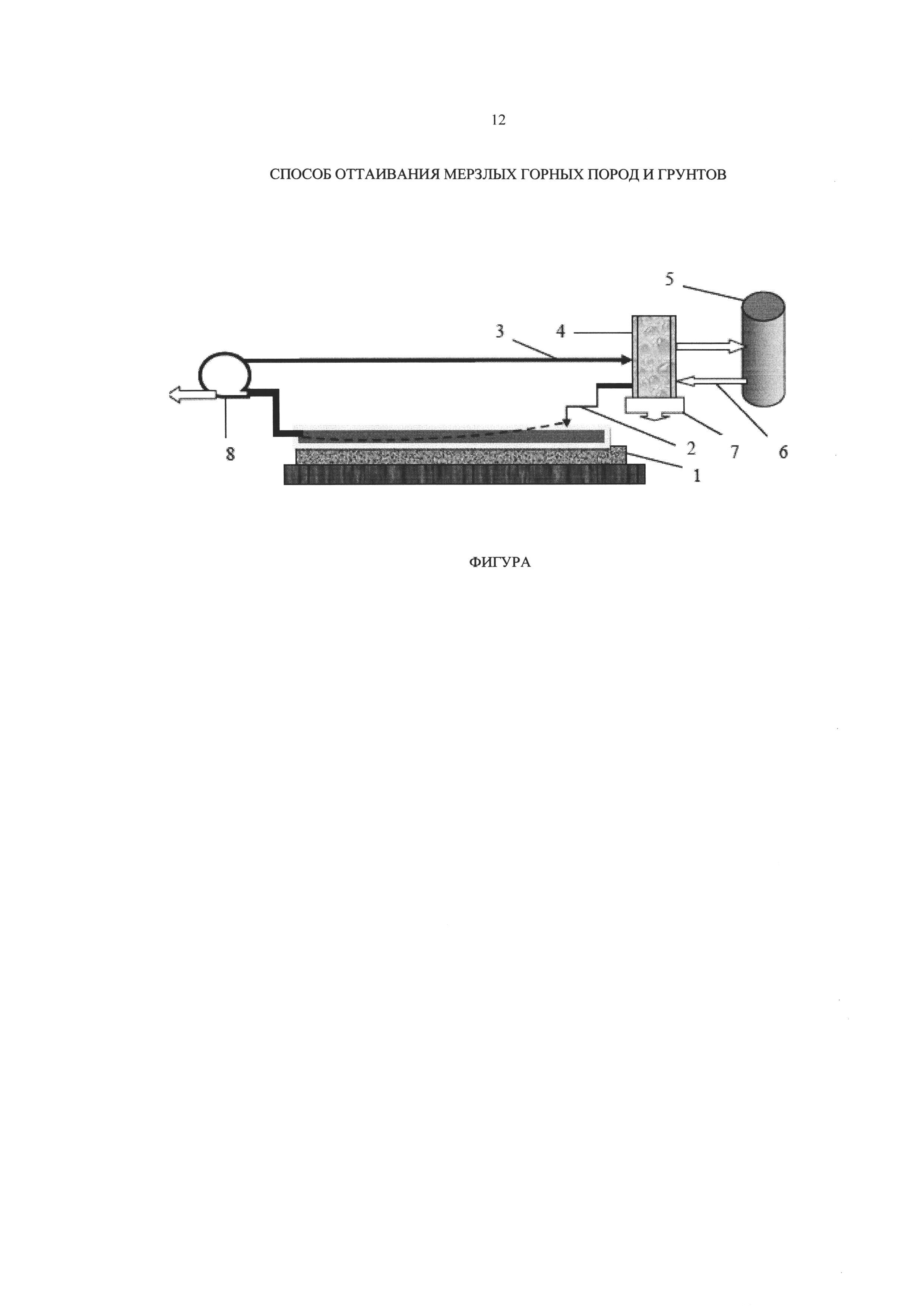 1. Способ оттаивания мерзлых горных пород и грунтов, включающий удаление почвенно-растительного слоя на оттаиваемом участке, затопление оттаиваемого участка жидкостью, отличающийся тем, что участок заливают жидкостью, содержащей концентрированный водный раствор спирта, от оттаиваемого участка ведут отбор жидкости, которую направляют на регенерацию с восстановлением исходной концентрации спирта, на оттаиваемый участок жидкость подают нагретой до 30-50°С, отбор жидкости на регенерацию ведут в процессе промывки грунта или породы, подачу и отбор жидкости на оттаиваемом участке ведут таким образом, чтобы поддерживать среднее содержание спирта в режиме затопления на уровне выше 10%. 2. Способ оттаивания мерзлых горных пород и грунтов по п. 1, отличающийся тем, что в качестве спирта используют метанол, этанол или пропанол. 3. Способ оттаивания мерзлых горных пород и грунтов по п. 1, отличающийся тем, что осуществляют регенерацию и нагрев жидкости выхлопными газами двигателя внутреннего сгорания или газовой турбины. 4. Способ оттаивания мерзлых горных пород и грунтов по п. 1, отличающийся тем, что регенерацию и нагрев жидкости ведут при подводе тепла от ядерного реактора.