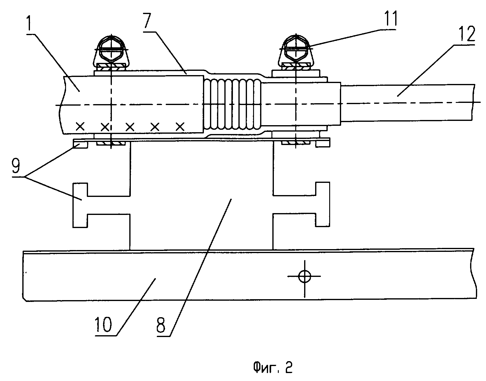 прикрепленным с помощью болта 24 к металлическому лотку 10. Укороченная муфта (фиг.5) имеет укороченный металлический лоток 10, два кронштейна 8, установленных на определенном
