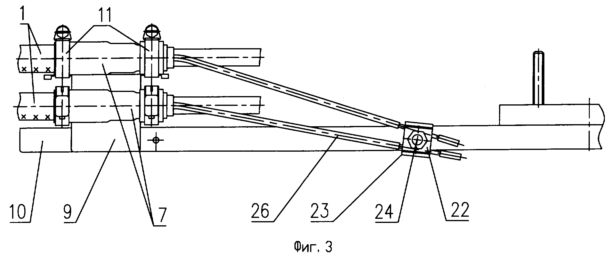 3 крепятся непосредственно к лотку 10 с помощью винтов-саморезов 27. Лоток 10 имеет предпочтительно П-образную форму поперечного сечения. Введенные в муфту ОК 1 крепятся