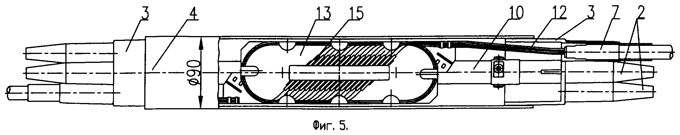 кабелей. Модули 12 введенных ОК заводятся непосредственно, без выполнения “бублика” технологического запаса модулей, на вводные части кассеты 13, укороченную трубу 4, надвигаемую на один оголовник 3 и