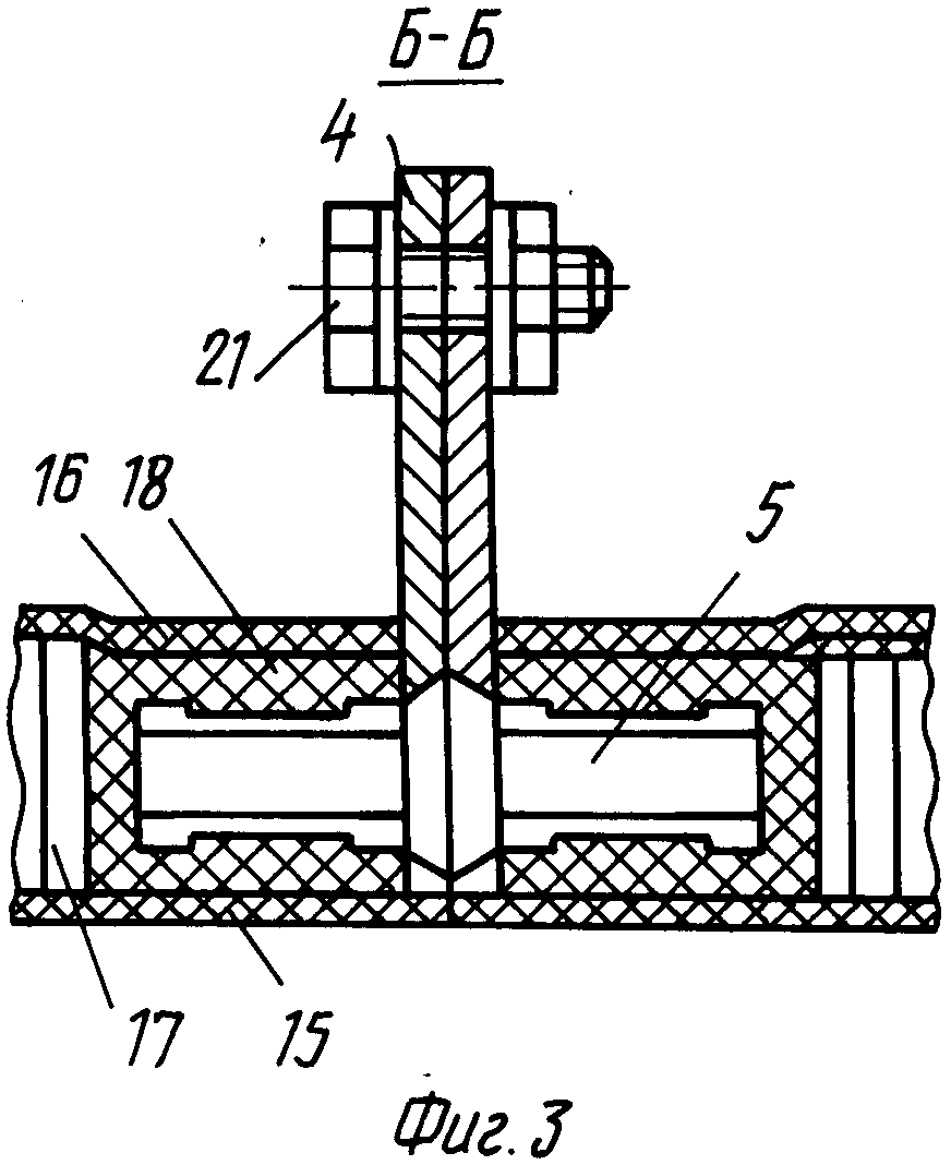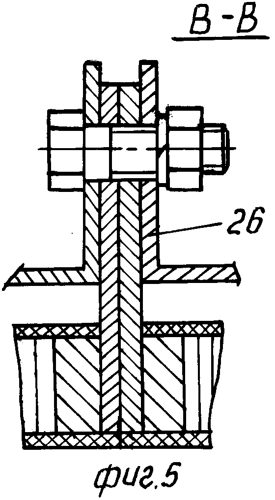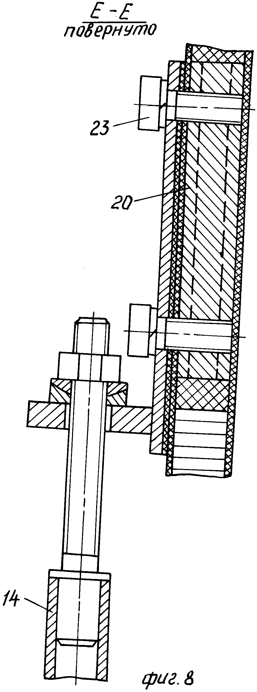 - сечение Б-Б на фиг. 2; на фиг. 4 - выноска а фиг. 2, на фиг. 5 - сечение В-В на фиг. 1, на фиг. 6 - сечение Г-Г на фиг. 1, на фиг. 7 - сечение Д-Д на фиг. 1, на фиг. 8 - сечение Е-Е на фиг.