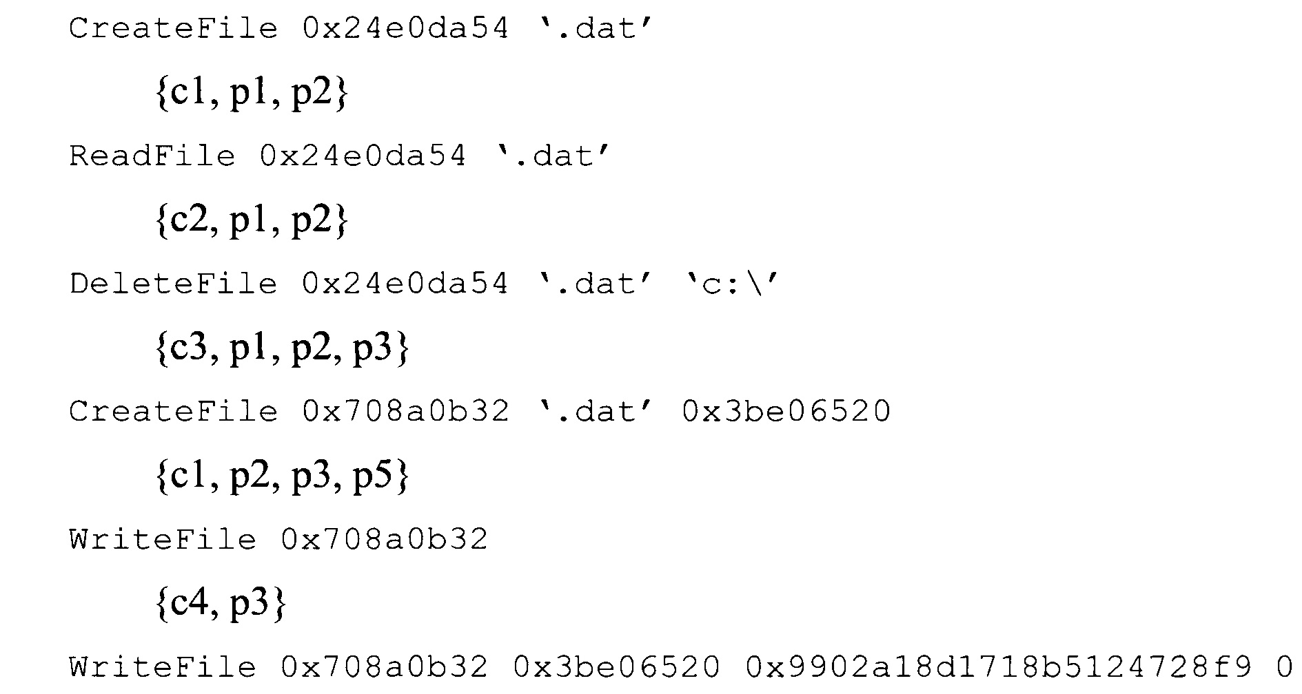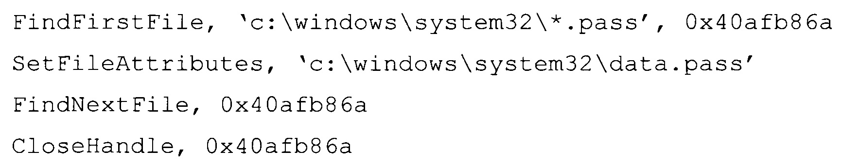 совокупности машинных инструкций, описывающих заранее заданный набор действий (макрокоманд). Например, очень часто вредоносные программы осуществляют поиск некоторых файлов и модификацию их атрибутов, для чего выполняется последовательность команд, таких как: