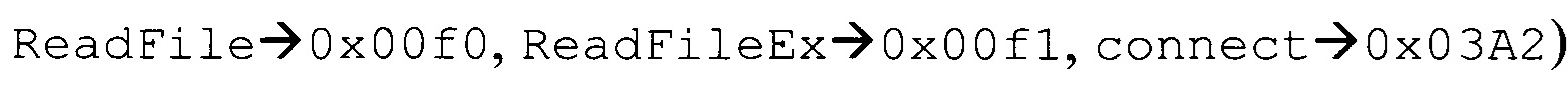 формирования на основании перехваченных команд и определенных параметров журнала поведения полученного файла, при этом журнал поведения представляет собой совокупность перехваченных команд (далее - команда) из файла, где каждой команде соответствует по меньшей мере один определенный параметр, описывающий упомянутую команду (далее - параметр). Например, перехваченные во время исполнения вредоносного файла, собирающего пароли и передающего их по компьютерной сети, команды и вычисленные параметры упомянутых команд могут иметь вид: