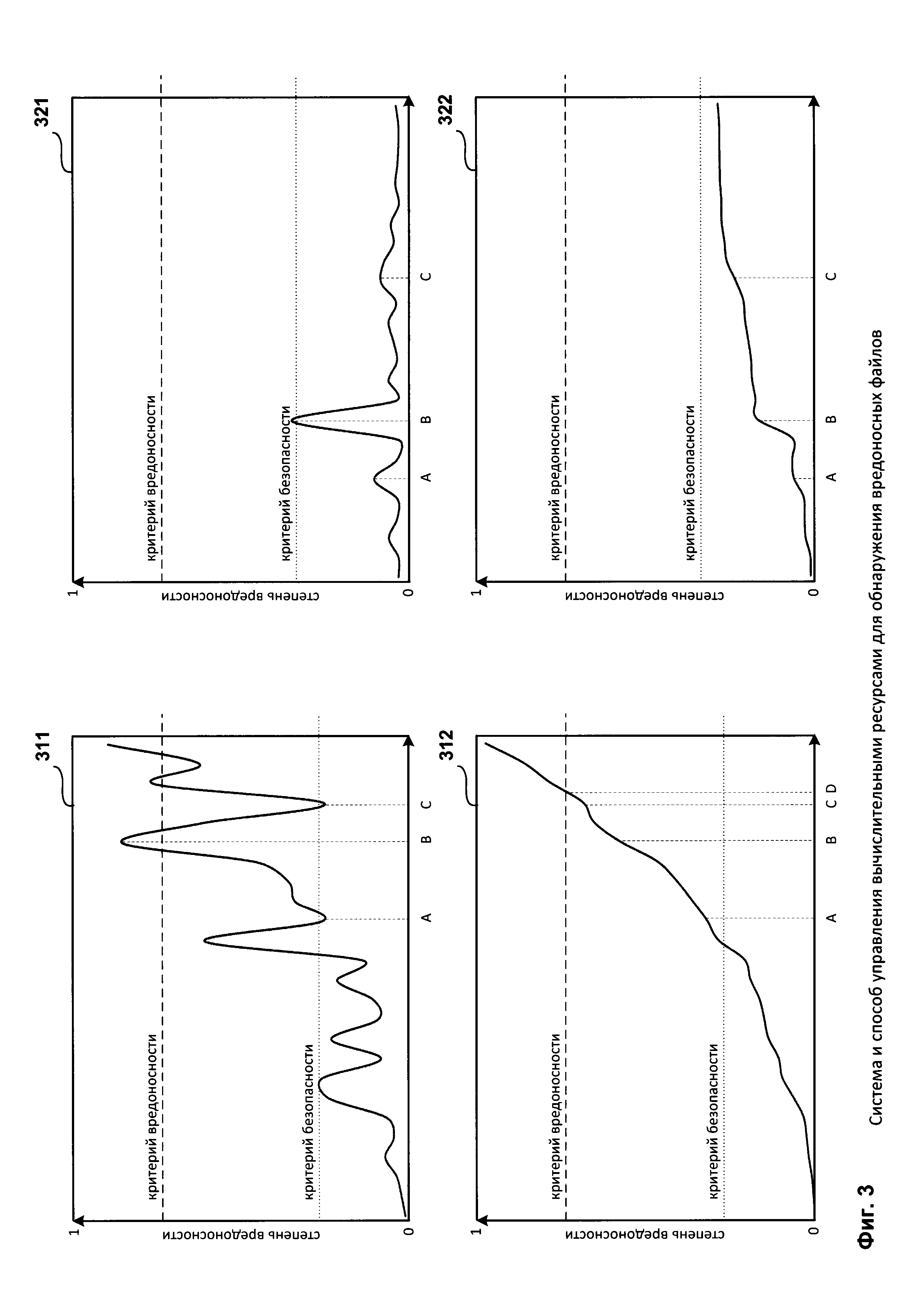 вычисления степени вредоносности на основании полученного от средства формирования журнала поведения 142 журнала поведения и от средства машинного обучения модели обнаружения 132 модели обнаружения, при этом степень вредоносности файла представляет собой количественную характеристику (например, лежащую в диапазоне от 0 - файл обладает исключительно безопасным поведением до 1 - упомянутый файл обладает заранее заданным вредоносным поведением), описывающую вредоносное поведение исполняемого файла;
