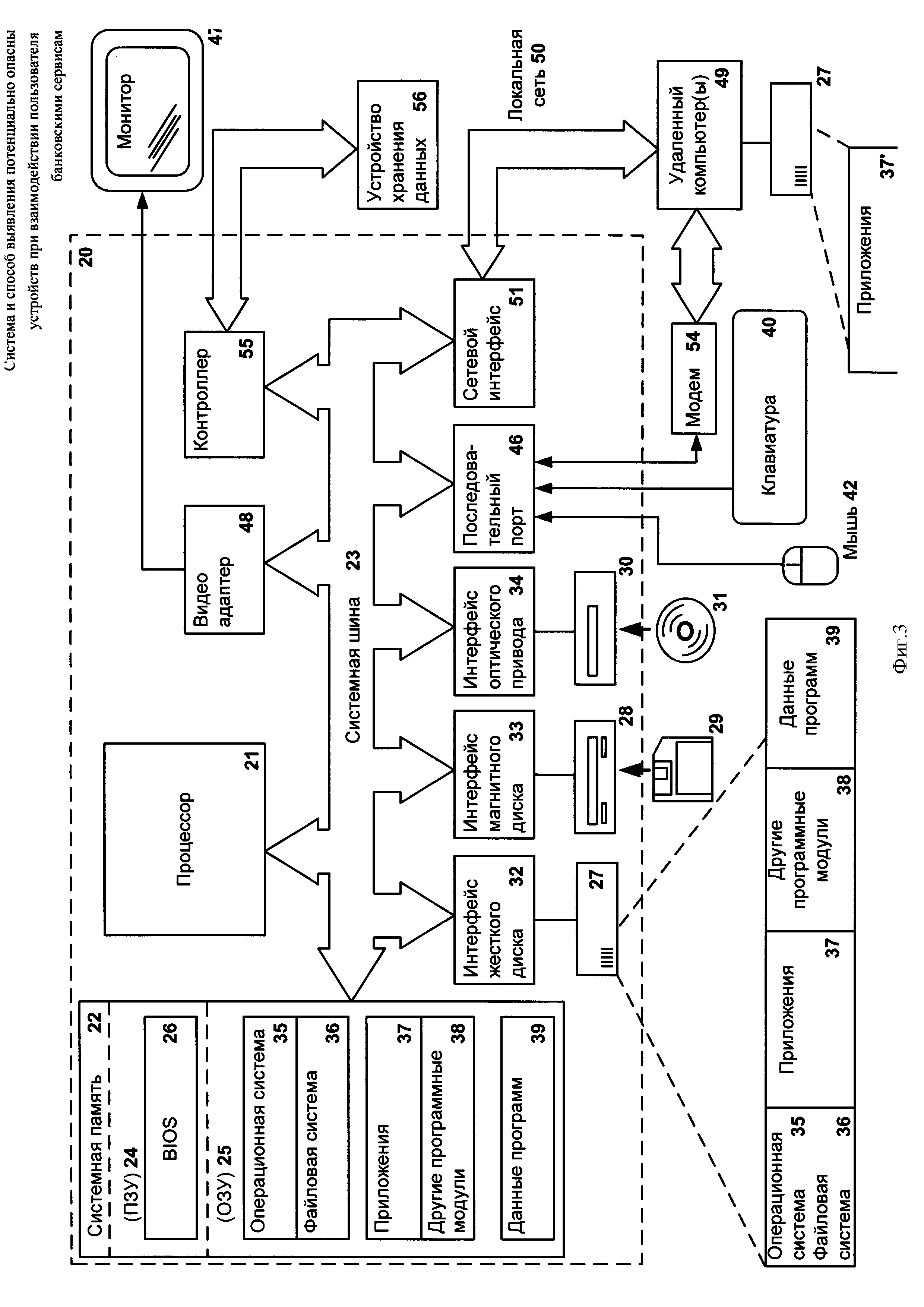 Изобретение относится к вычислительной технике. Технический результат заключается в обеспечении безопасности взаимодействия пользователя с банковскими сервисами путем выявления потенциально опасных устройств при взаимодействии пользователя с банковскими сервисами. Система выявления потенциально опасных устройств среди устройств, посредством которых пользователь взаимодействует с банковскими сервисами содержит средство сбора, предназначенное для сбора цифровых отпечатков устройств пользователей; сбора данных о потенциально опасных состояниях устройств пользователей; средство вычисления степени угрозы, предназначенное для вычисления степеней угрозы устройств пользователей; создания кластеров устройств на основании характеристик устройства, полученных при сборе отпечатков устройств; вычисления степеней угрозы созданных кластеров устройств пользователей; средство анализа, предназначенное для выявления потенциально опасных устройств. 2 н. и 8 з.п. ф-лы, 3 ил.